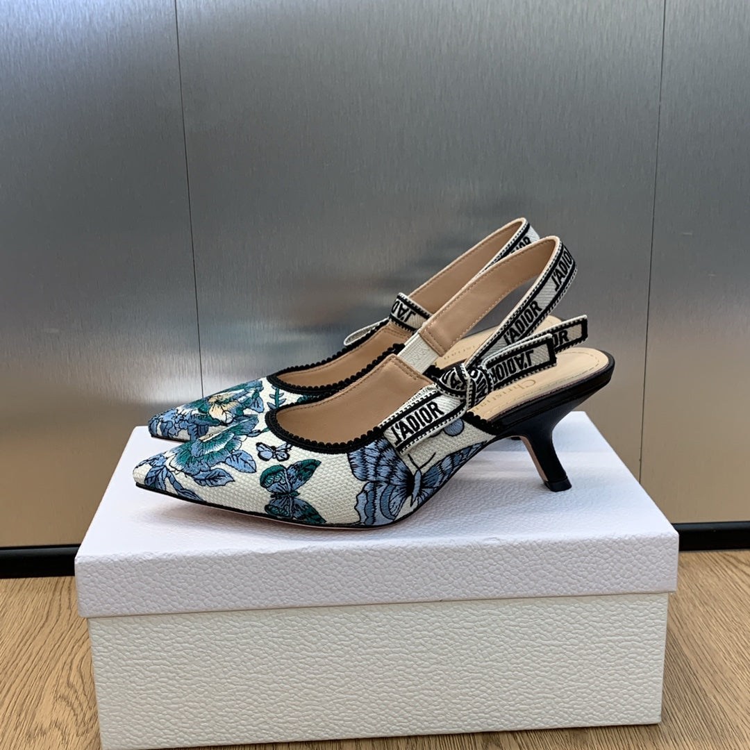 JAdior Slingback Pump 65 Pastel Midnight Blue Multicolor Embroidered Cotton with Toile de Jouy Mexico Motif