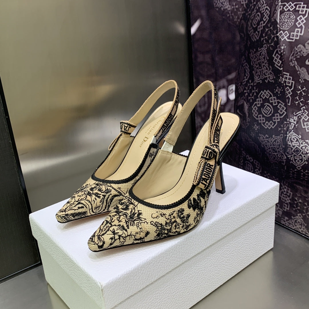 JAdior Slingback Pump 95 Black Embroidered Cotton with Gold-Tone Metallic Thread