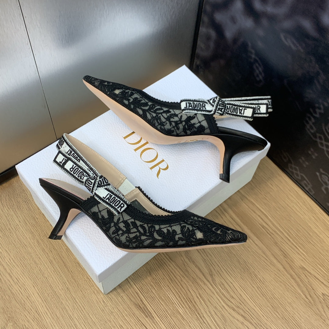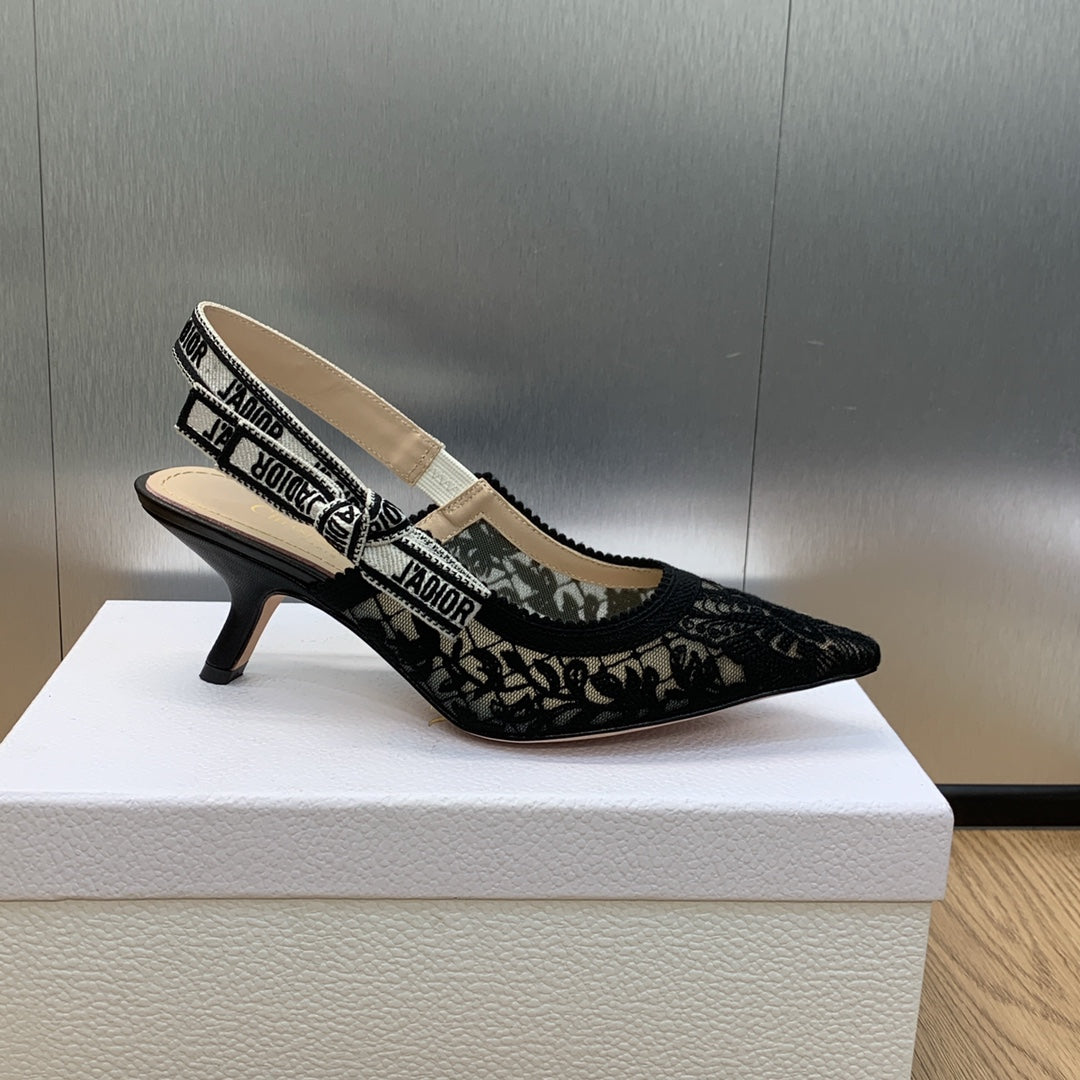 JAdior slingback pumps 65 transparent mesh embroidered black butterfly motif