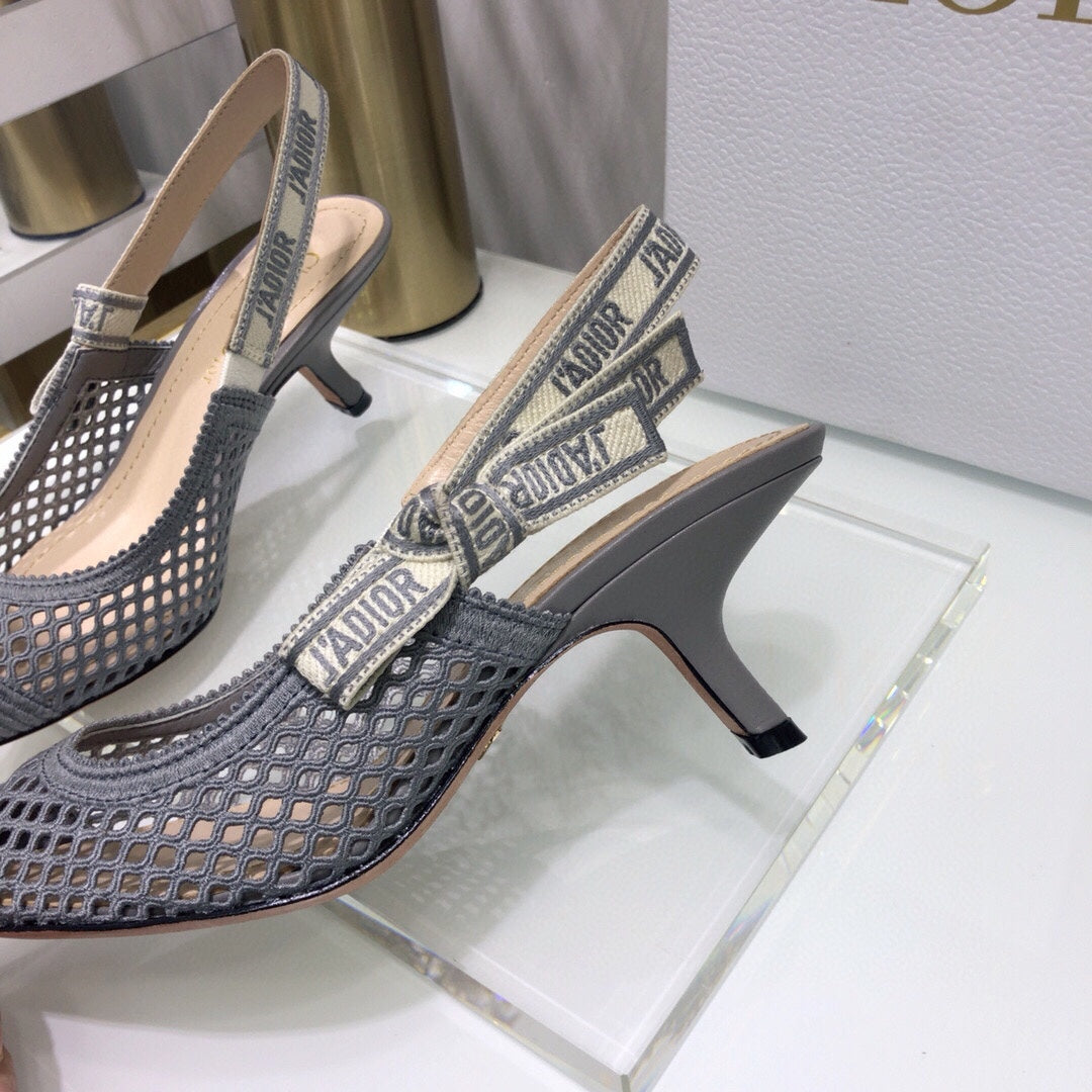 JAdior slingback pumps 65 transparent mesh grey embroidered cotton