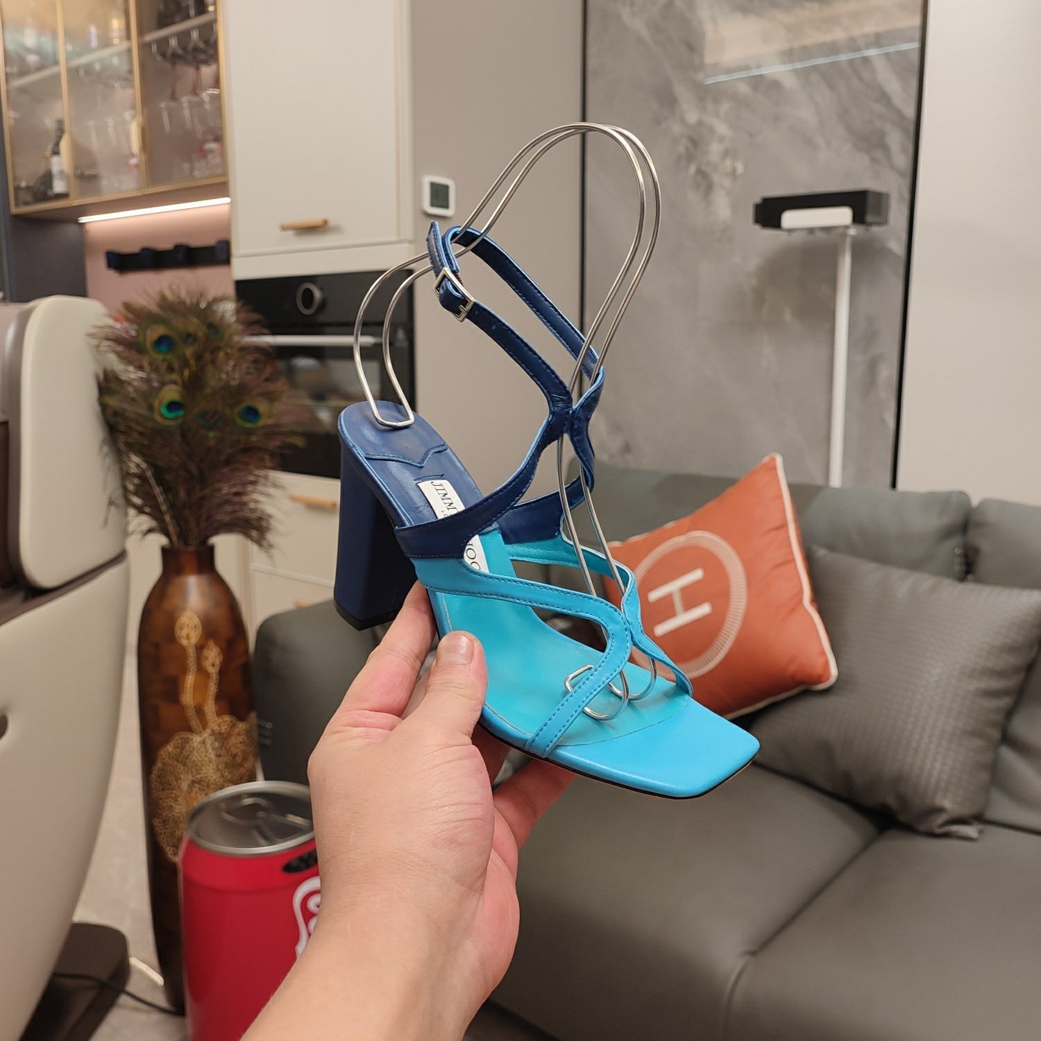 Jimmy 25 Azie Colorblock Sandal 11CM NCS Blue Calfskin 240111