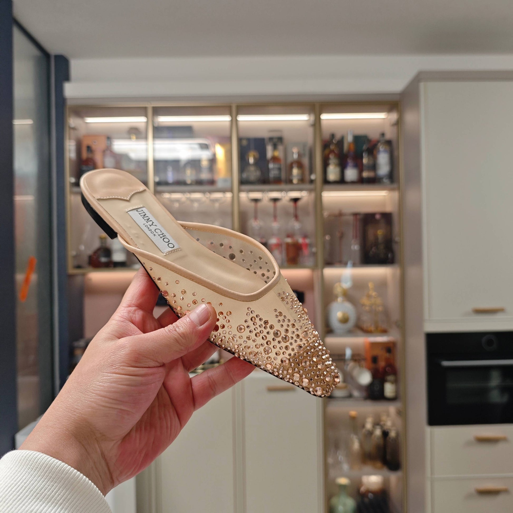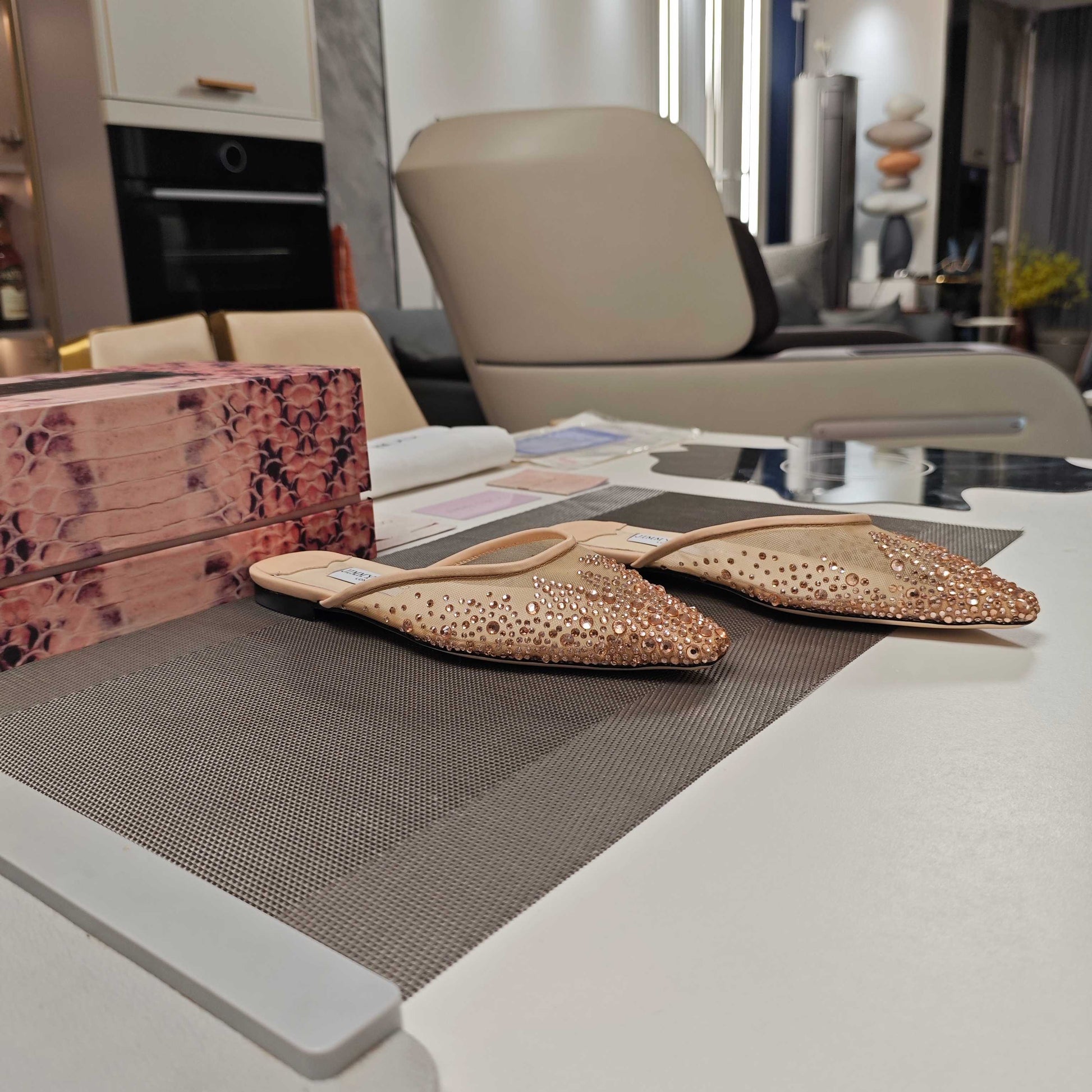 Jimmy 25 Mule Flats Cream Mesh Gauze 240058