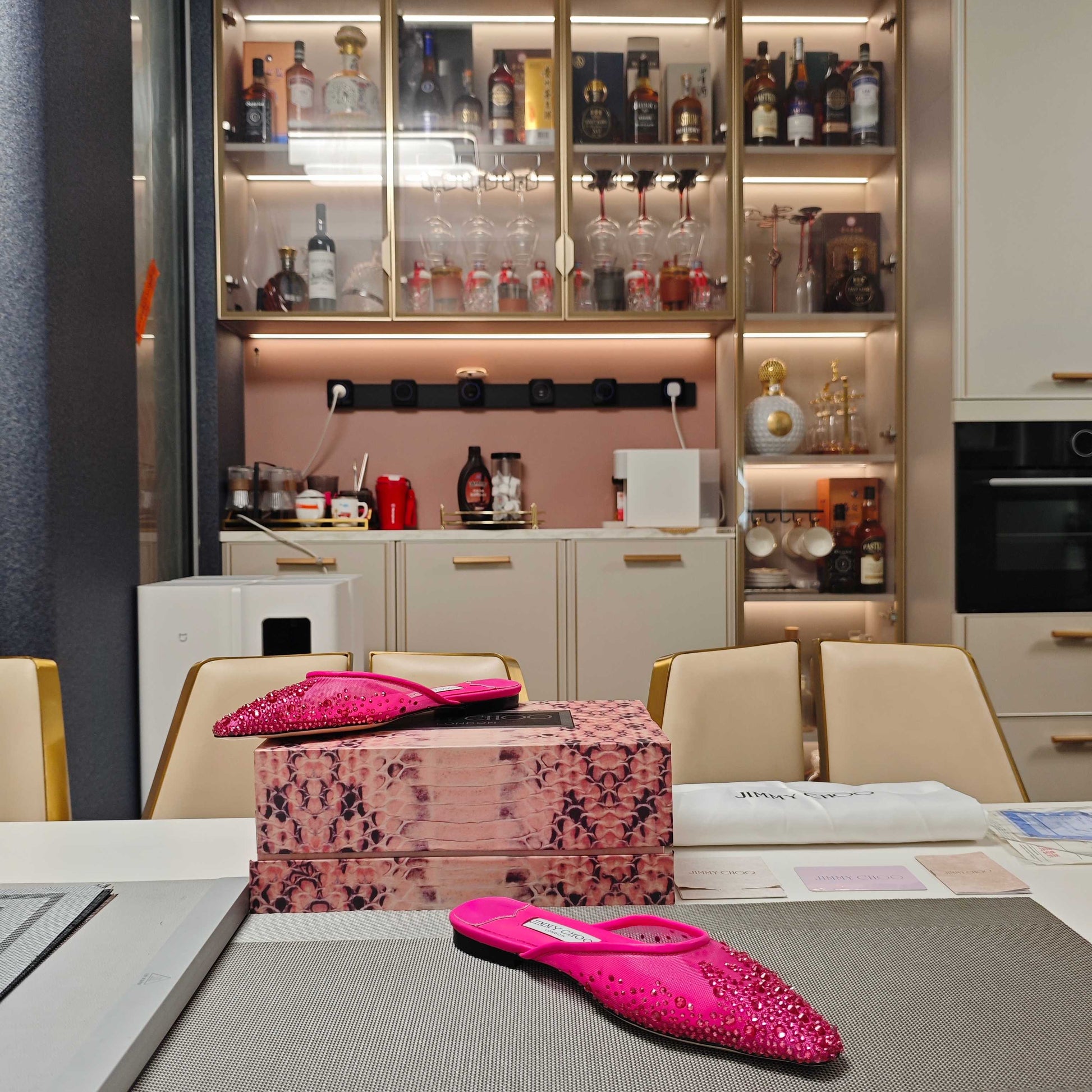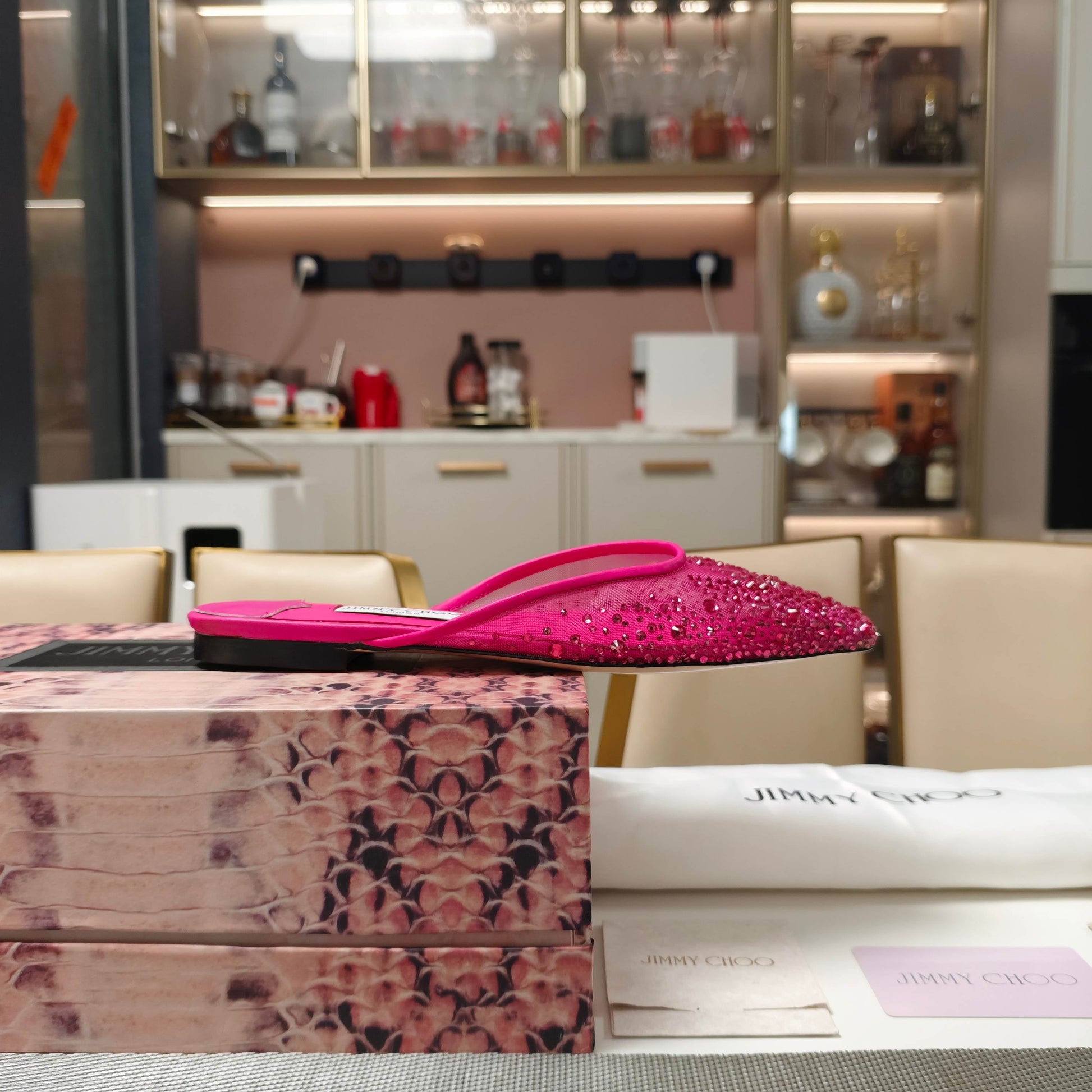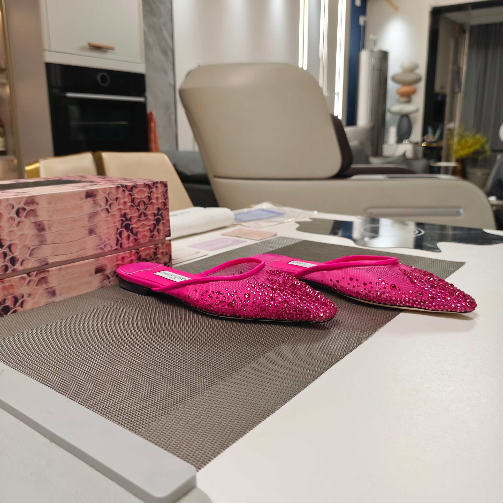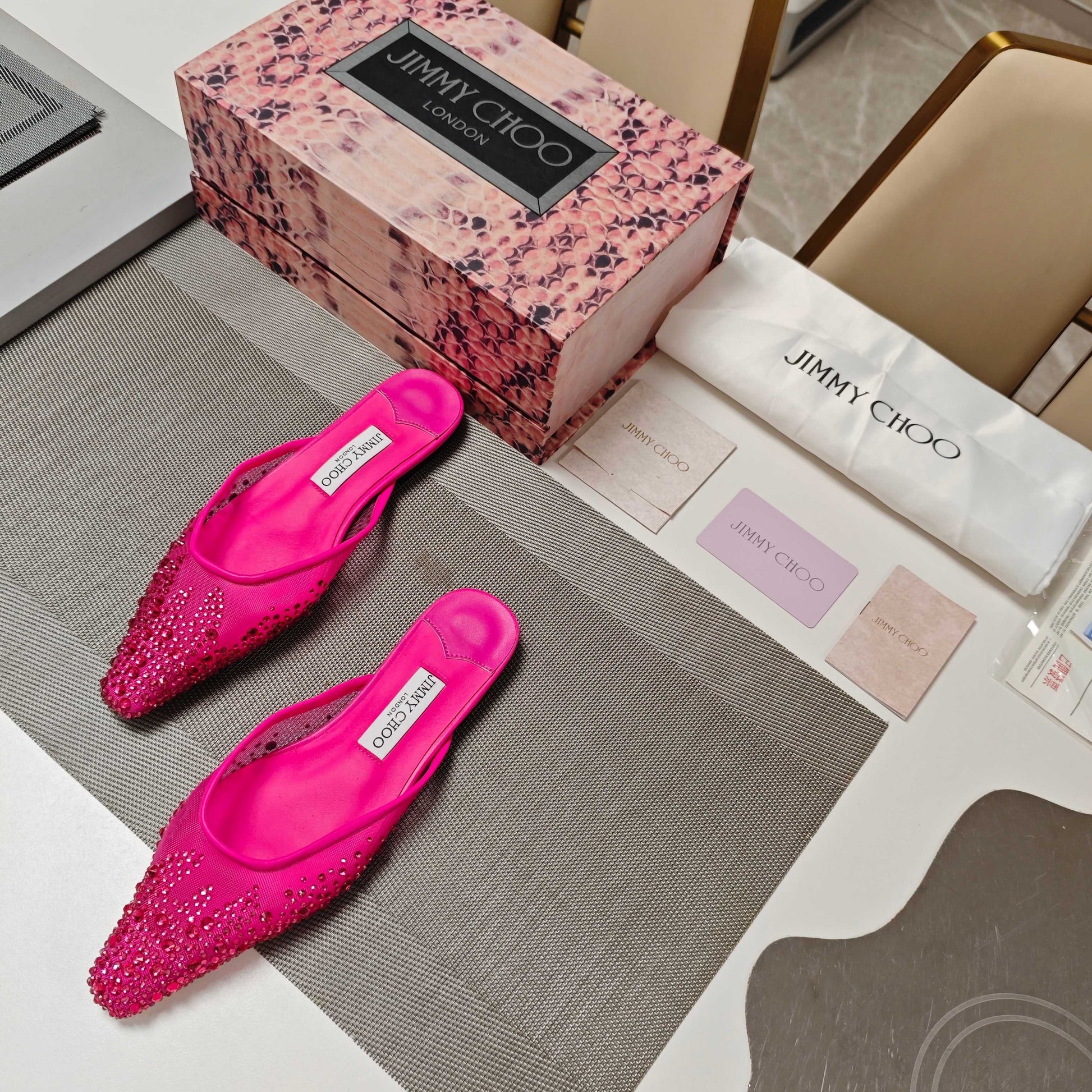 Jimmy 25 Mule Flats Deep Pink Mesh Gauze 240057