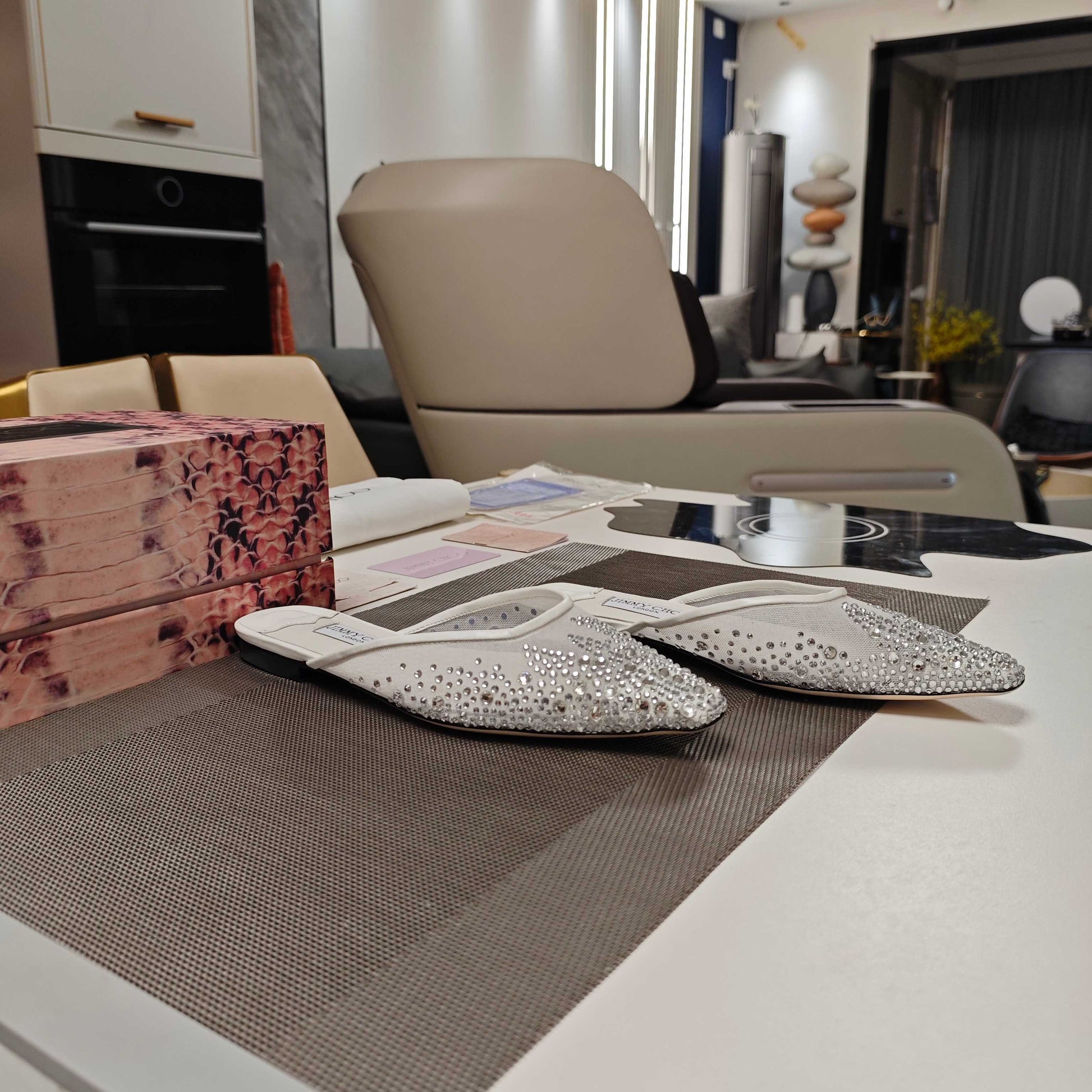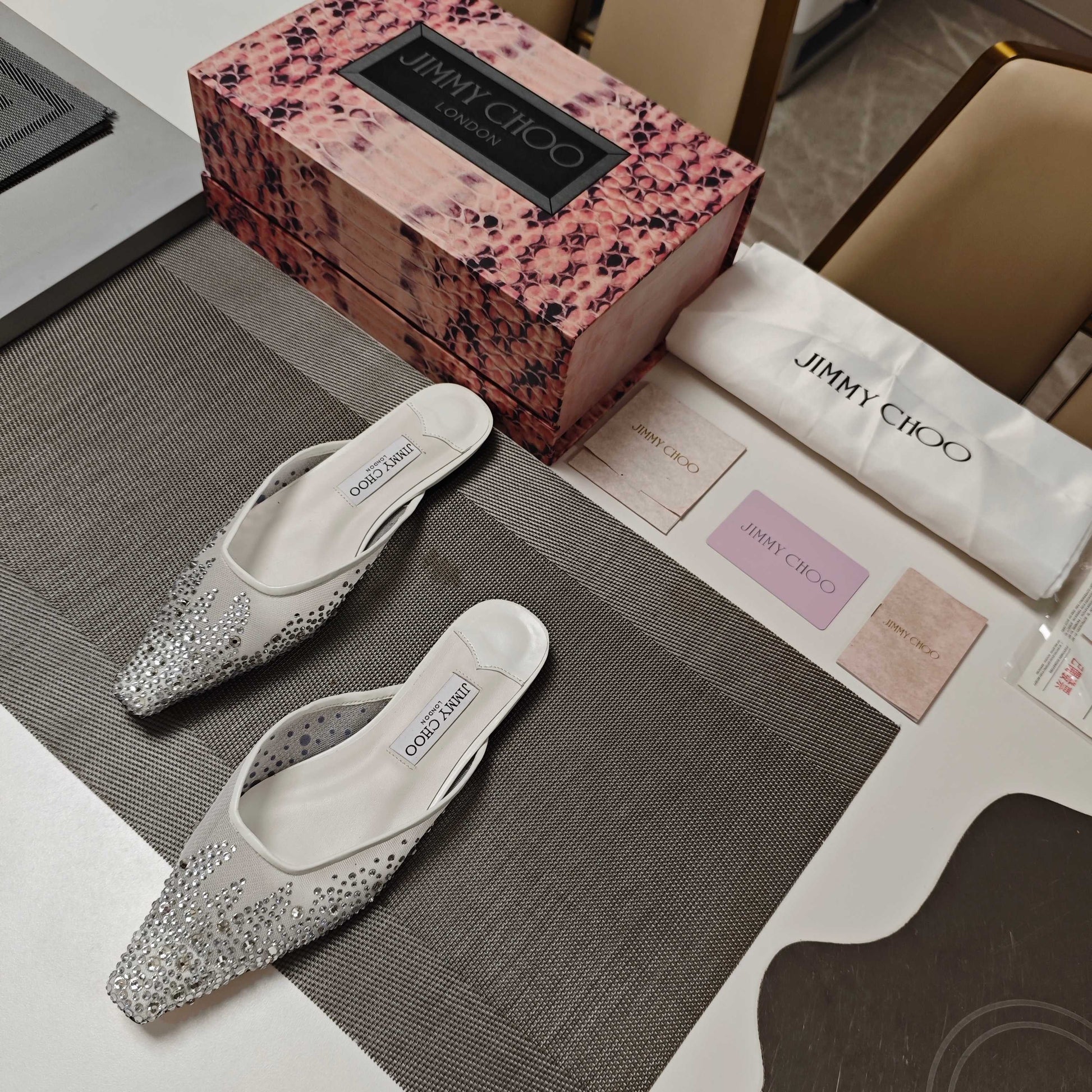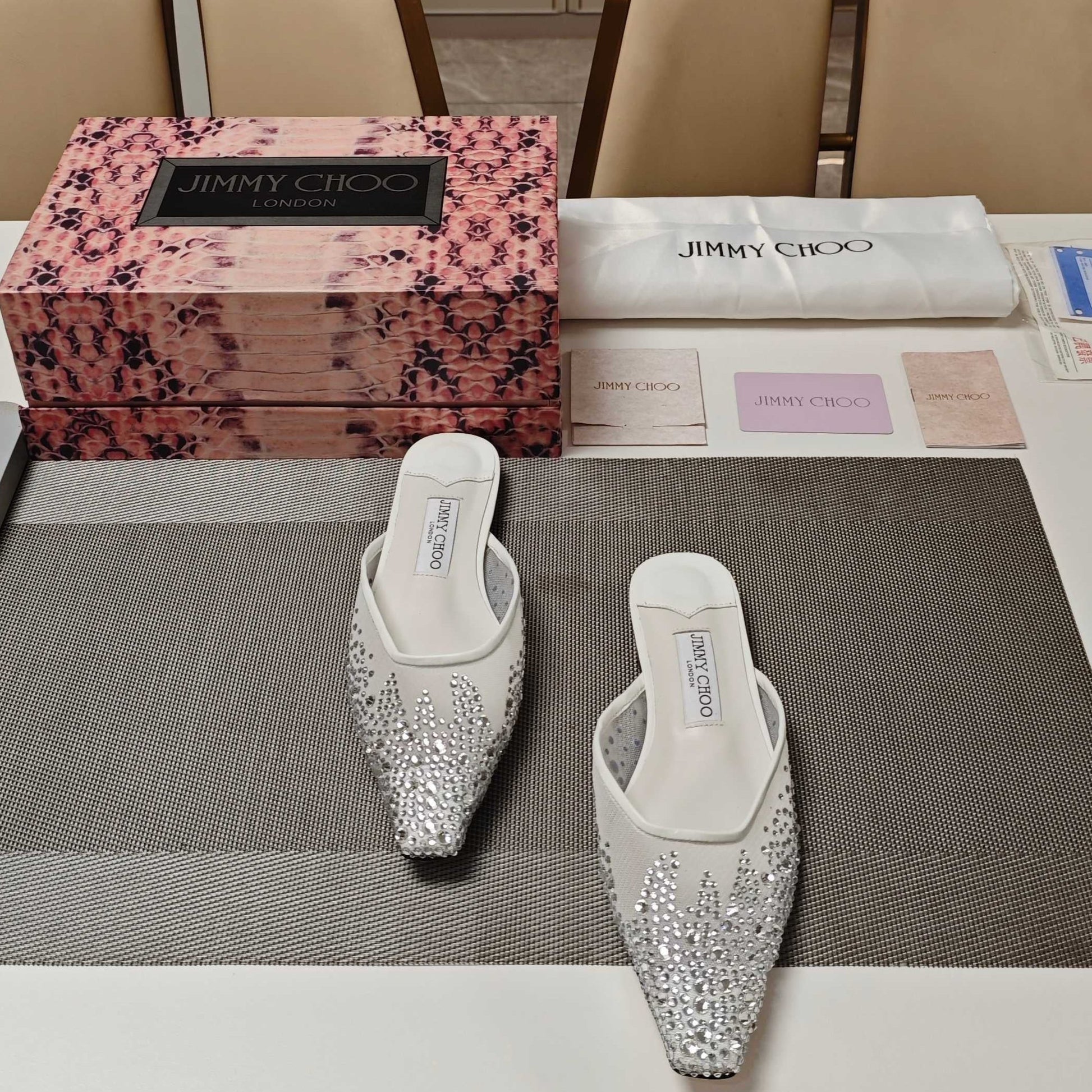 Jimmy 25 Mule Flats White Mesh Gauze 240056