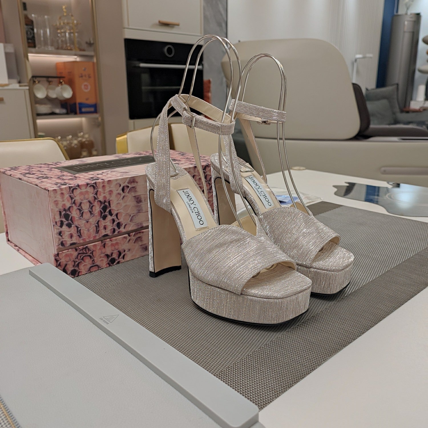Jimmy 25 Platform Sandal Heels Beige Satin Fabric 240015
