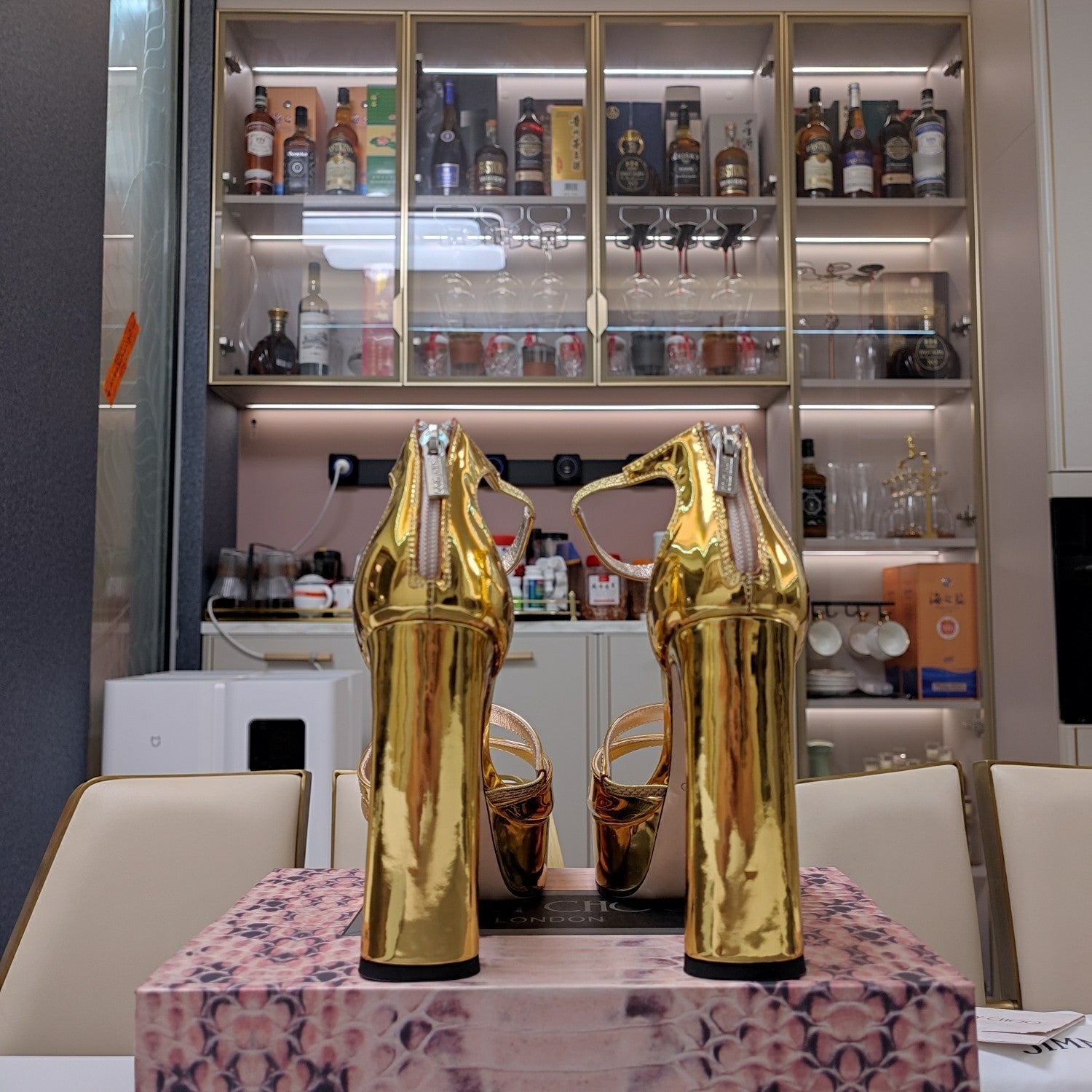 Jimmy 25 Platform Sandal Heels Gold Mirror TPU Material 240010