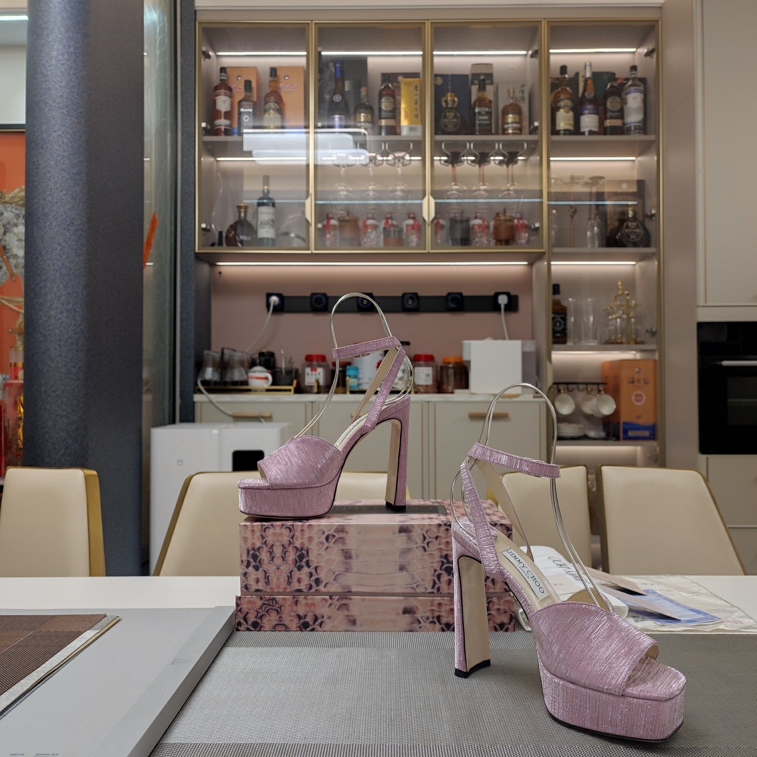 Jimmy 25 Platform Sandal Heels Lace Pink Satin Fabric 240014
