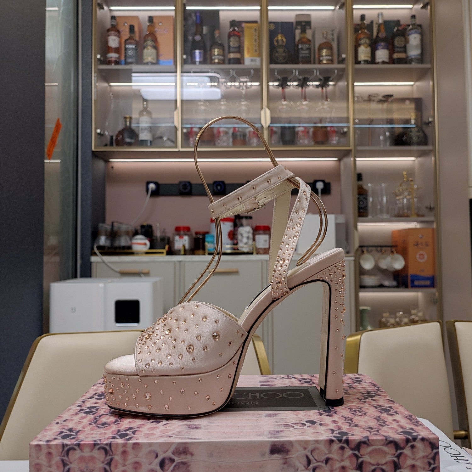 Jimmy 25 Platform Sandal Heels Lady Pink Silk Satin 240012