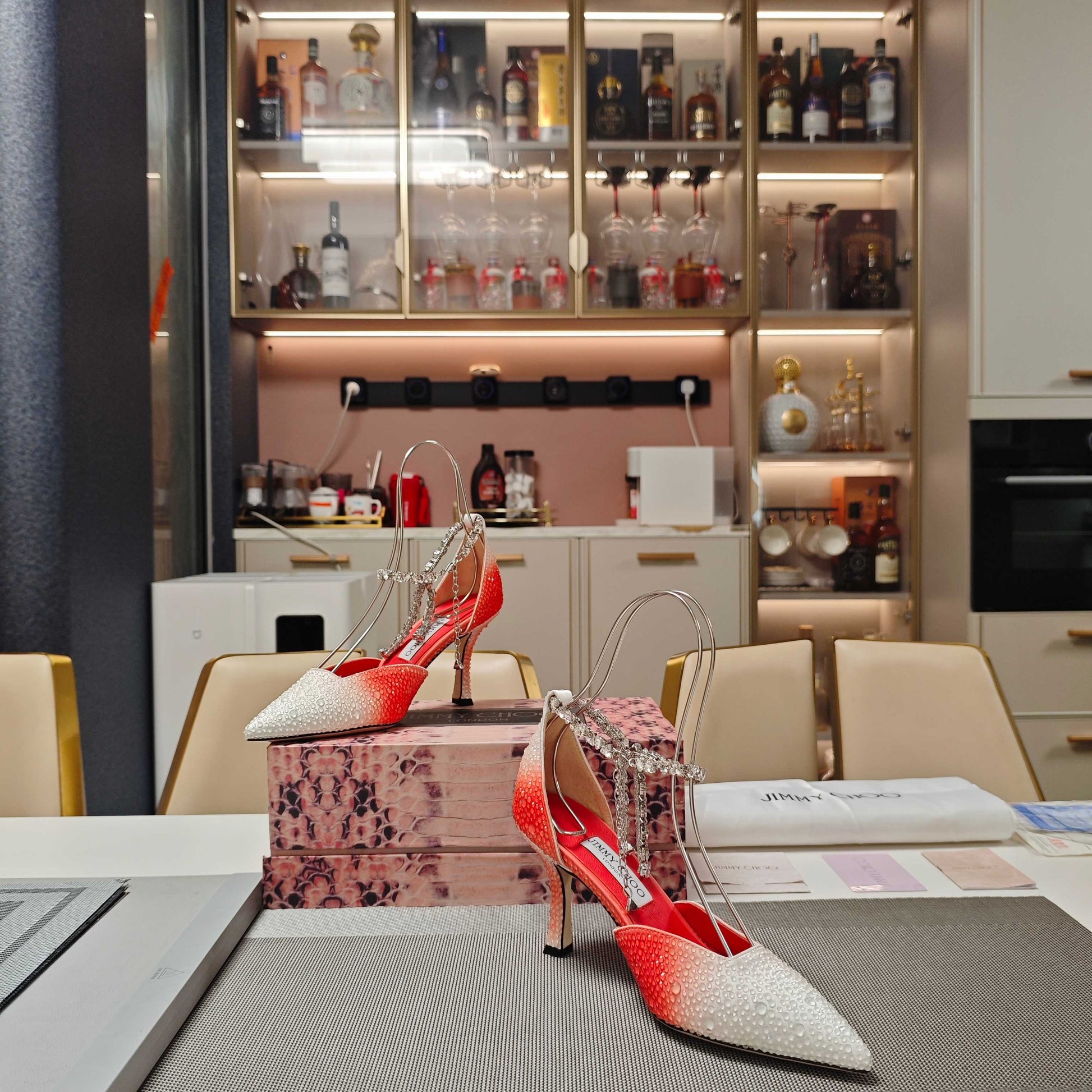 Jimmy 25 Stevie 80 Pumps Red mix White Satin 240061