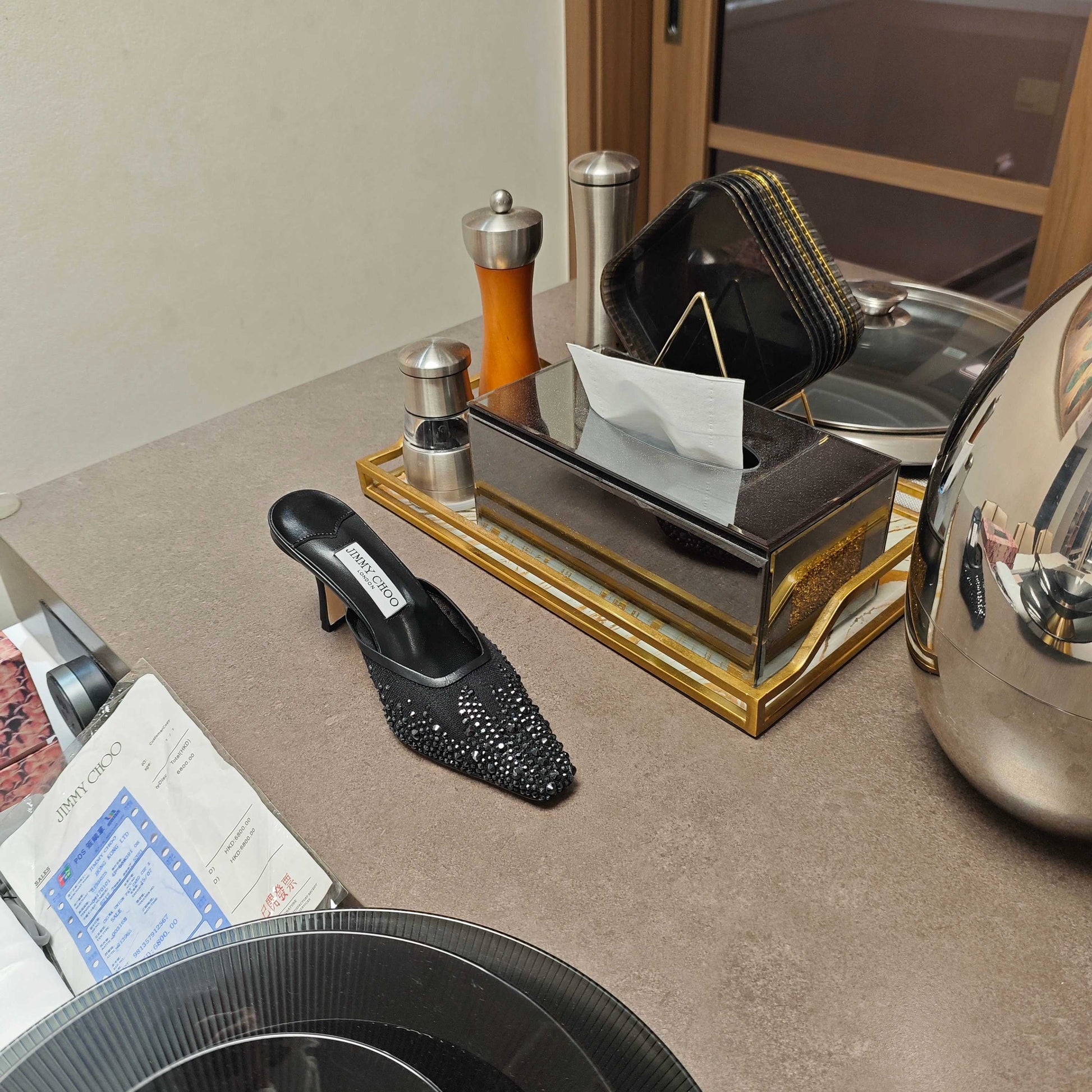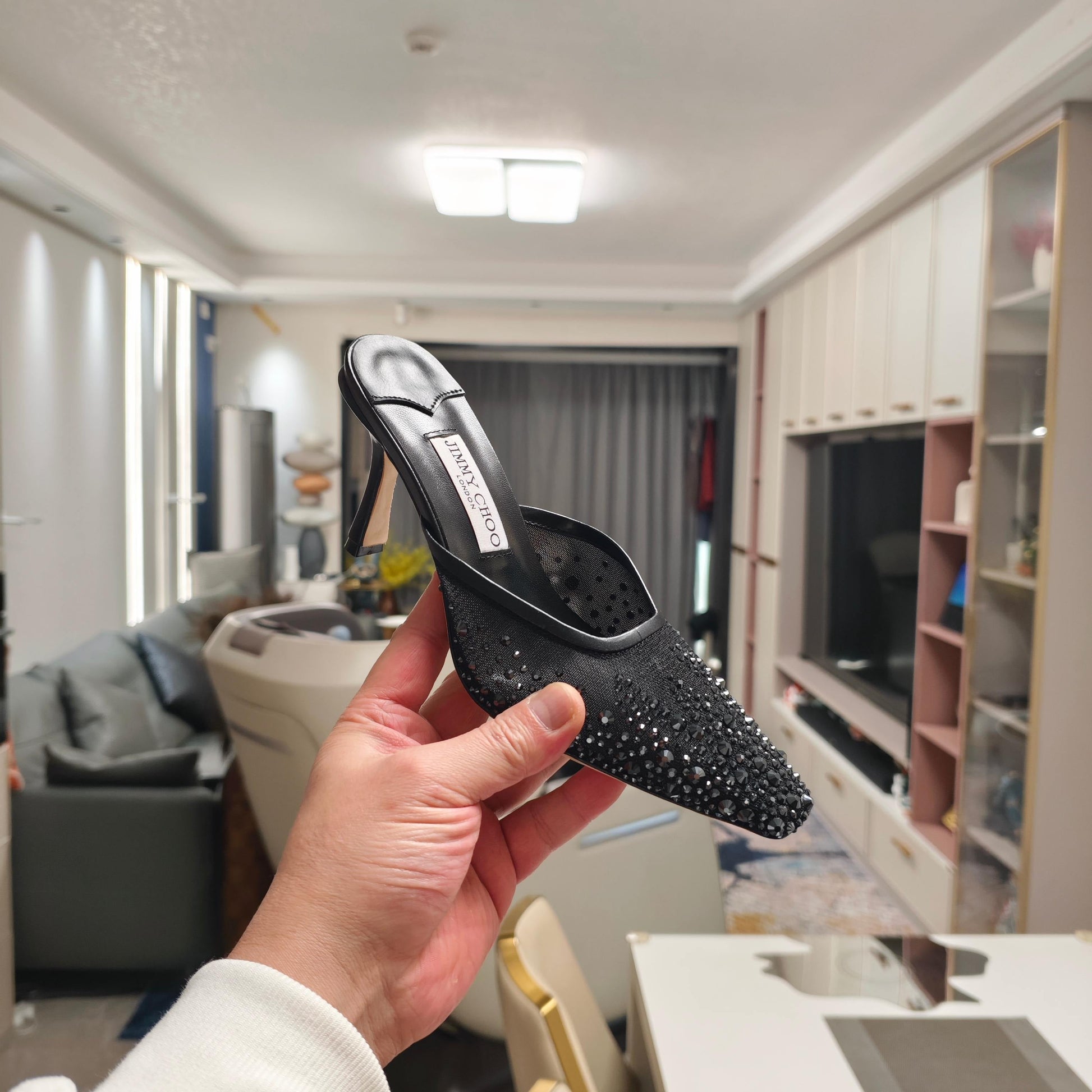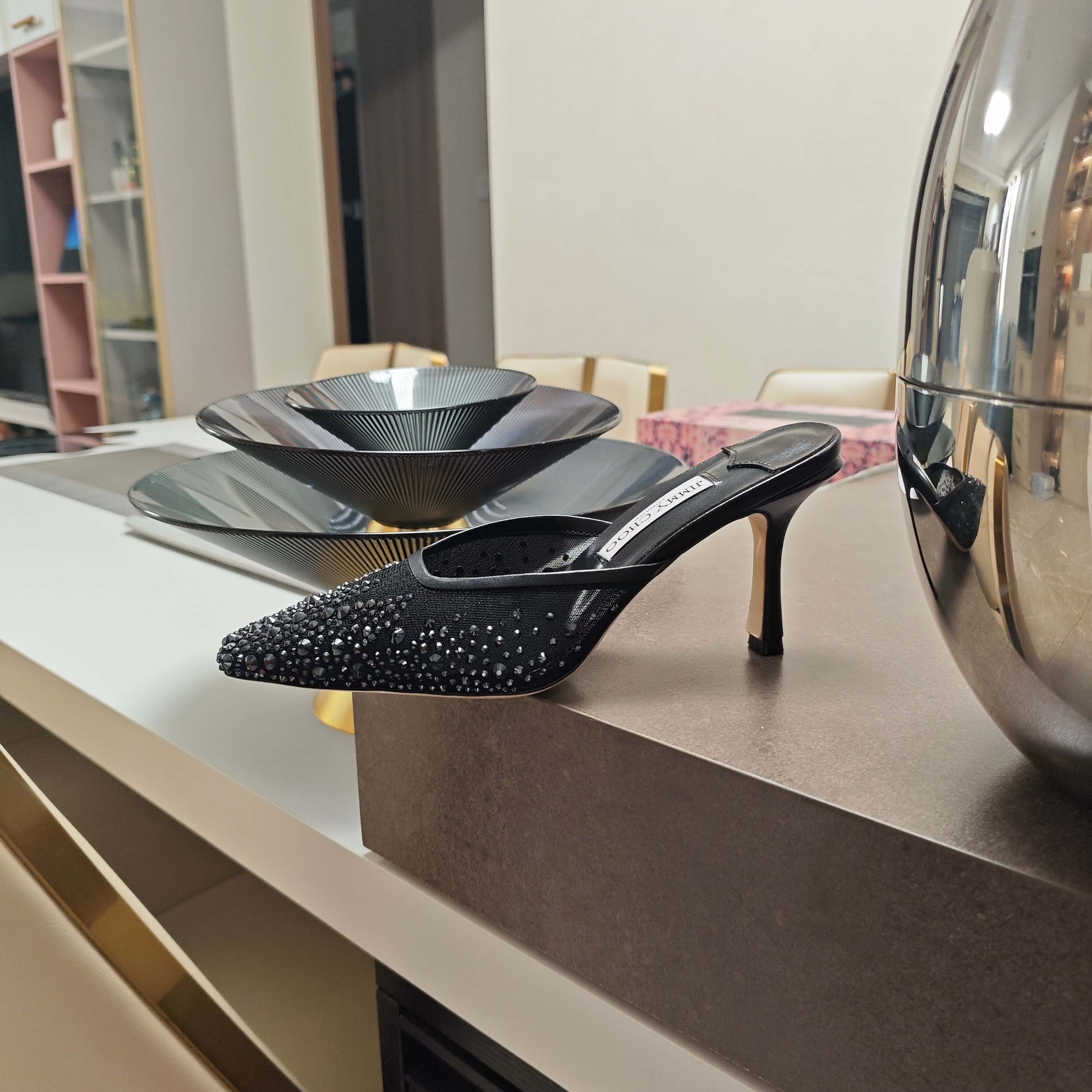 Jimmy 25 Vivi 100 Mule Black Mesh Gauze 240051