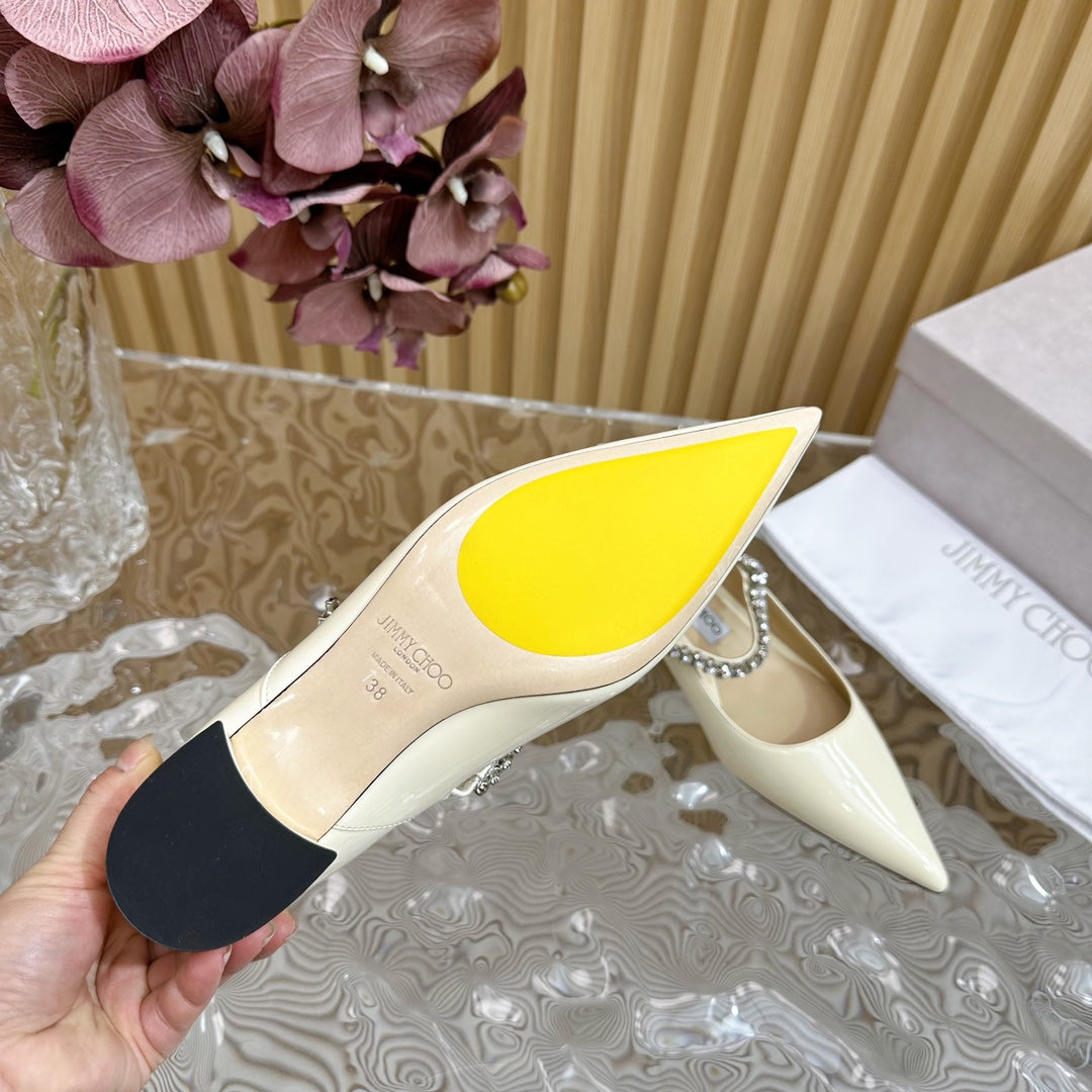 Jimmy Crystal-Strap Ballerina Shoes In Ivory White Glossy Cowhide 641042