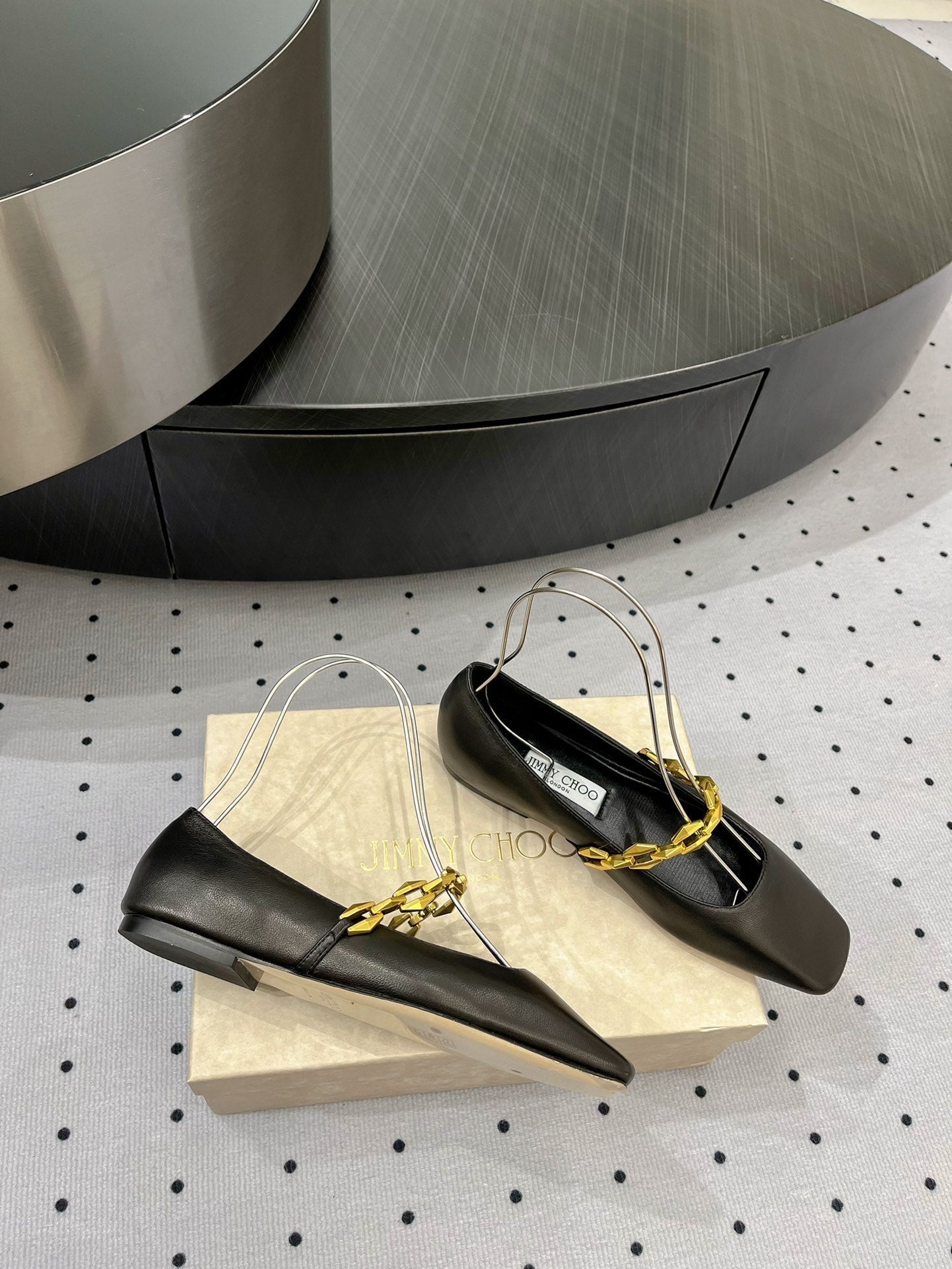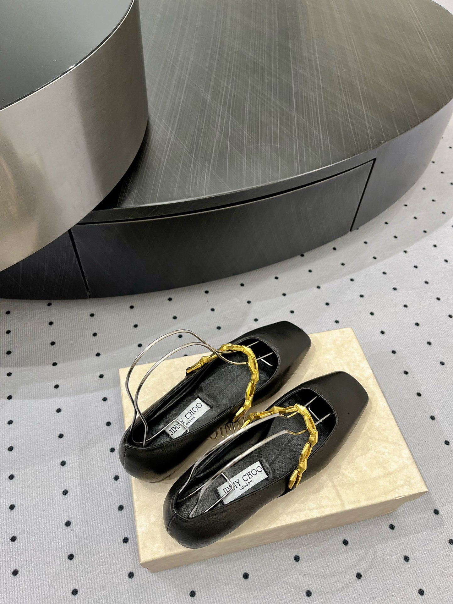 Jimmy Diamond Tilda Flat 10mm In Black Nappa Leather Flats With Chain 591607