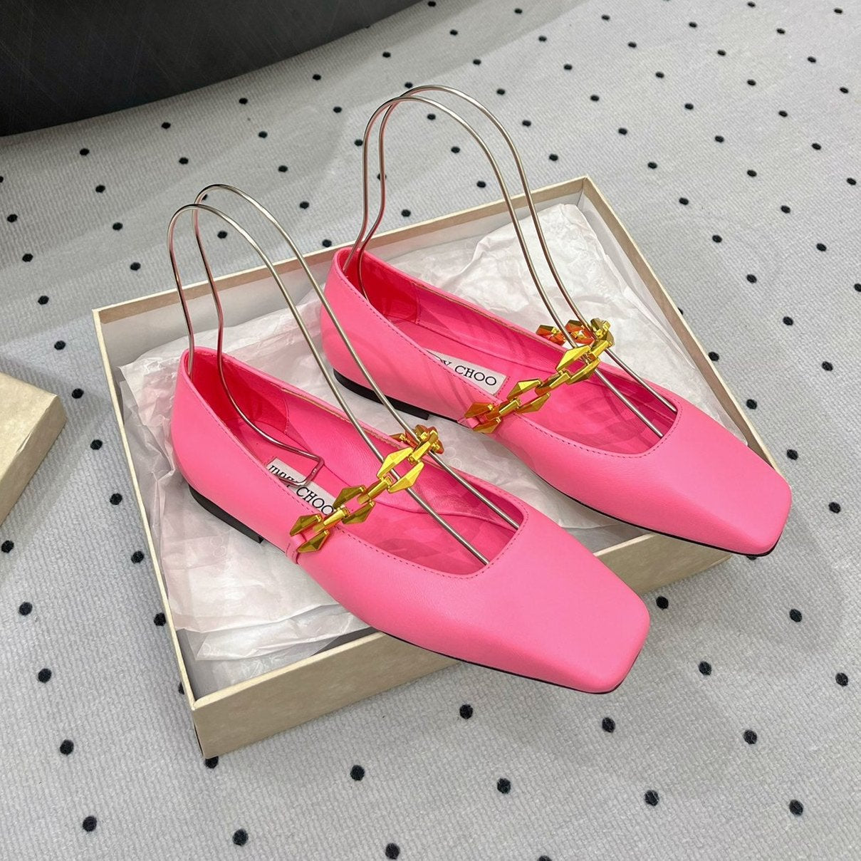 Jimmy Diamond Tilda Flat 10mm In Pink Nappa Leather Flats With Chain 591613