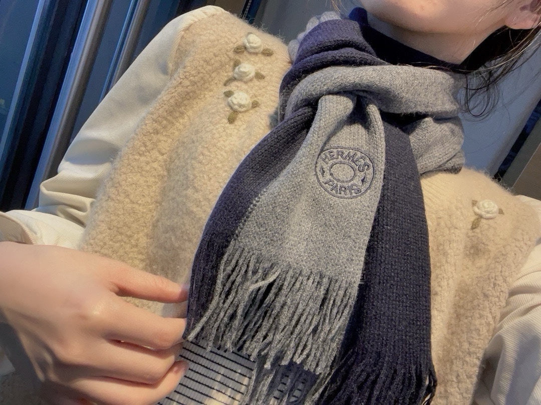 KNIT SCARF 180 IN NAVY BLUE MIX GREY CASHMERE