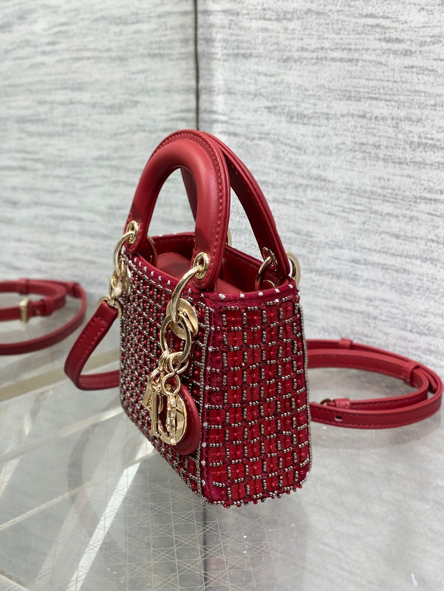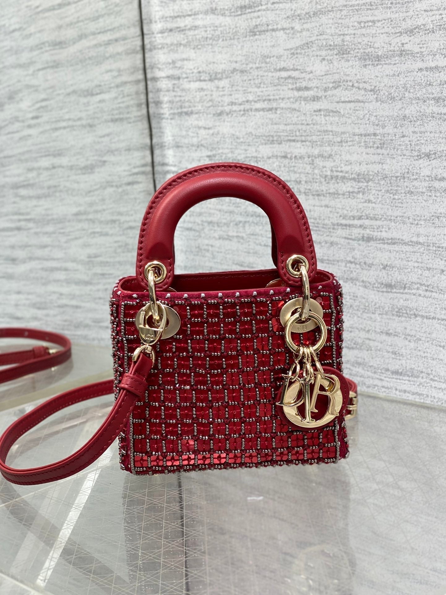 Lady Micro Bag 10cm Red Fabric Embelished Bead