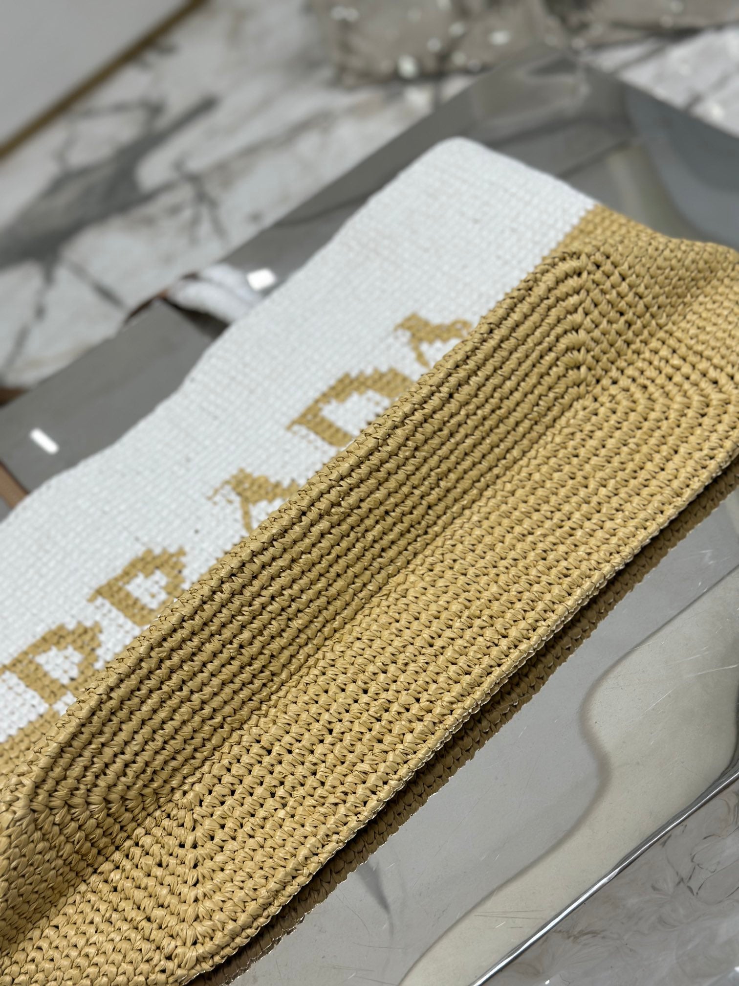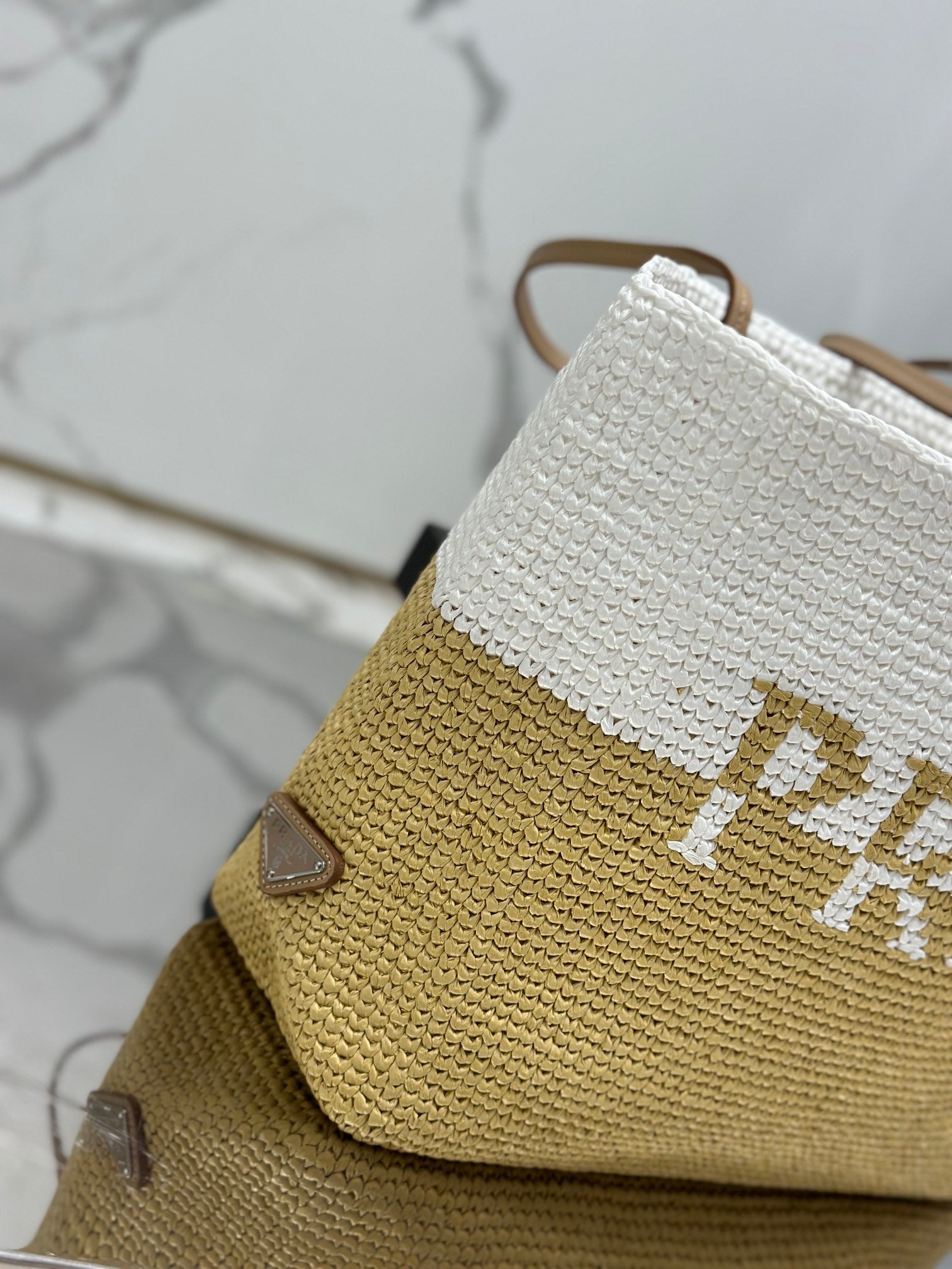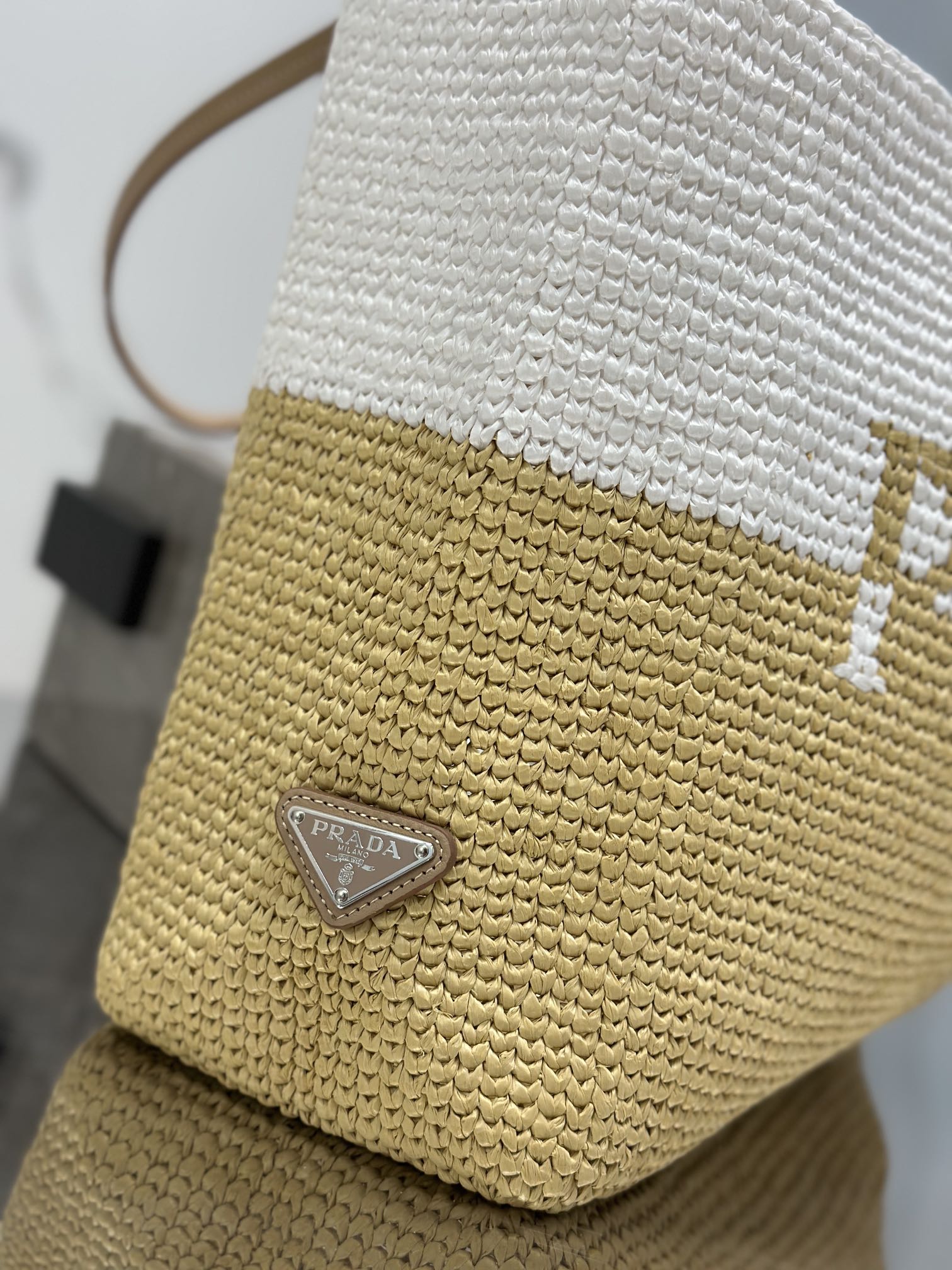• Material: Raffia and calfskin handle