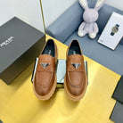 LOAFER WITH TRIANGLE LOGO IN COGNAC CALFSKIN