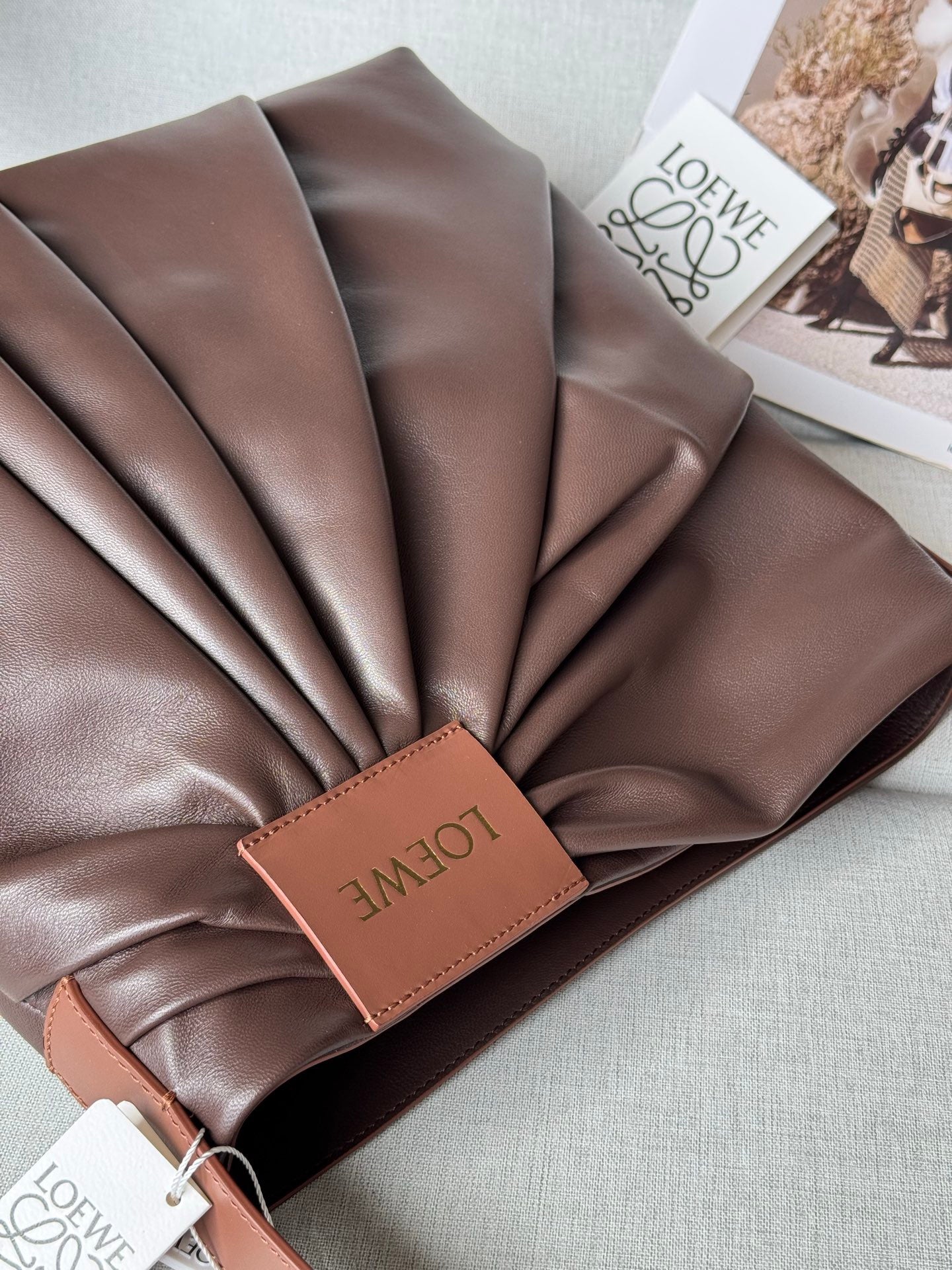 Loewe 2025 Draped Tote Bag Dark Chestnut Mellow Nappa Lambskin