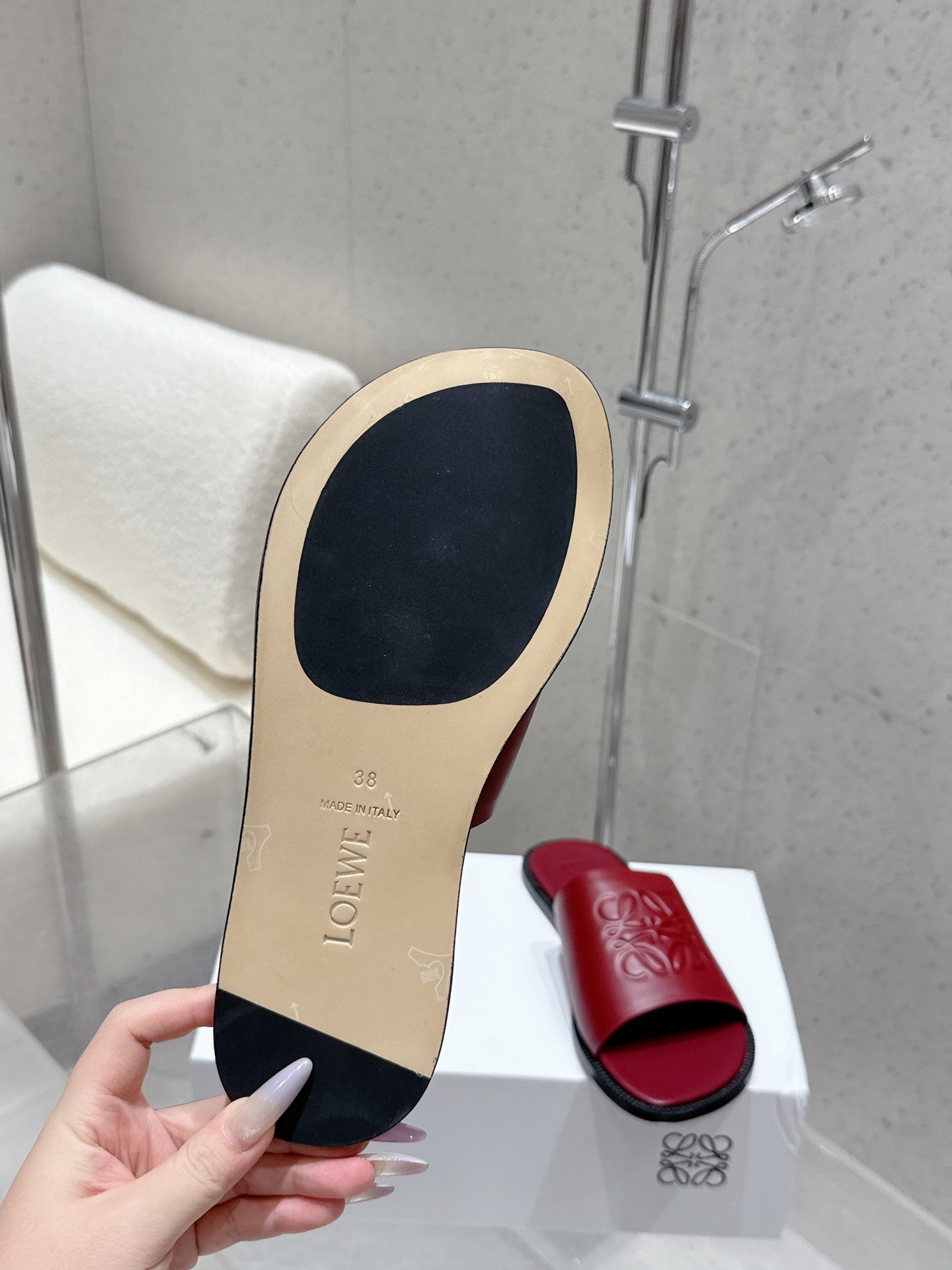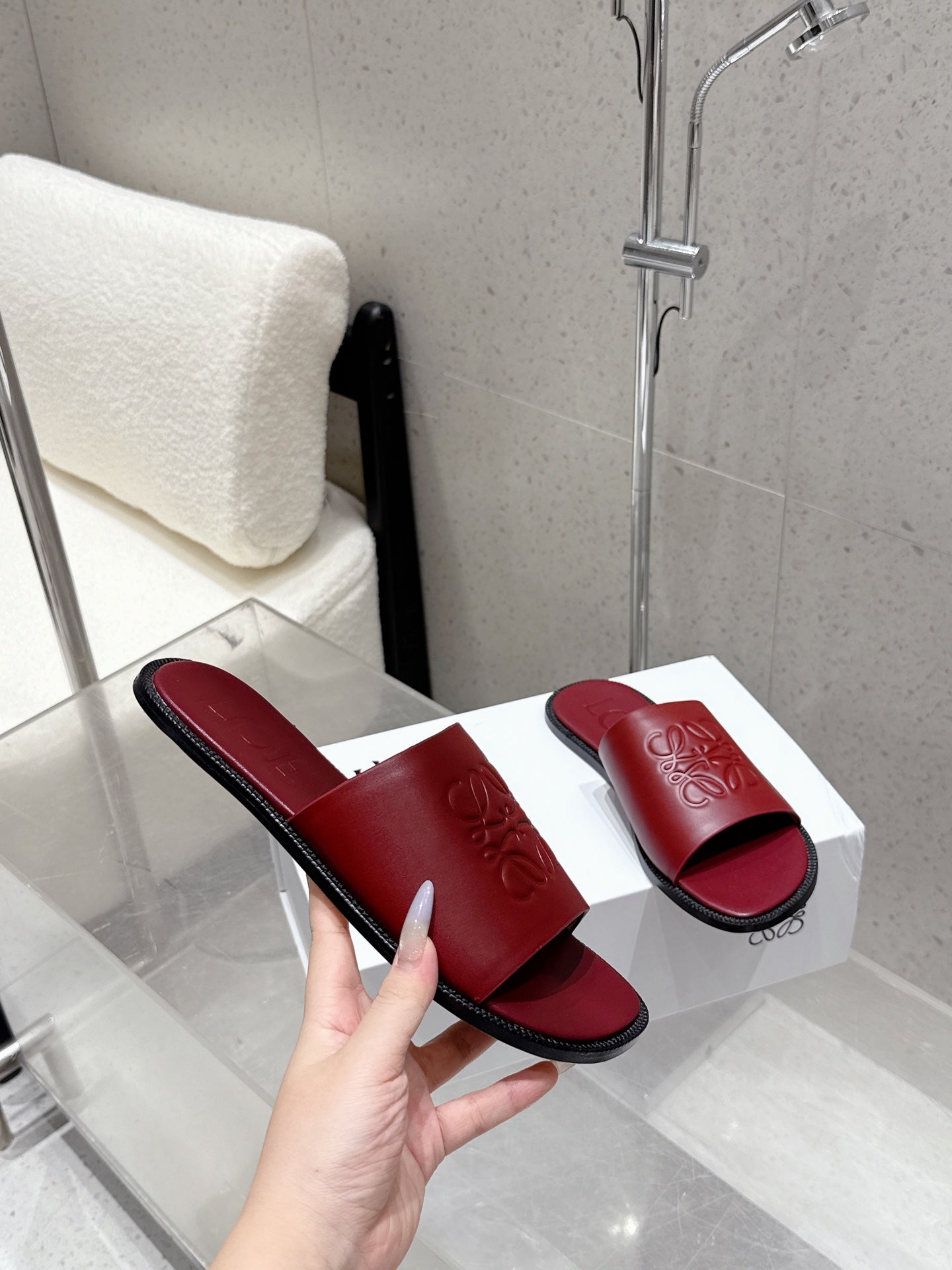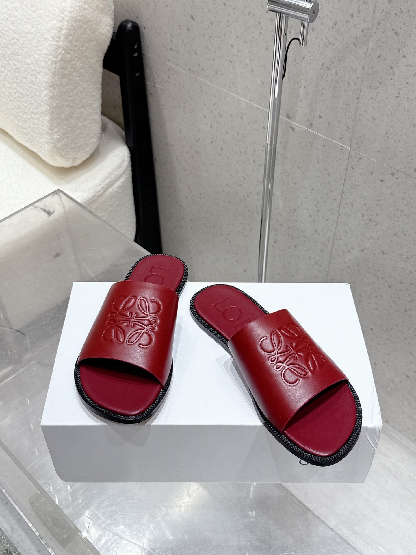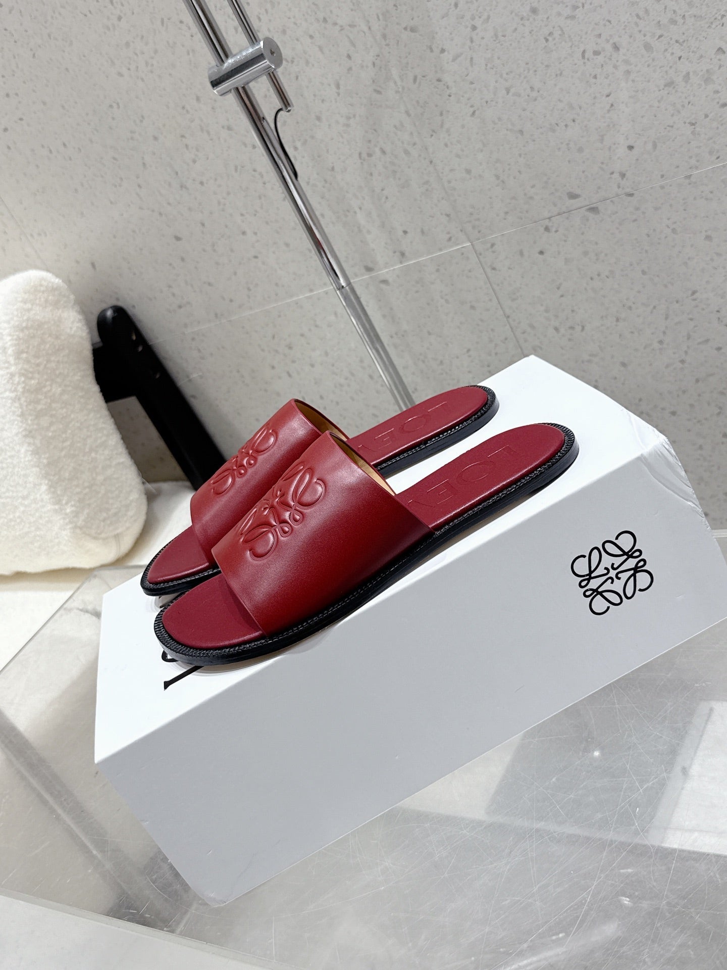 Loewe 25 flat slippers dark red calfskin