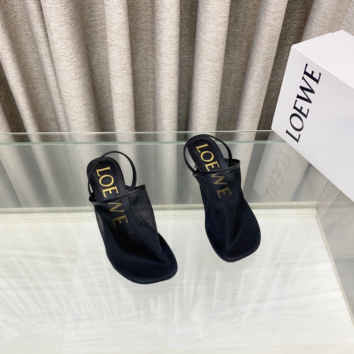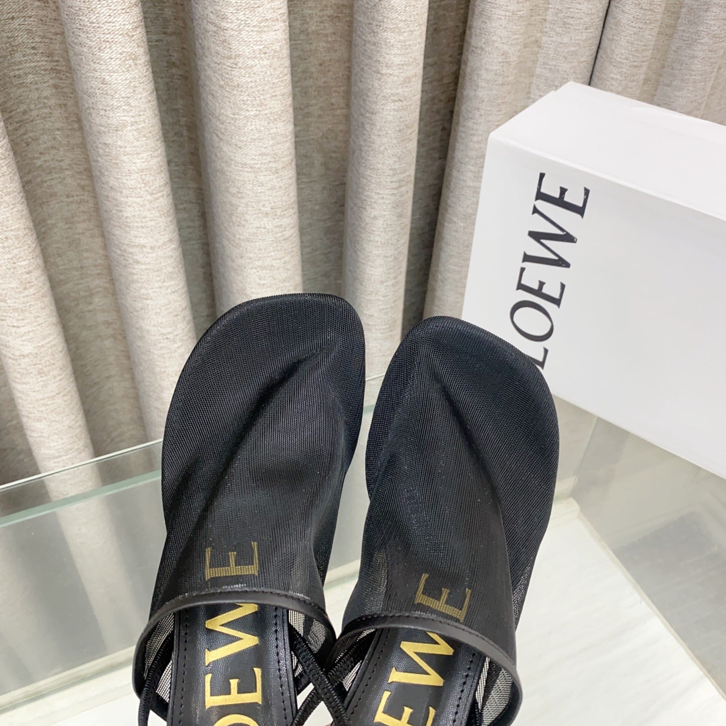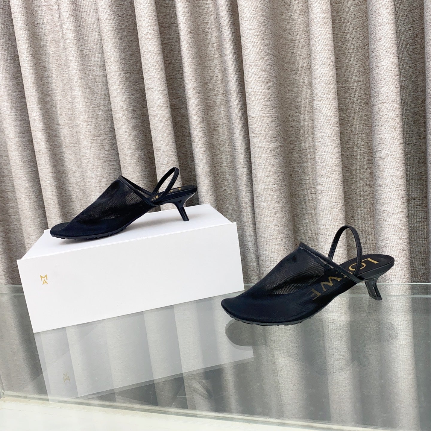 Loewe 25 Petal Slingback Black Mesh Sheepskin
