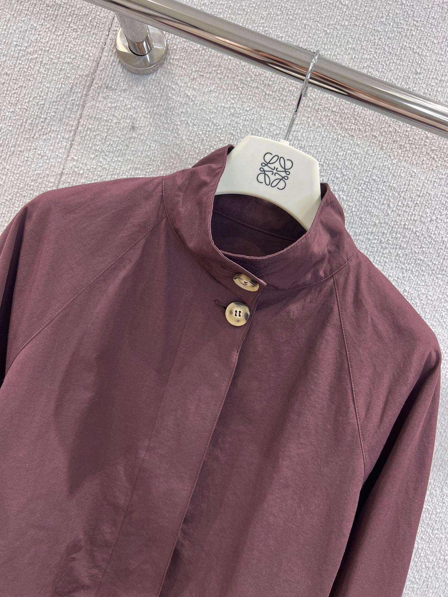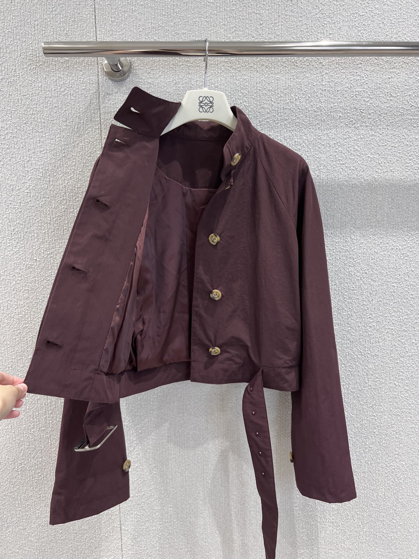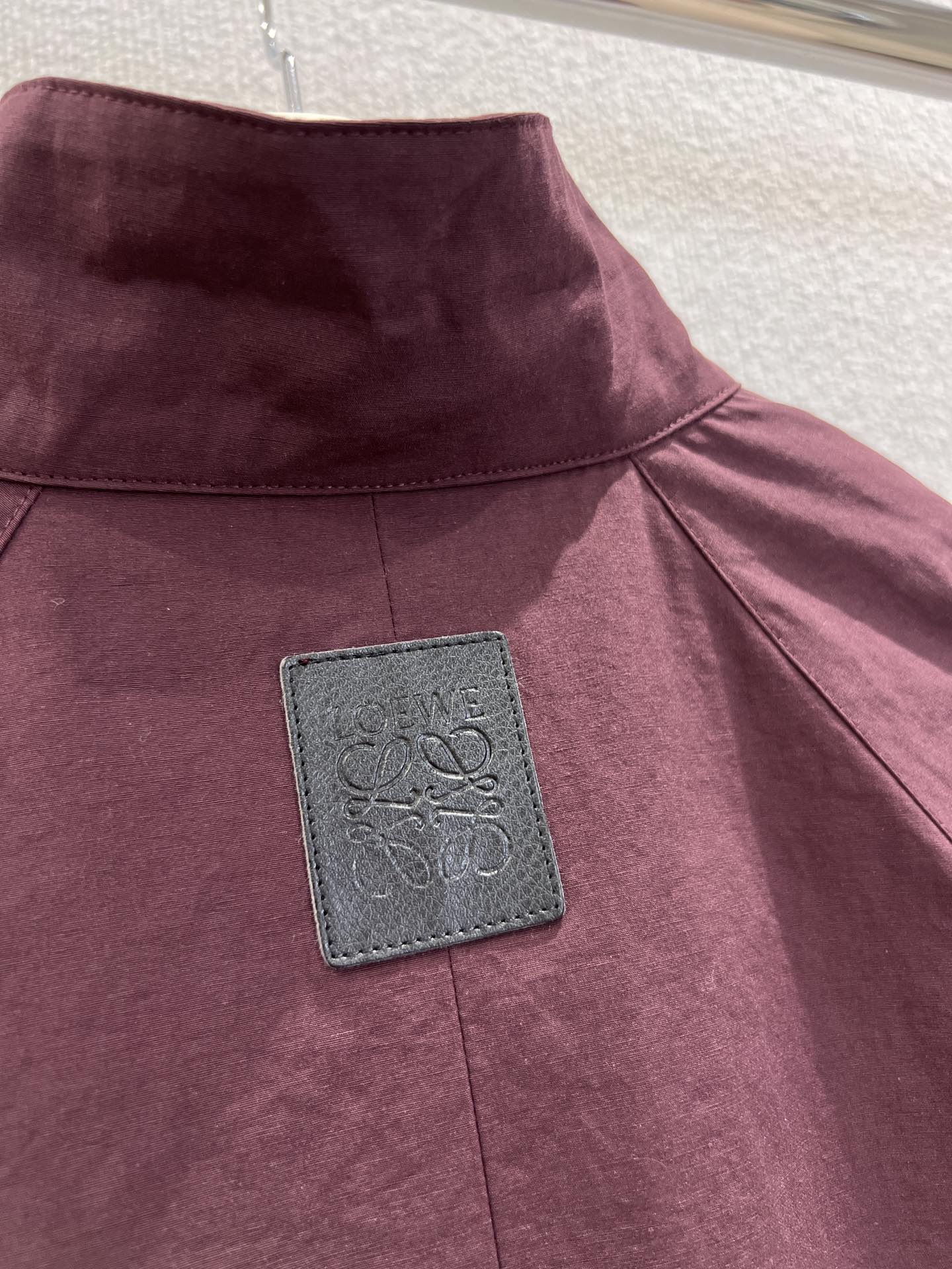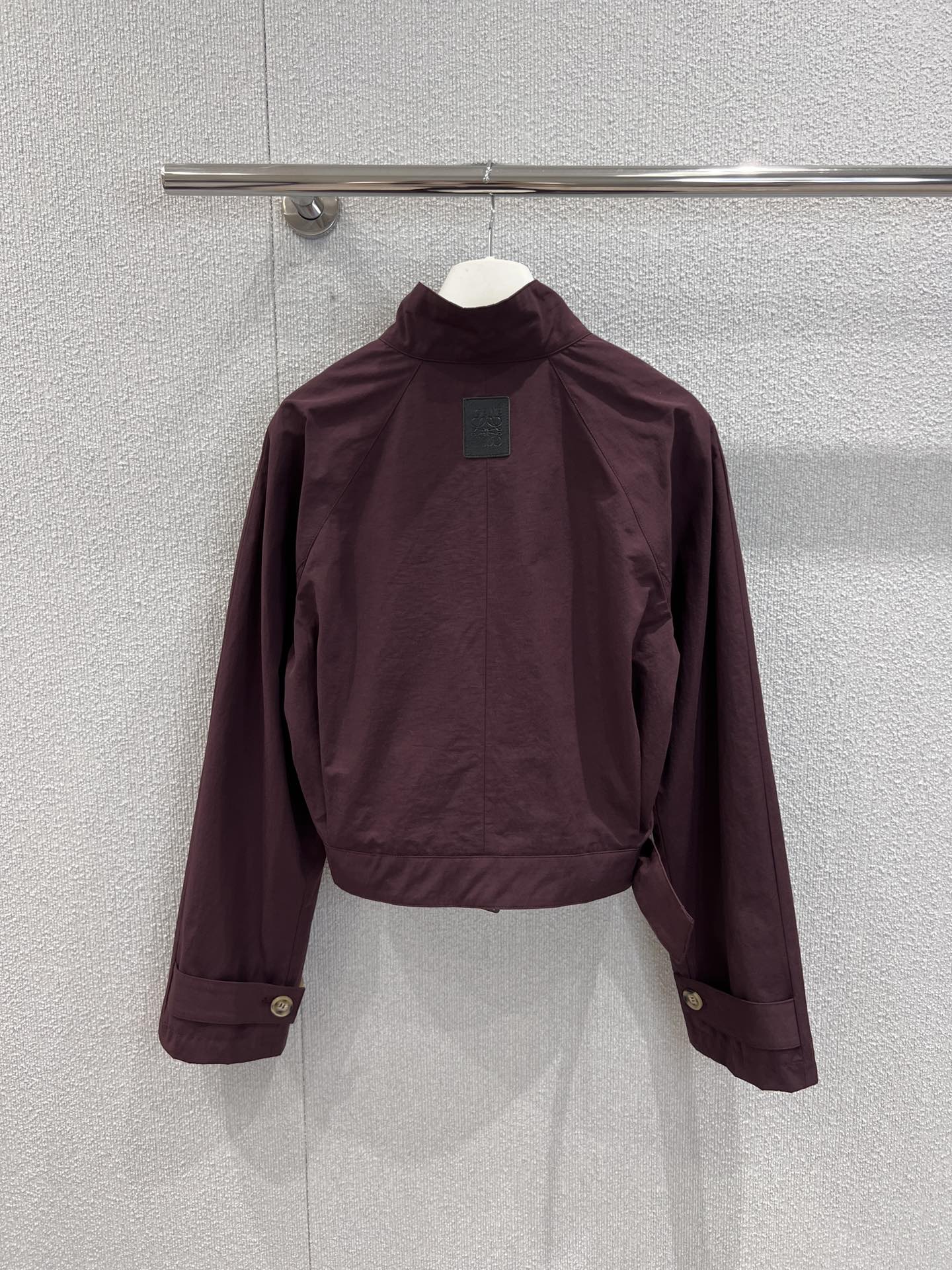 Loewe 25 Stand Collar Short Trench Coat Burgundy Red Cotton Nylon 224272