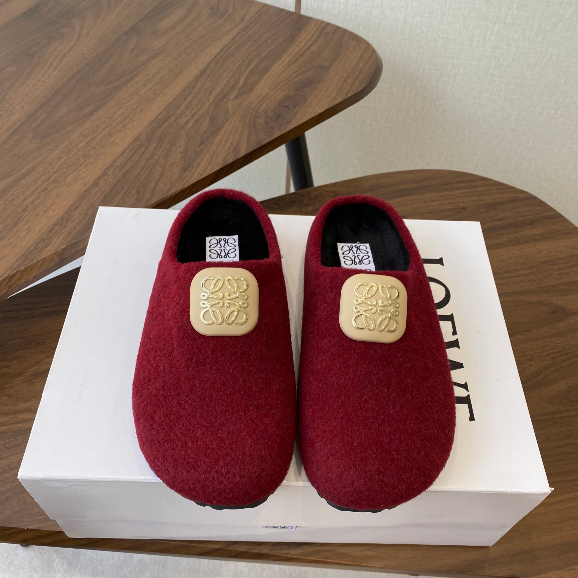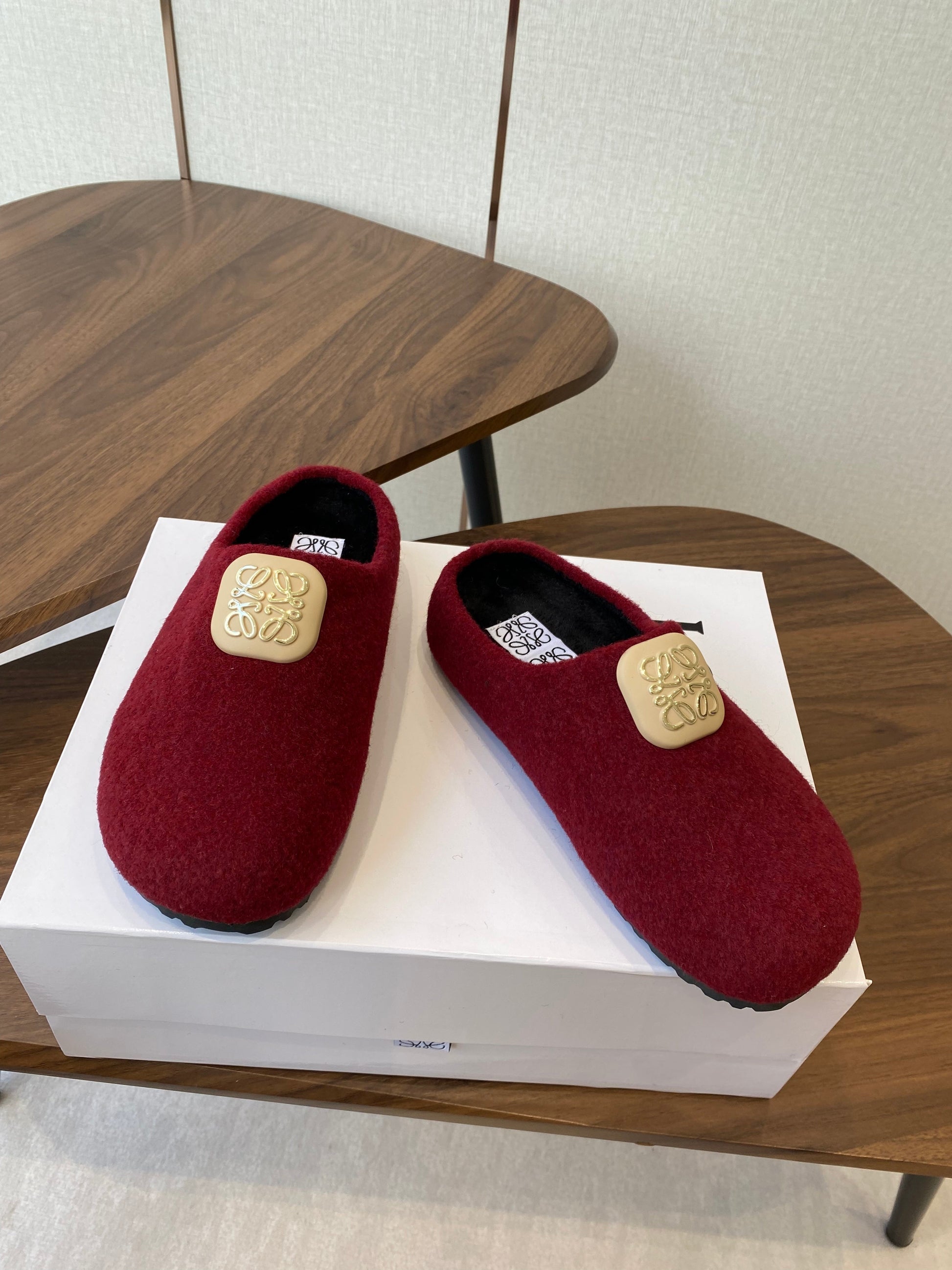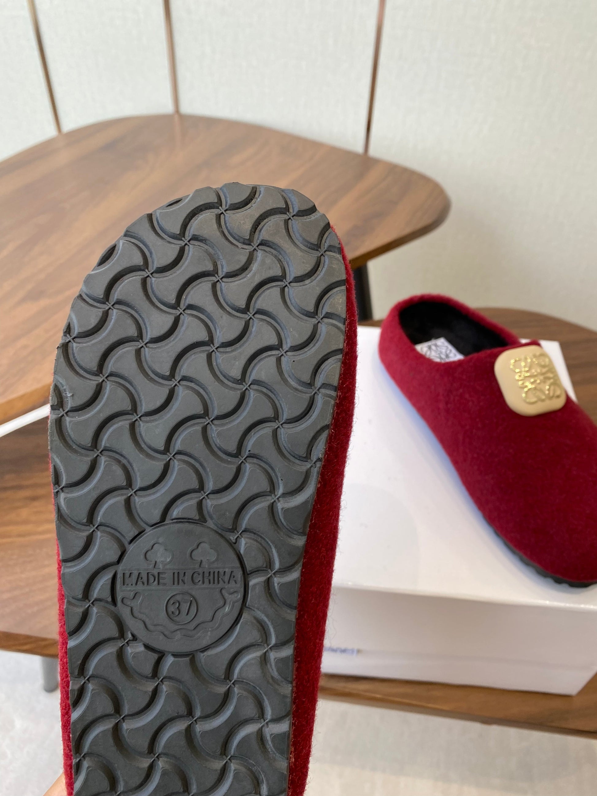 Loewe Birkenstock slippers red wool 477793