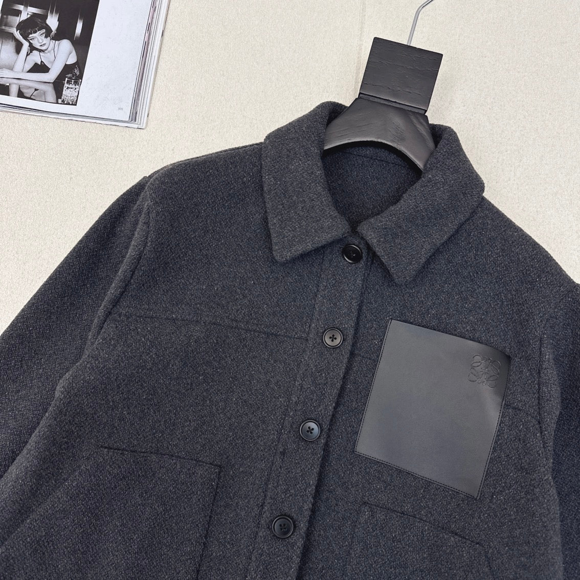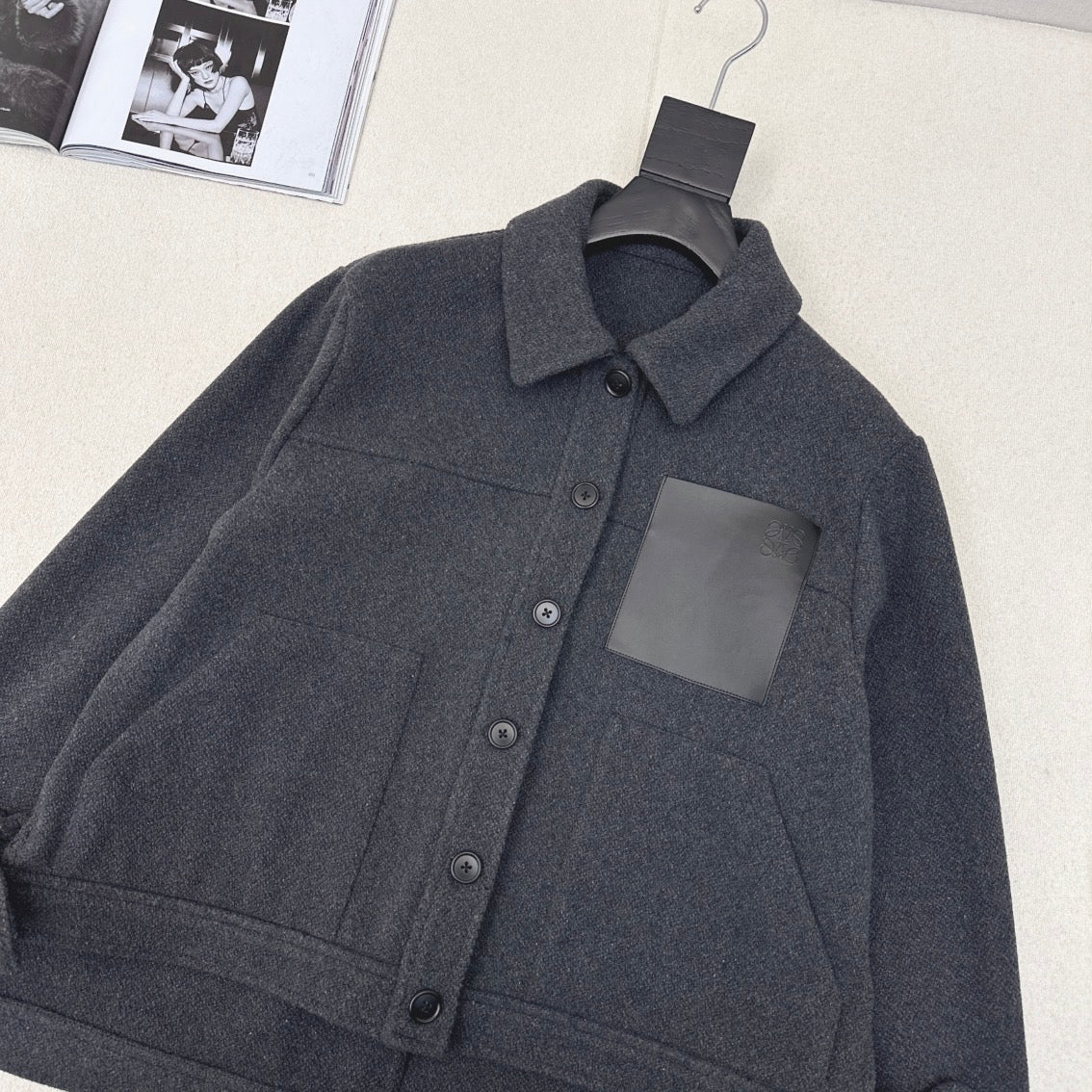 Loewe Logo Embroidered Jacket Gray Polyester Fiber