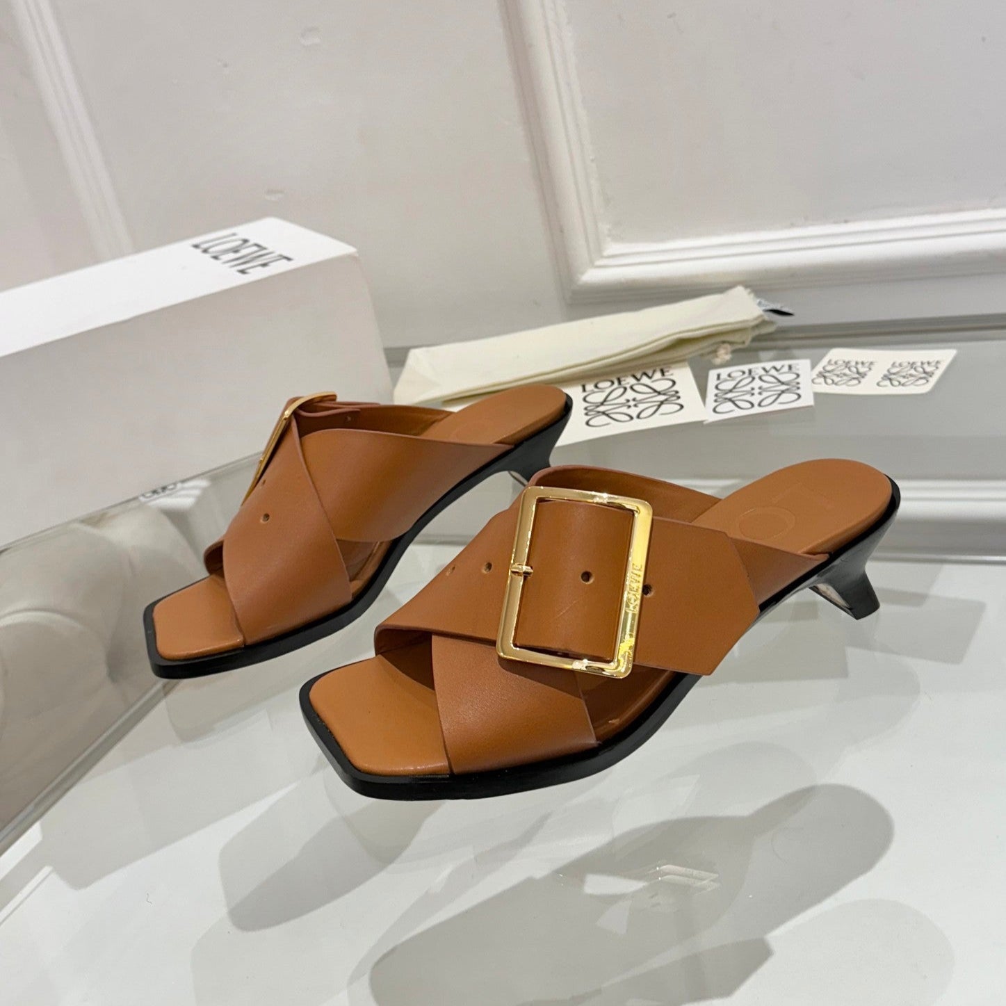 Loewe Petal Belt Mule Mahogany Brown Cowhide