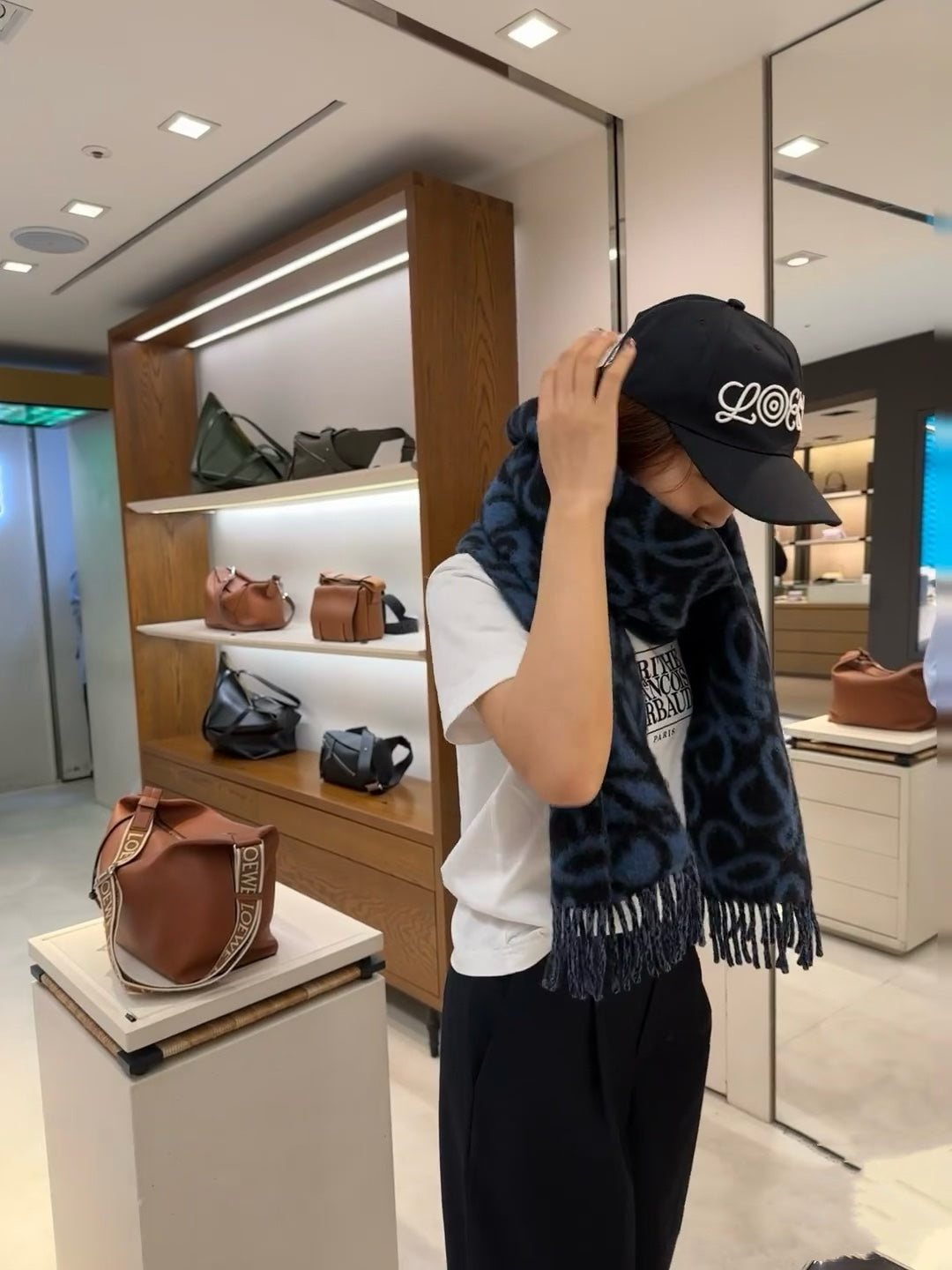 Loewe Scarf 180CM Dark Blue Black Wool Cashmere 968583