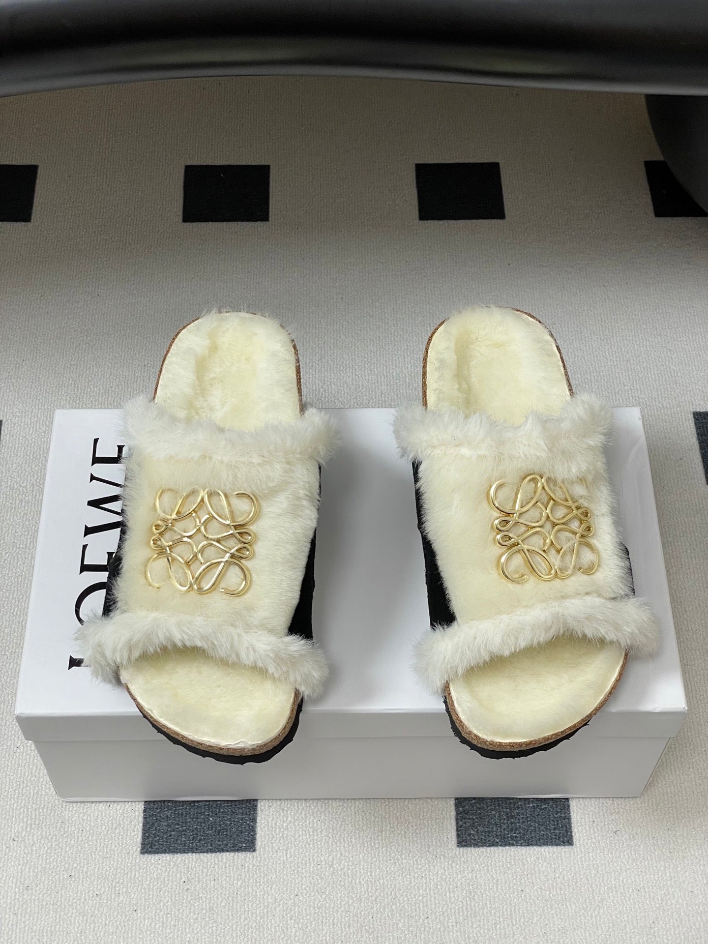 Loewe x Birkenstock slippers white black further