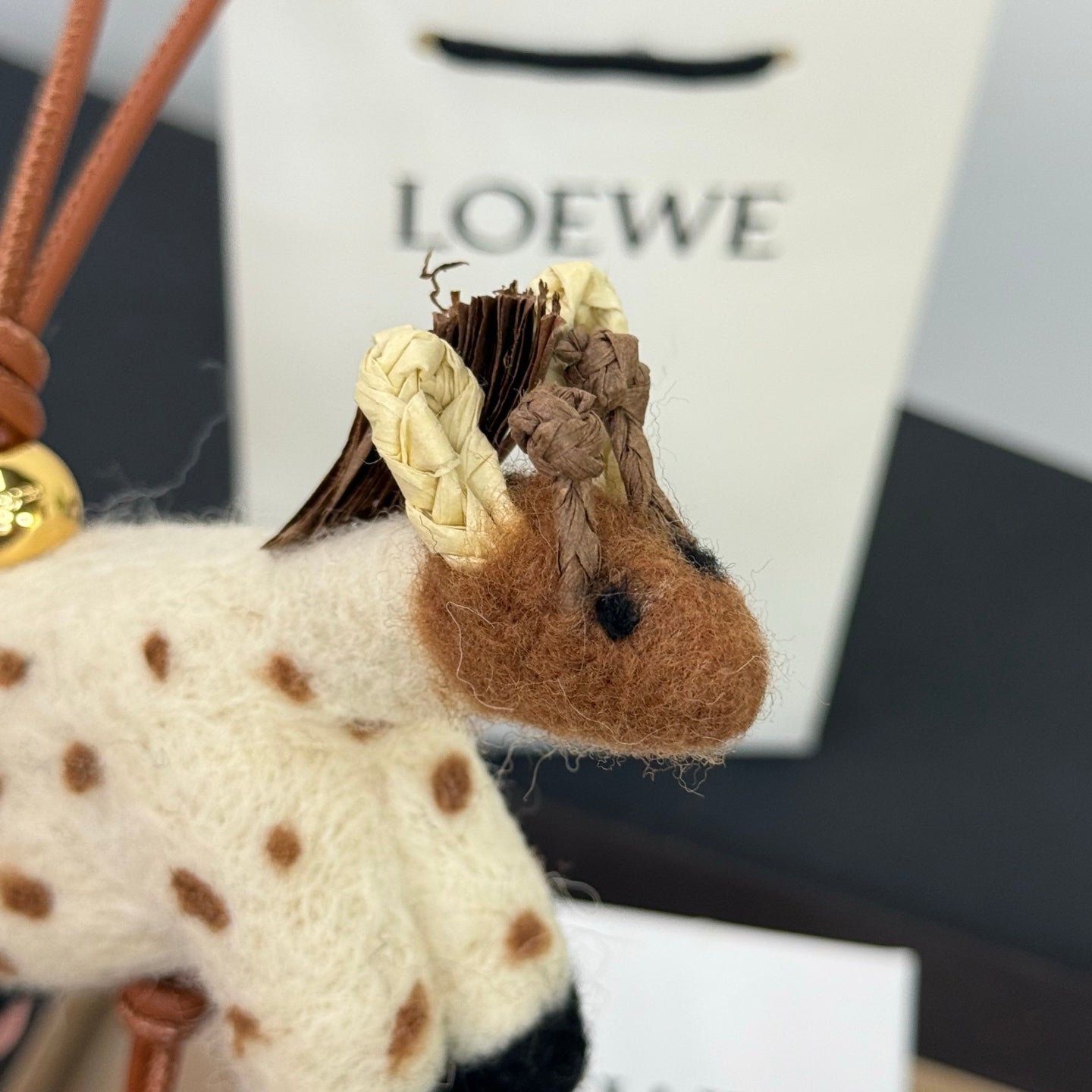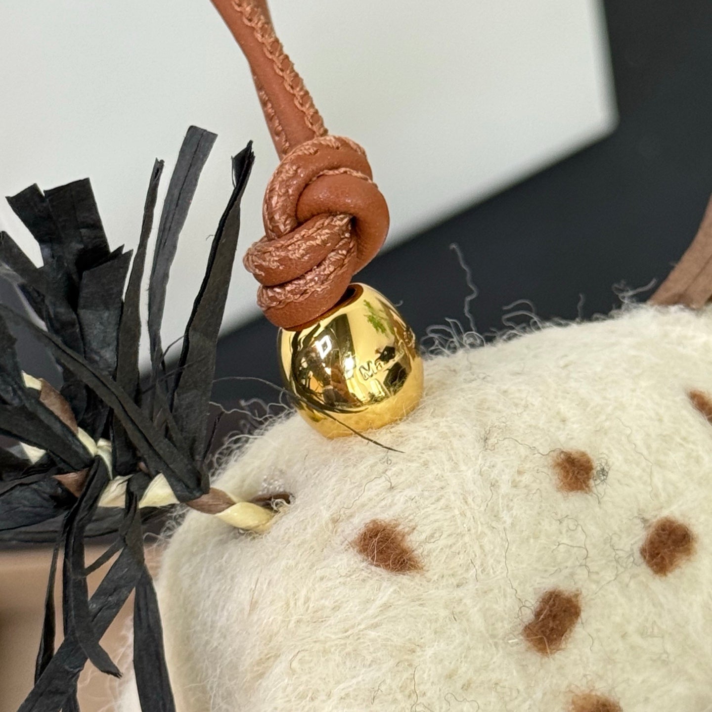 Loewe x Paula's Ibiza Giraffe Bag Charm Brown And Off-white Raffia Leather