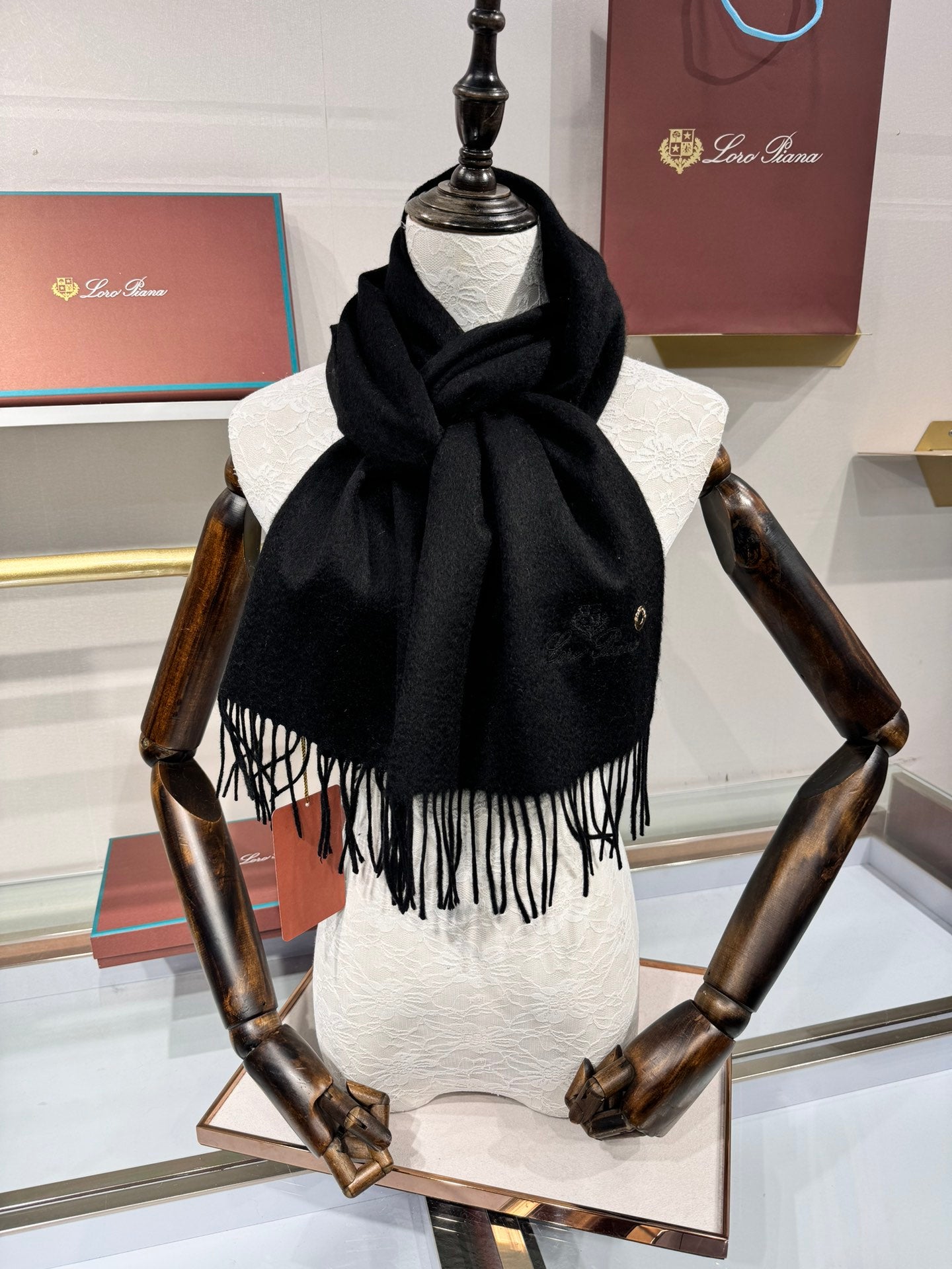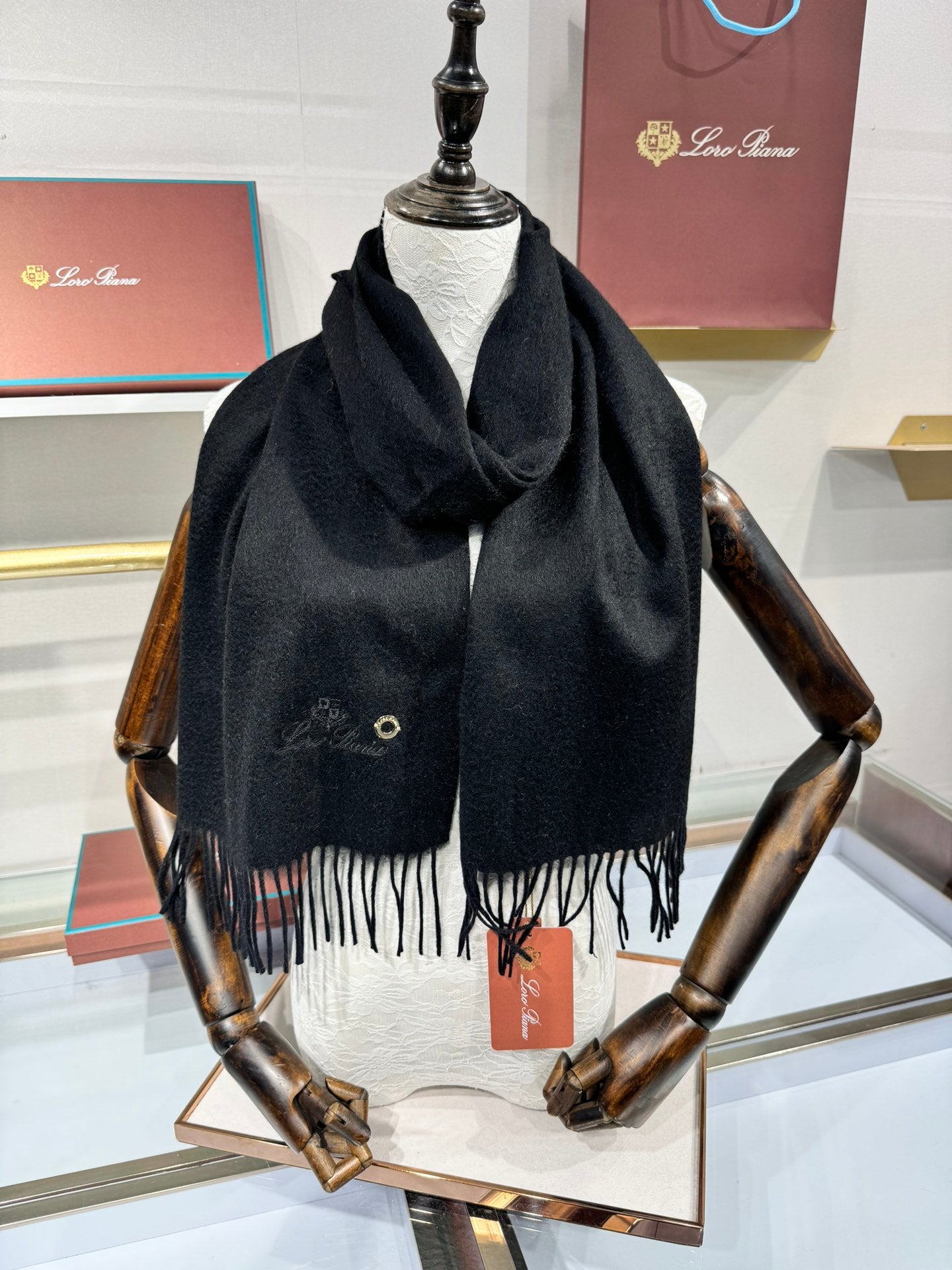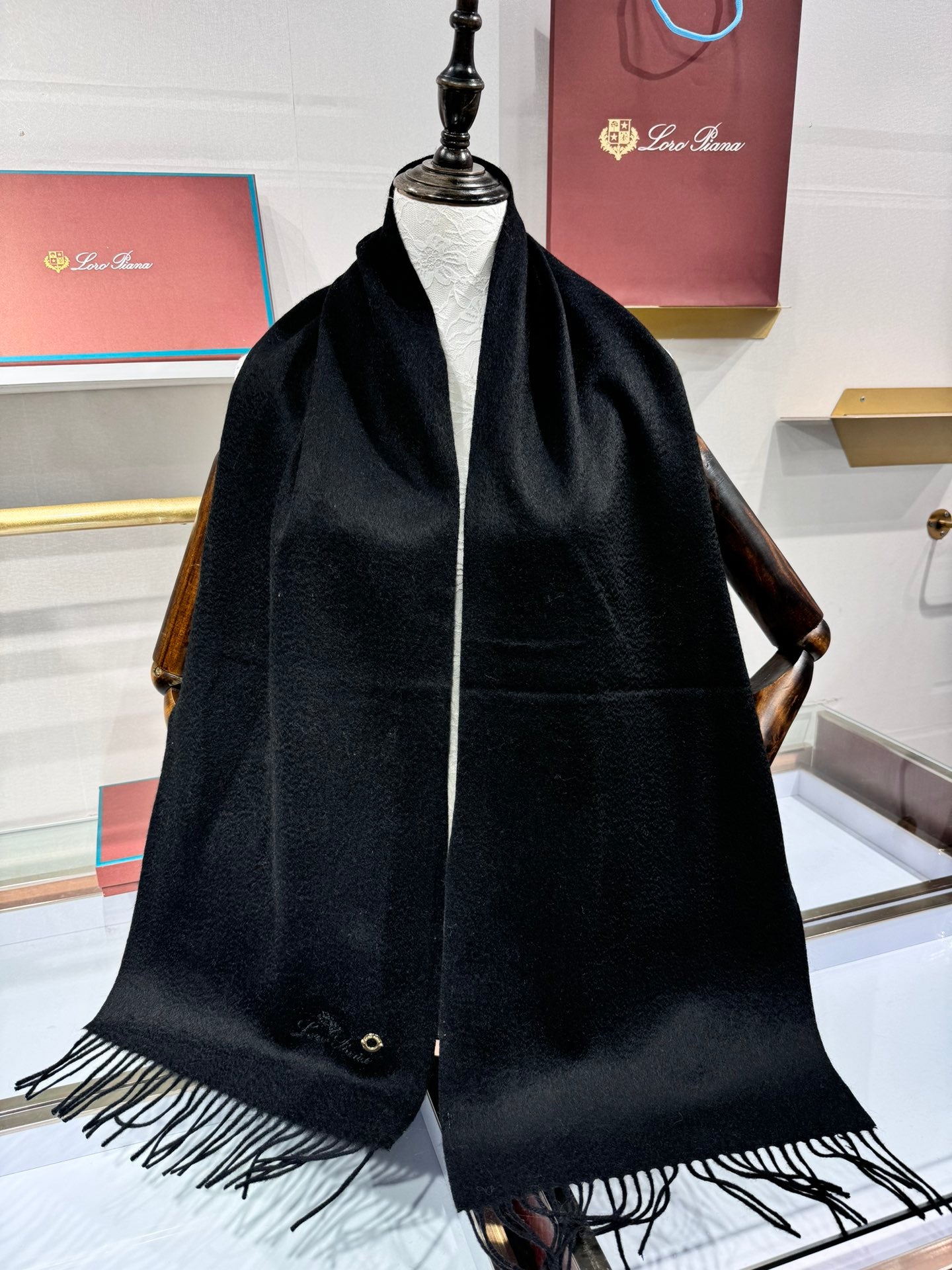 Loro Piana Long Scarf Black Cashmere 193712