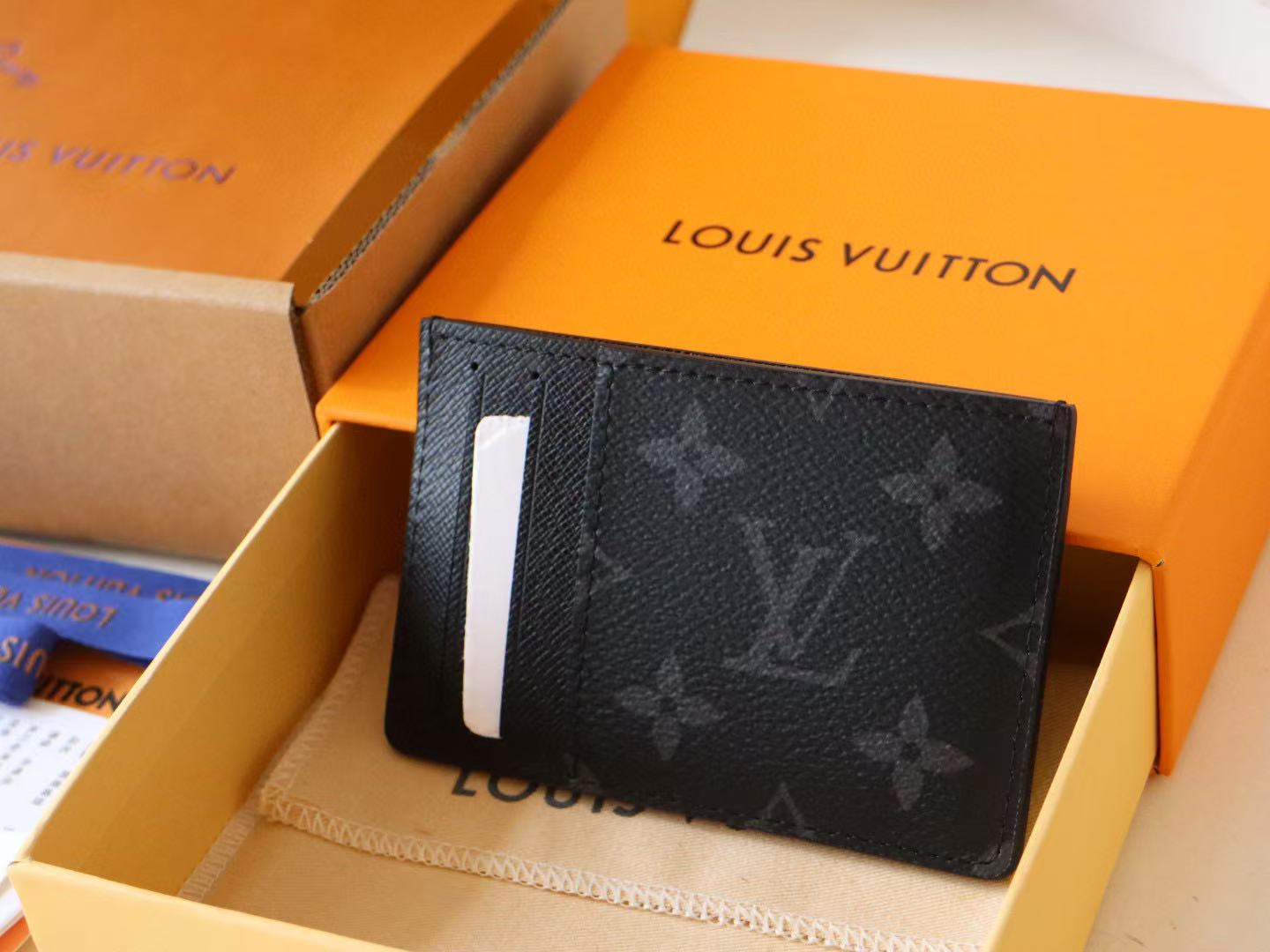 Louis Vuitton Card Wallet Black Cowhide Canvas