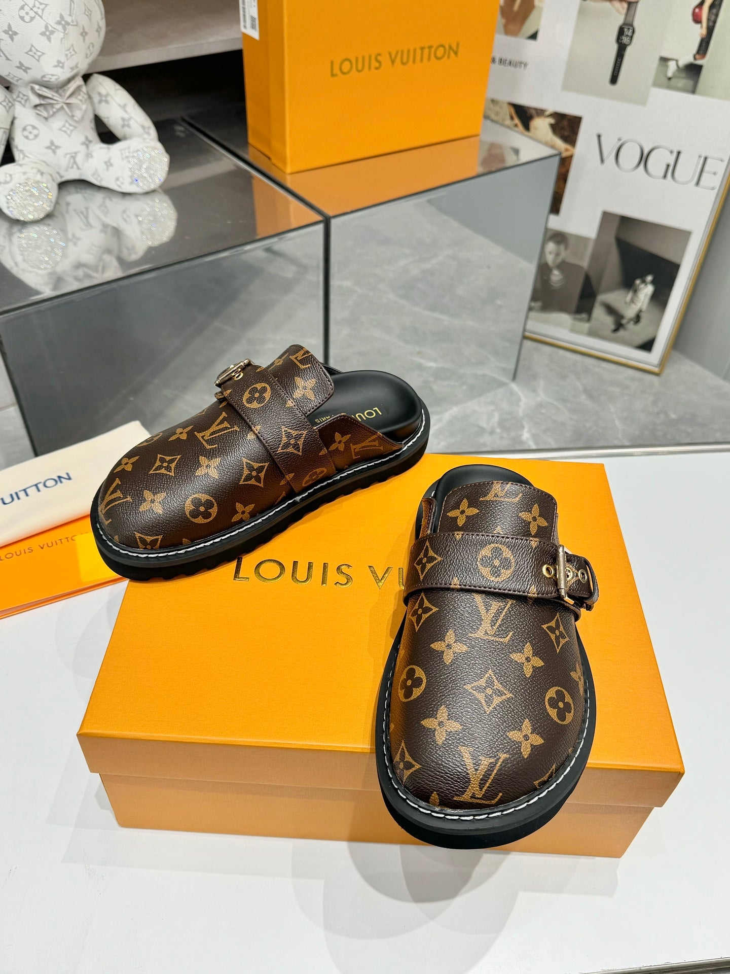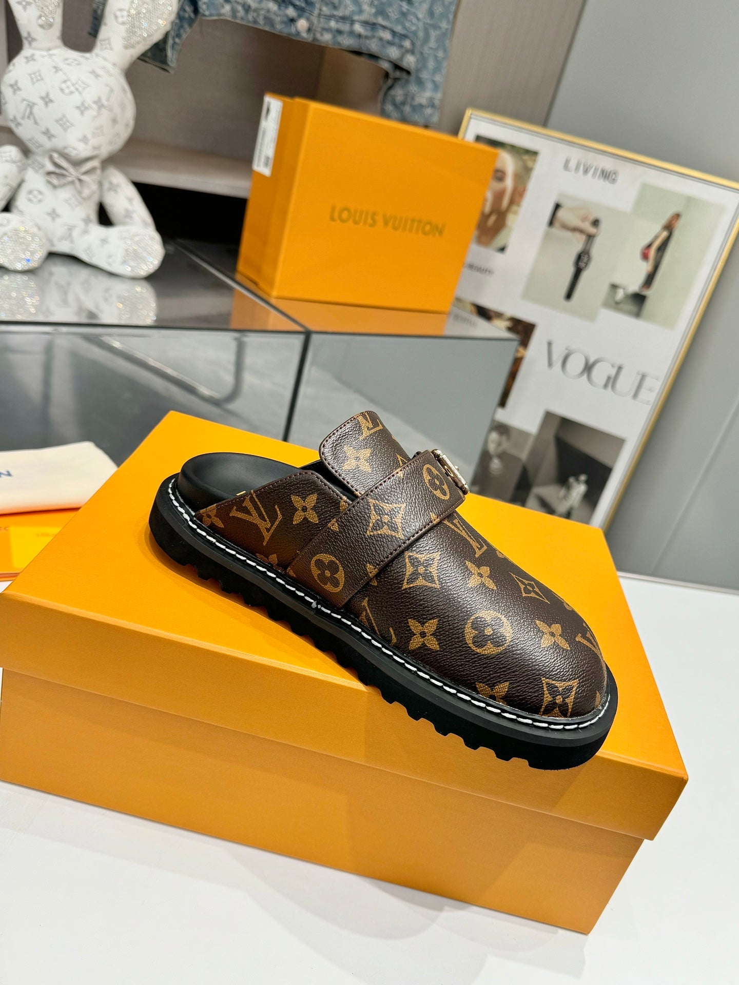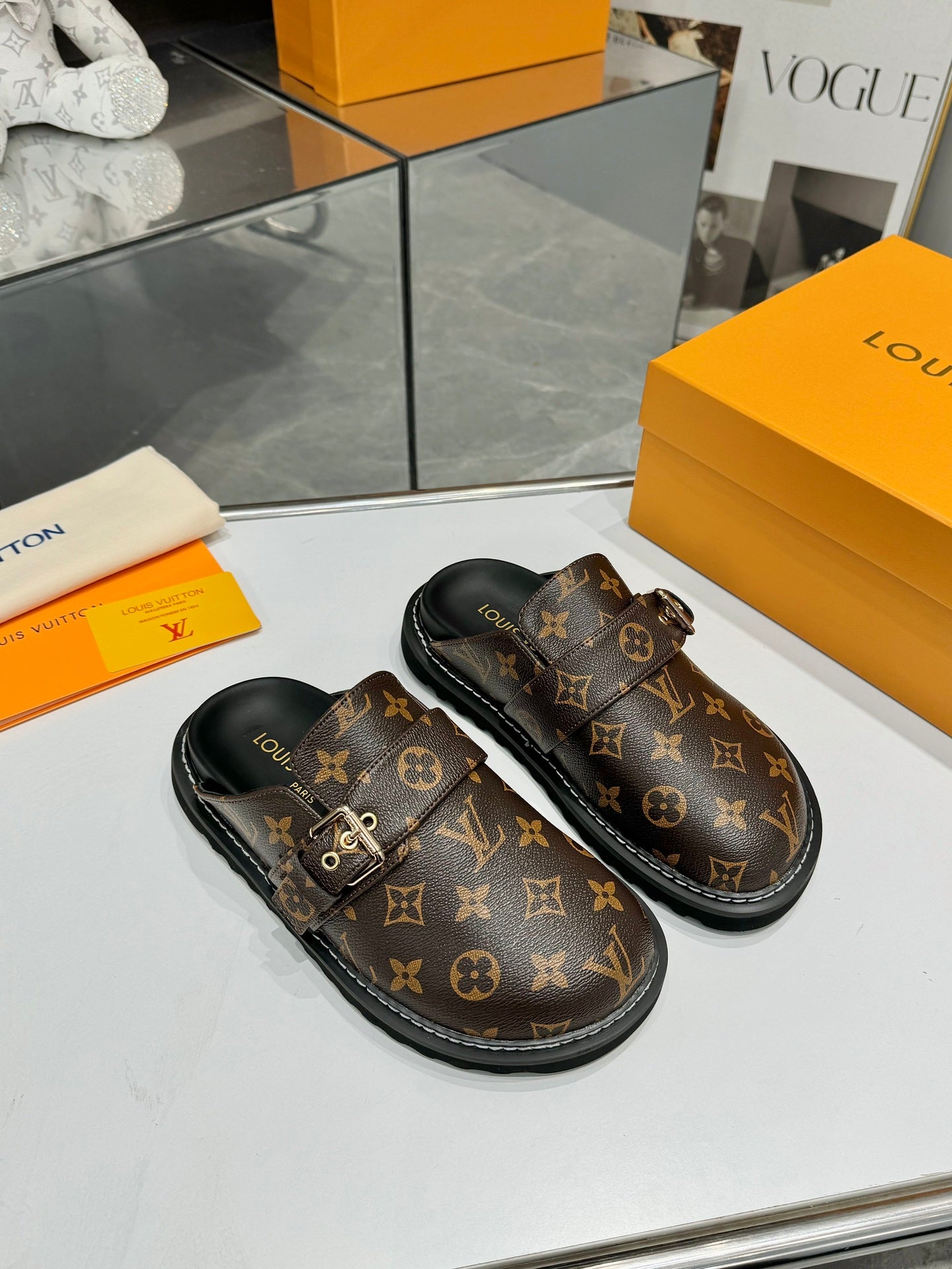 Louis Vuitton Mule Brown Black Sheepskin 979788