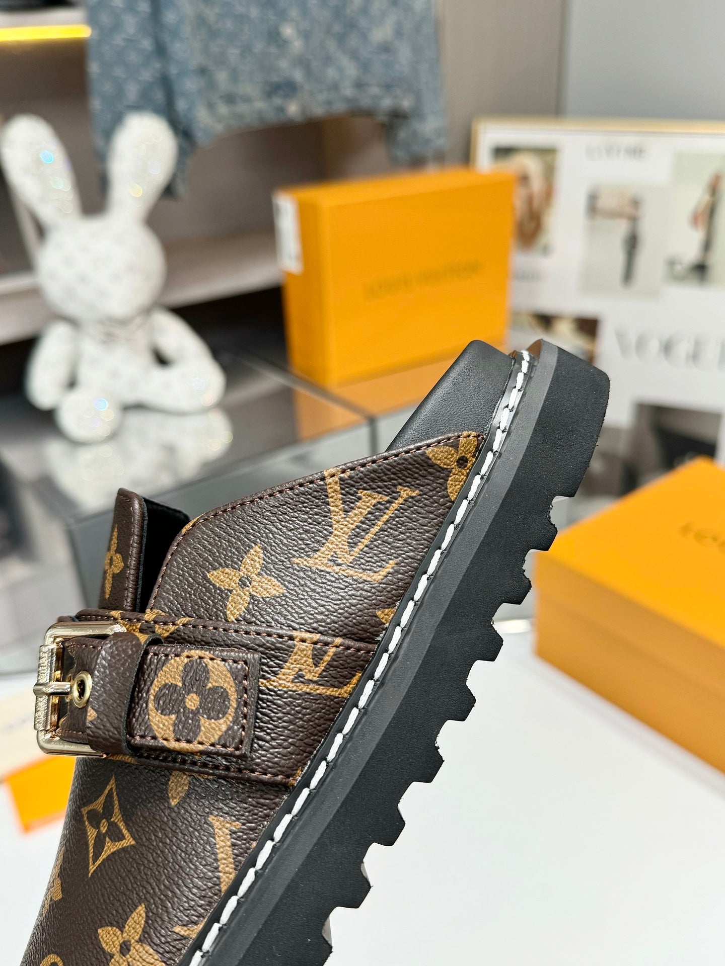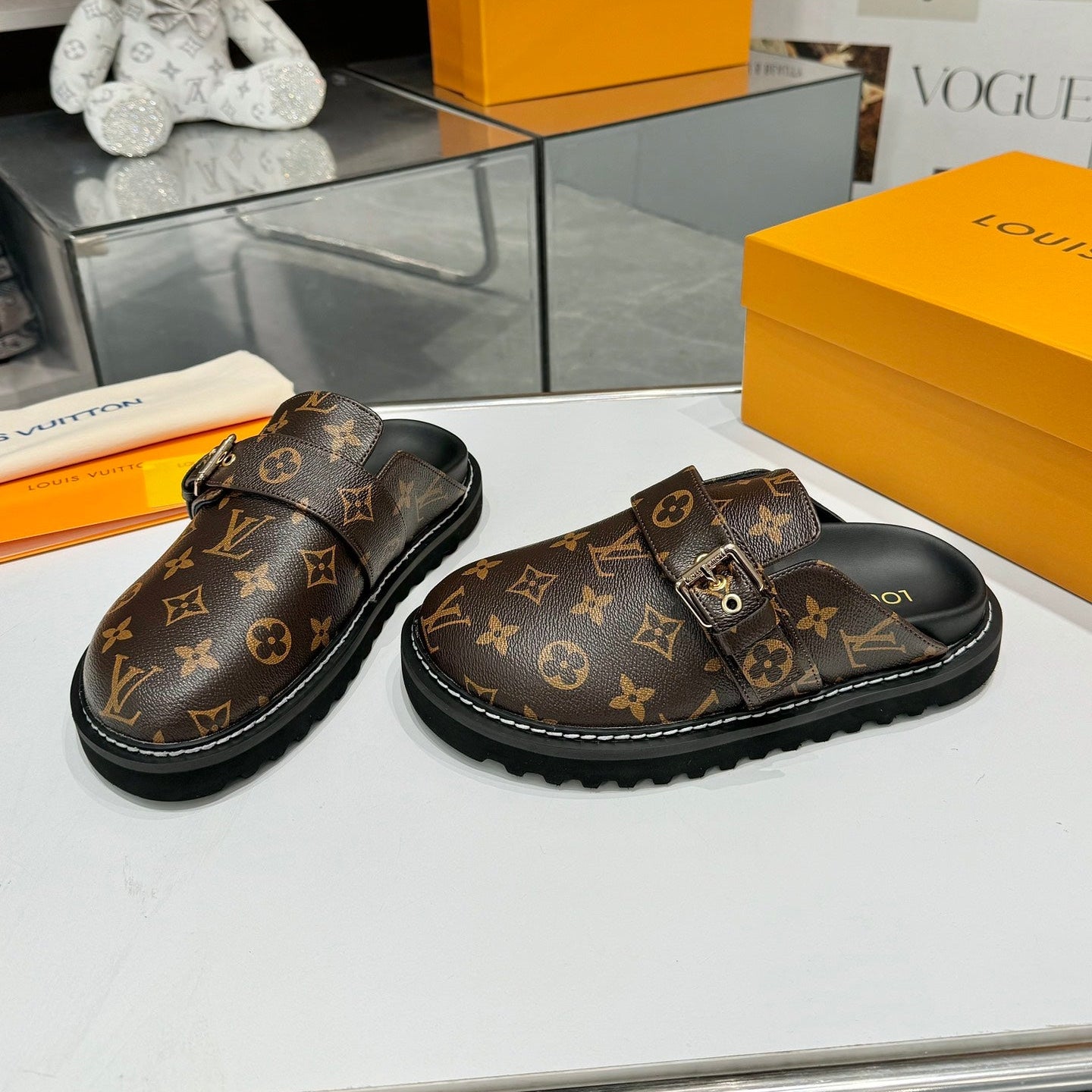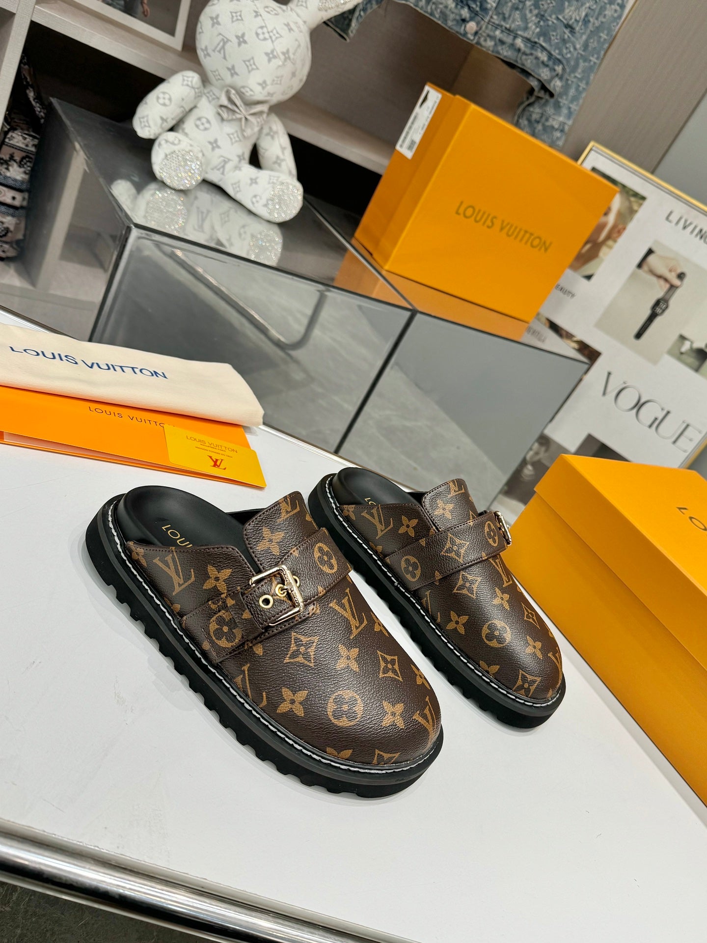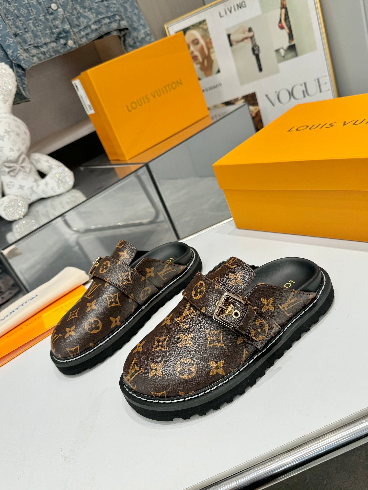Louis Vuitton Mule Brown Black Sheepskin 979788