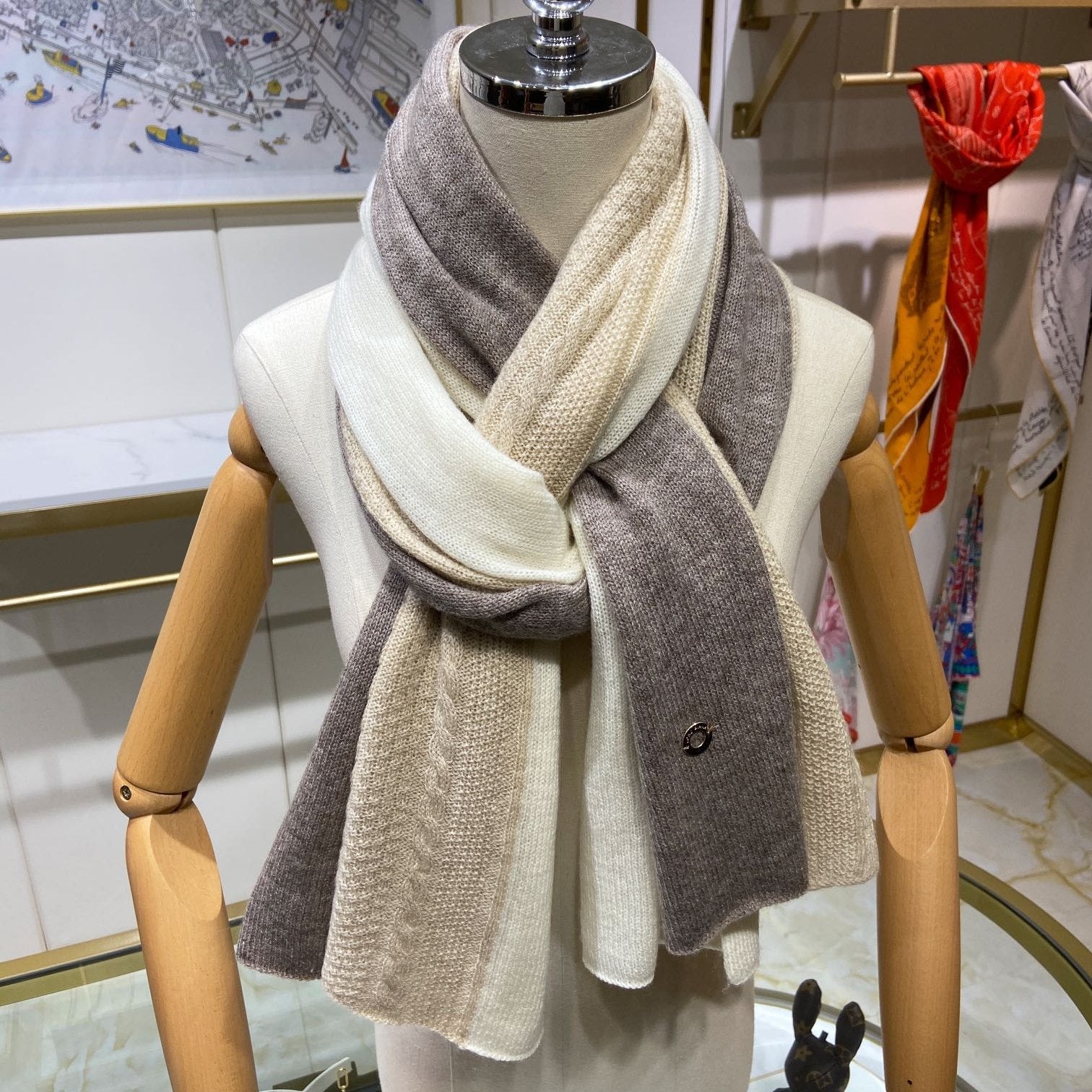 LP Scarf 190 CM In Beige White Mix Grey Brown Cashmere 649677