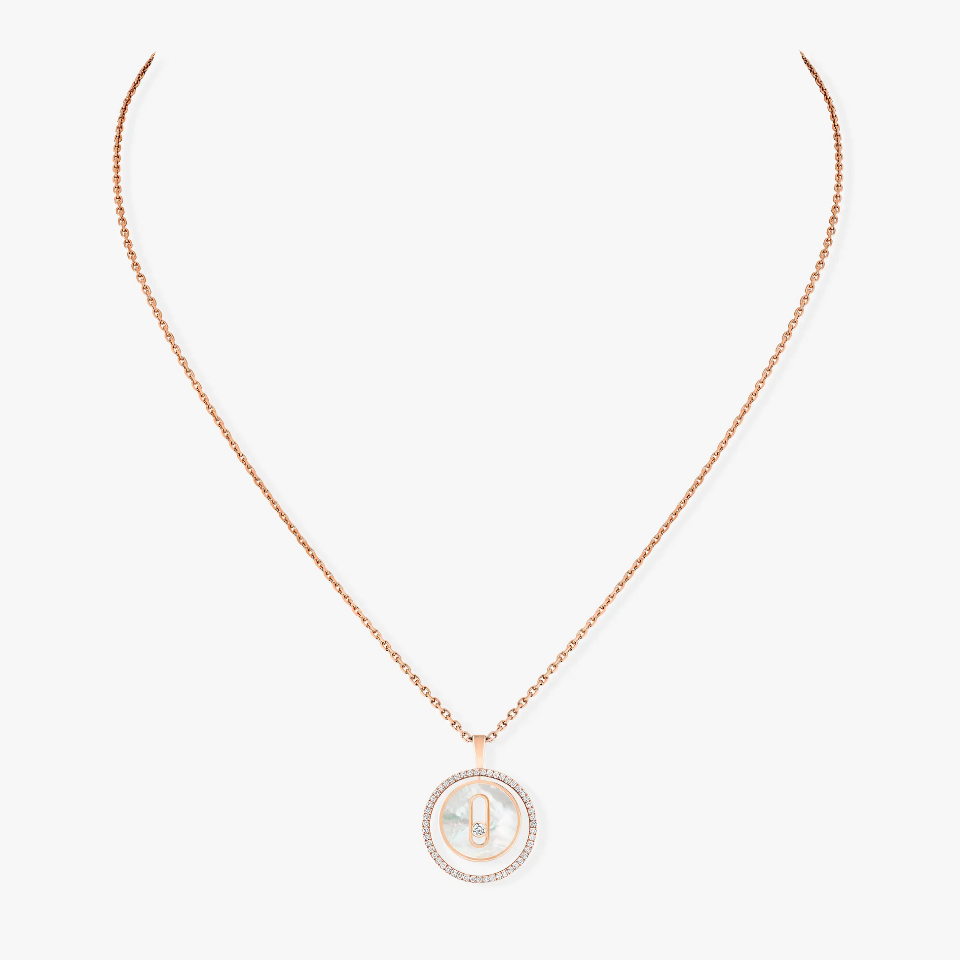 LUCKY MOVE 1 DIAMOND WHITE MOTHER OF PEARL PINK GOLD DIAMOND NECKLACE