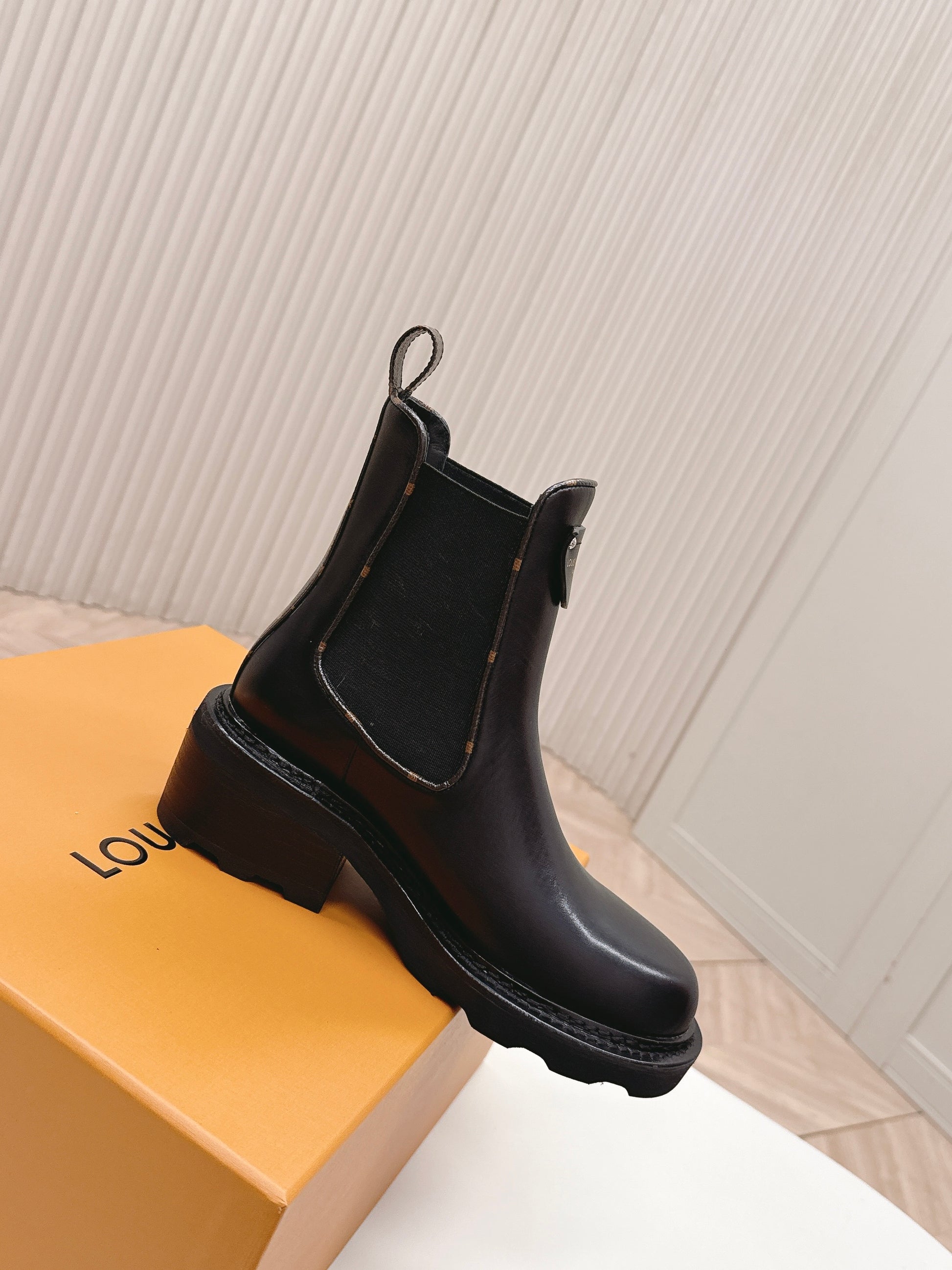 LV 2026 Beaubourg Platform Ankle Boot Black Calfskin 595465