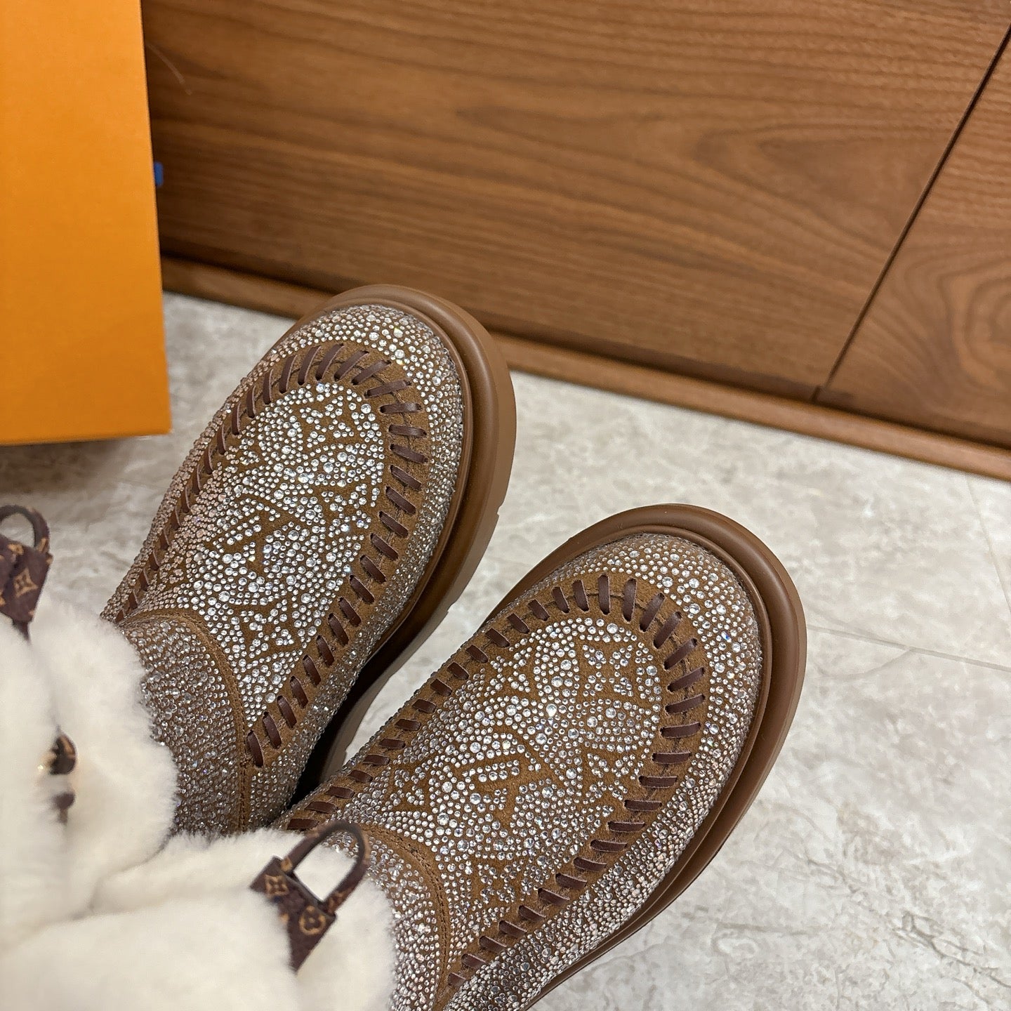 LV 2026 Cortina Ankle Boot Silver Brown White Silver Sequin Wool 594927