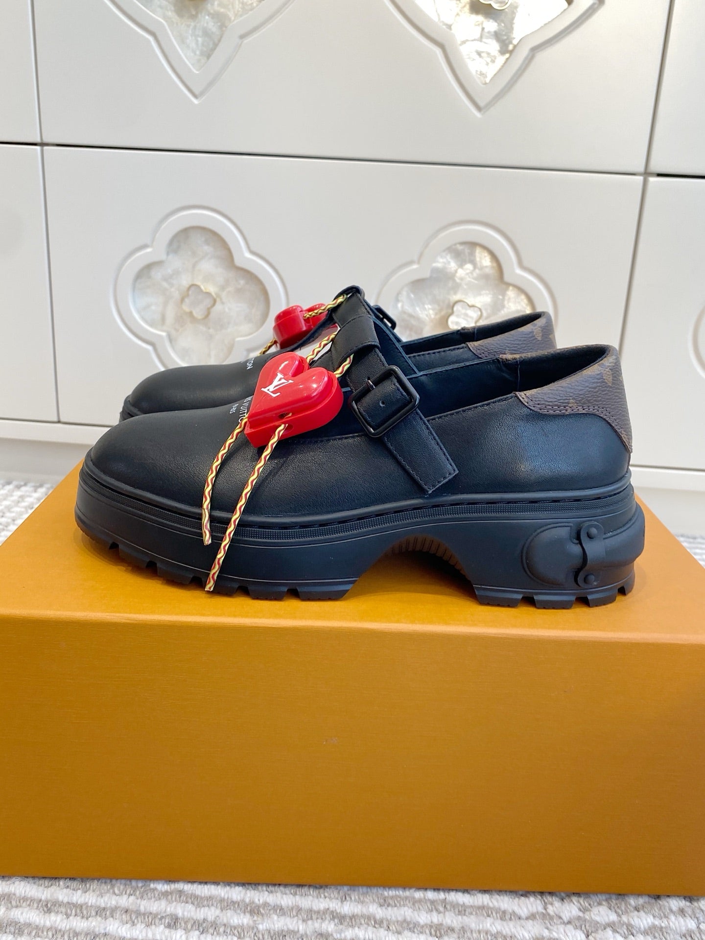 LV 2026 T-strap Loafer With Heart-shaped Black Red Cowhide 595878