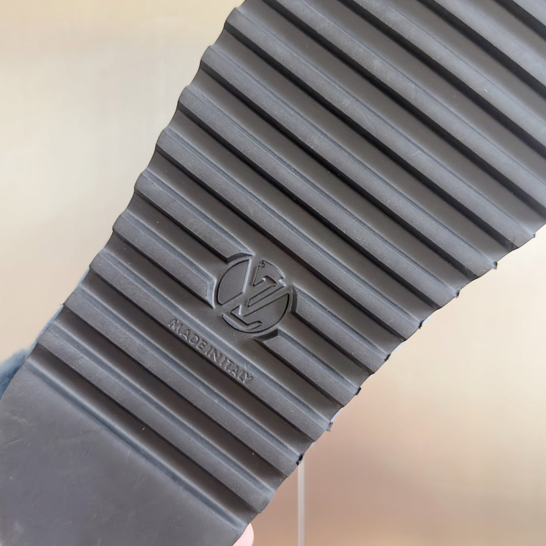 LV 25 Birkenstock Platform Slippers Blue Denim Wool 576213