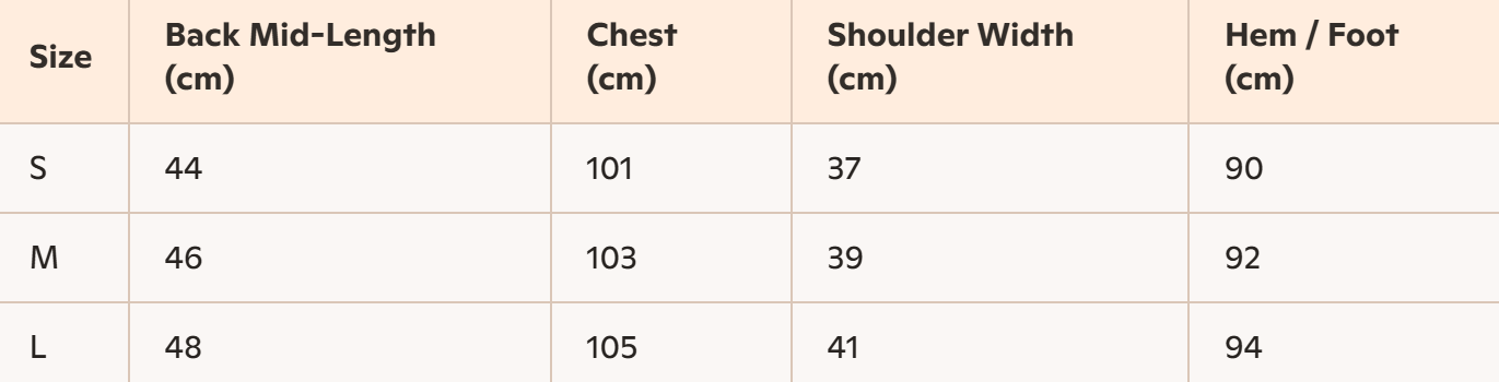 - Size: S, M, L