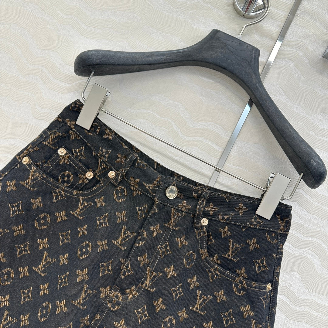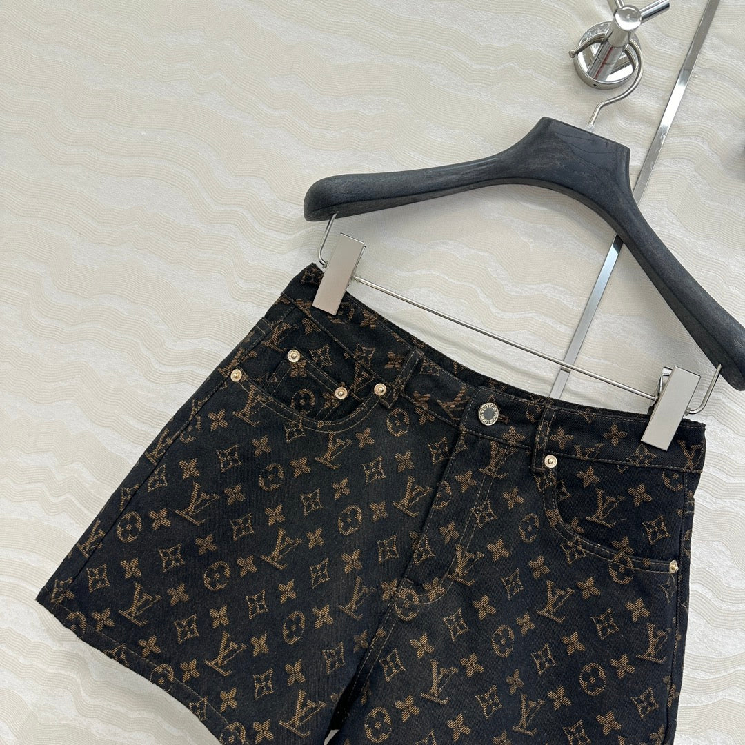 LV 25 Classic Logo Denim Shorts Black Cotton