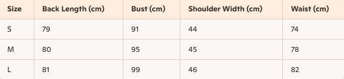 - Size : S, M, L
