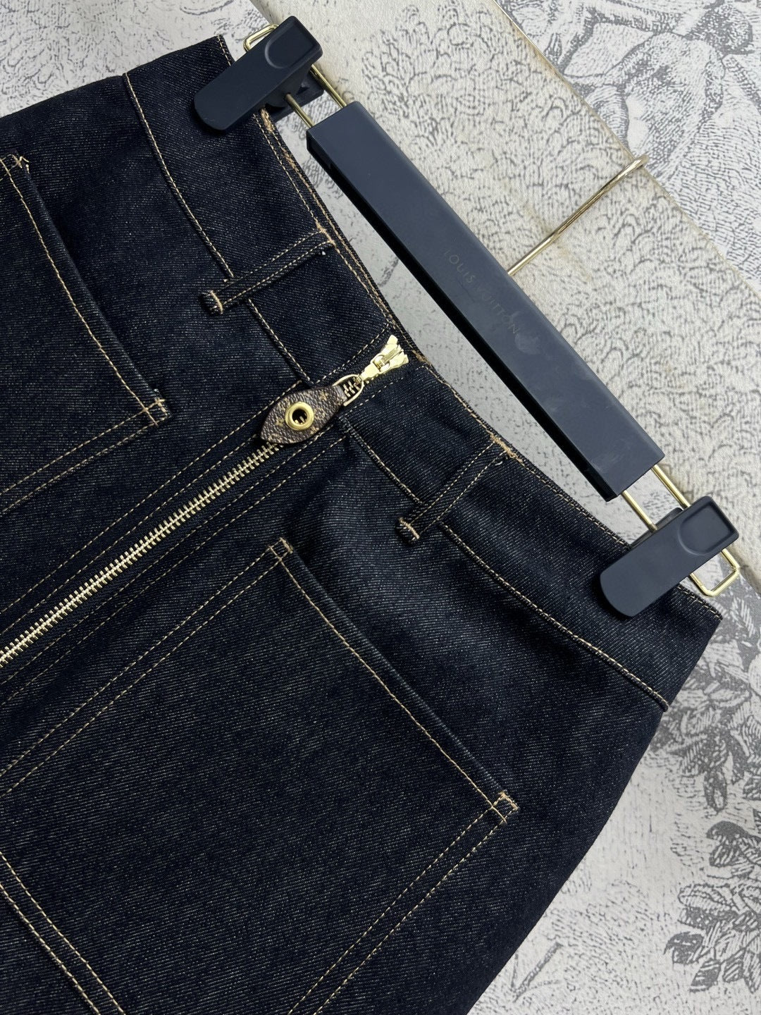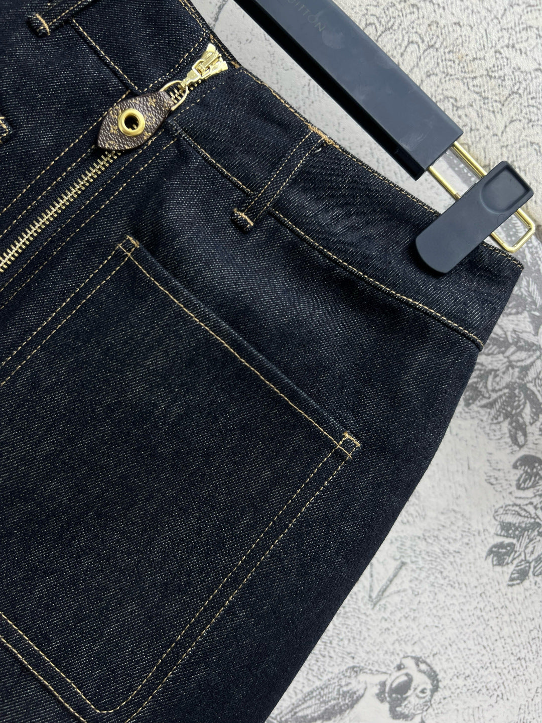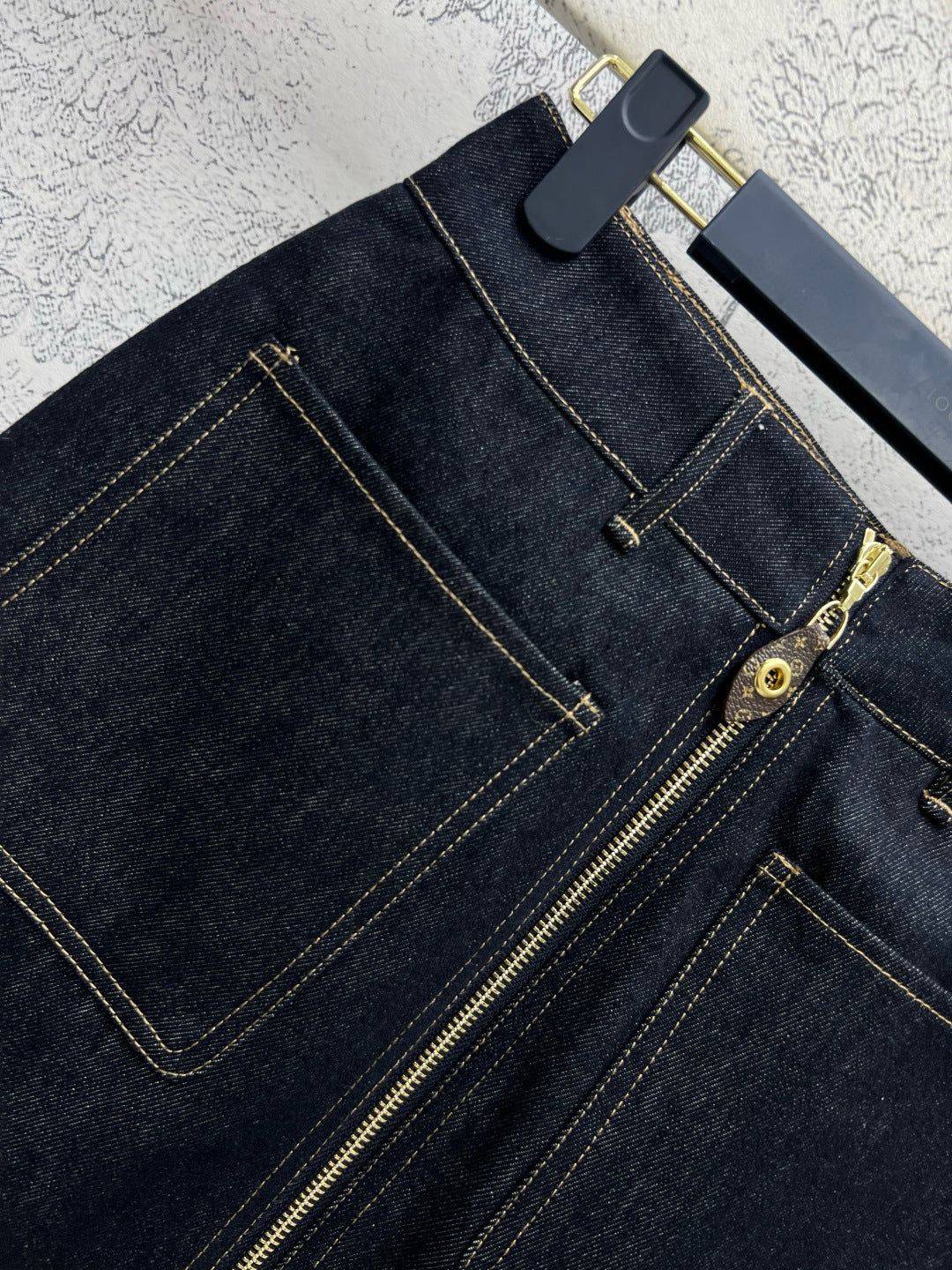 LV 25 Denim Skirt Black Cotton