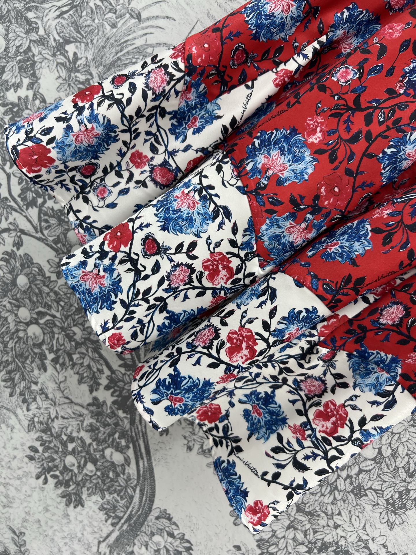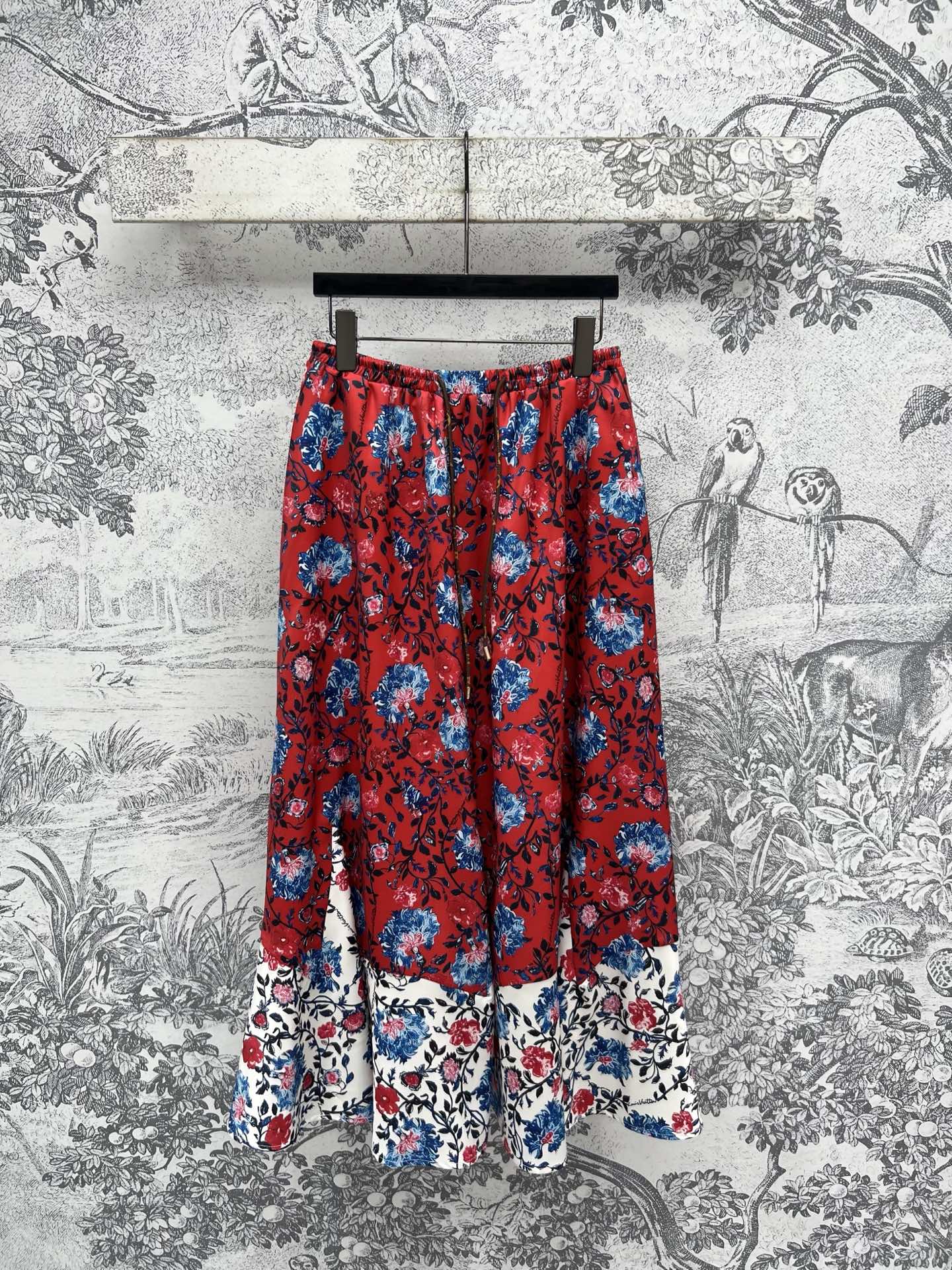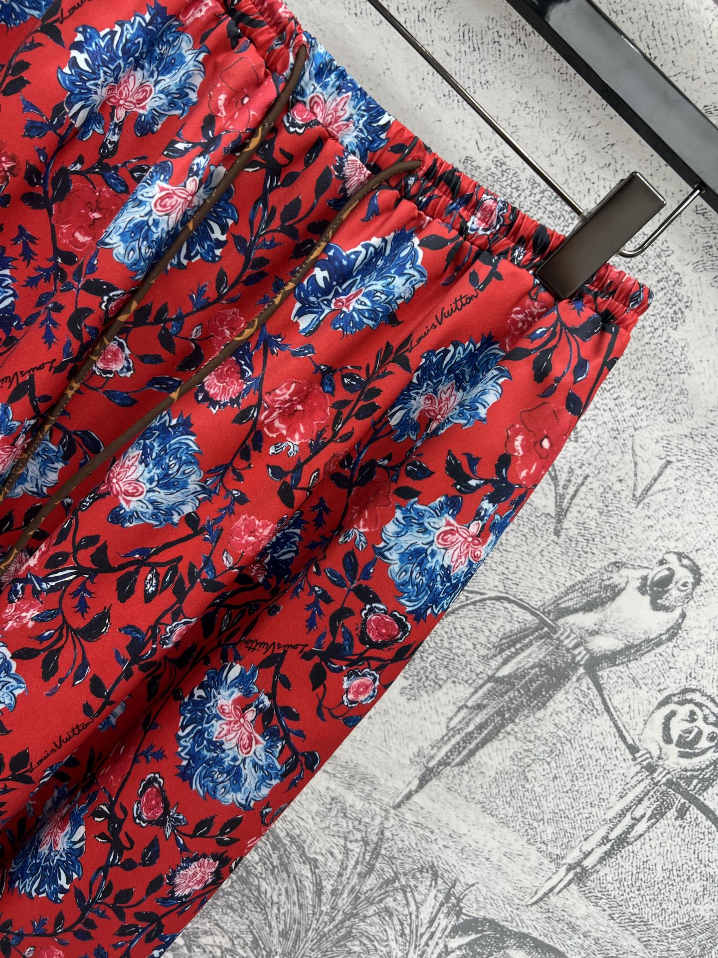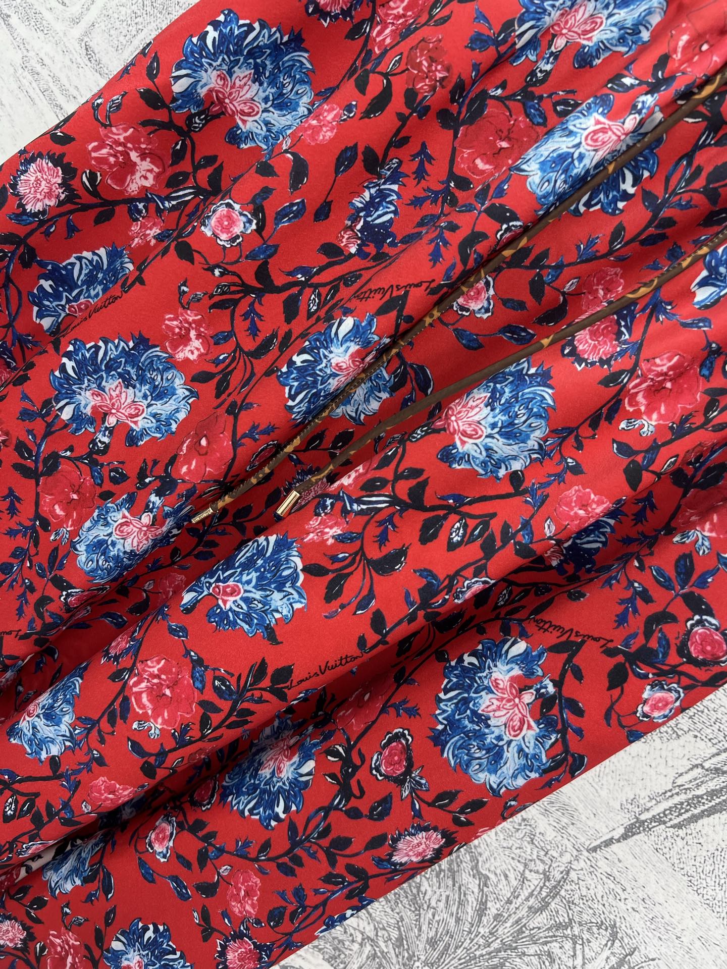 LV 25 Elastic Waist Old Flower Leather Skirt Red Poliester