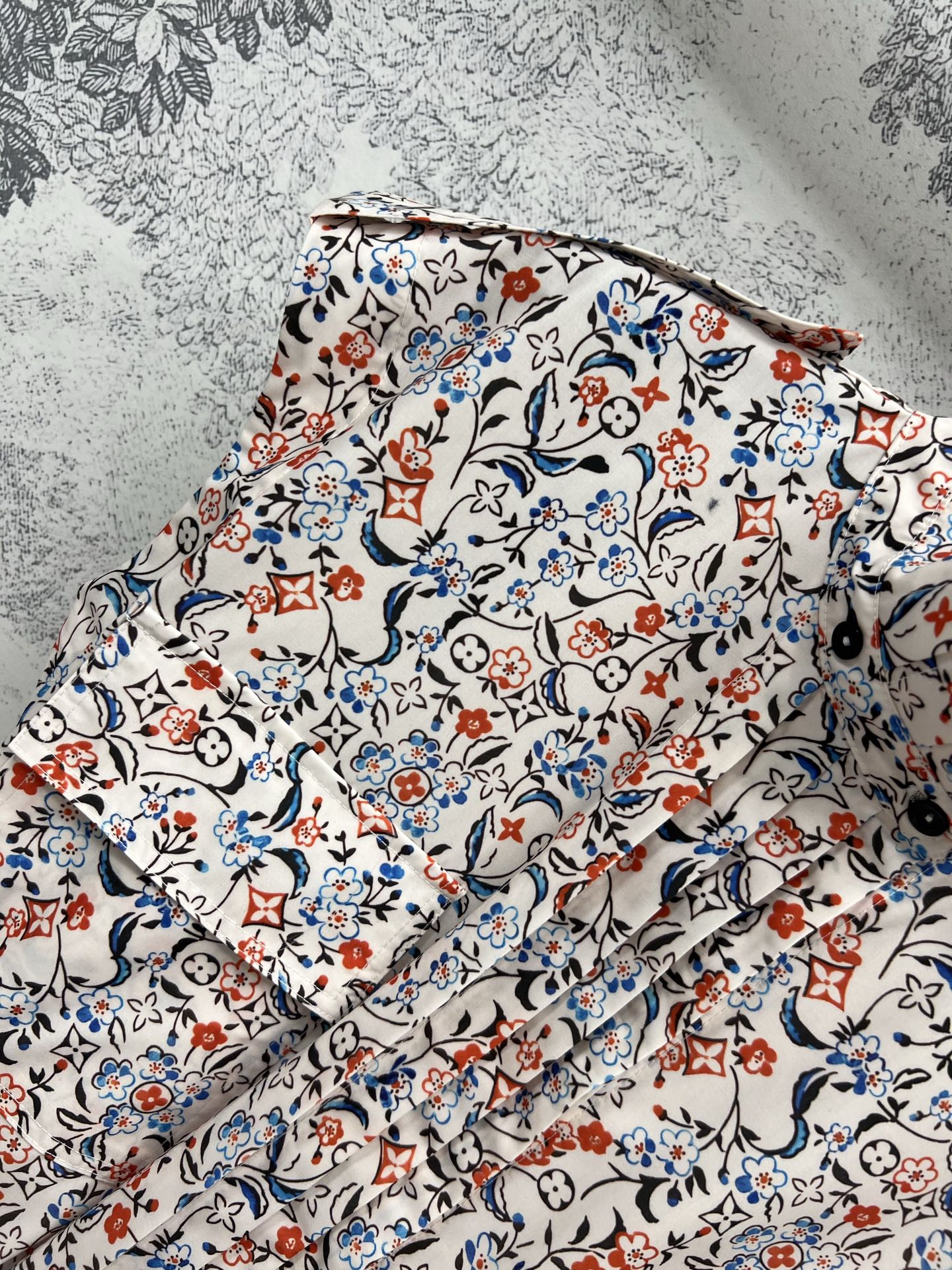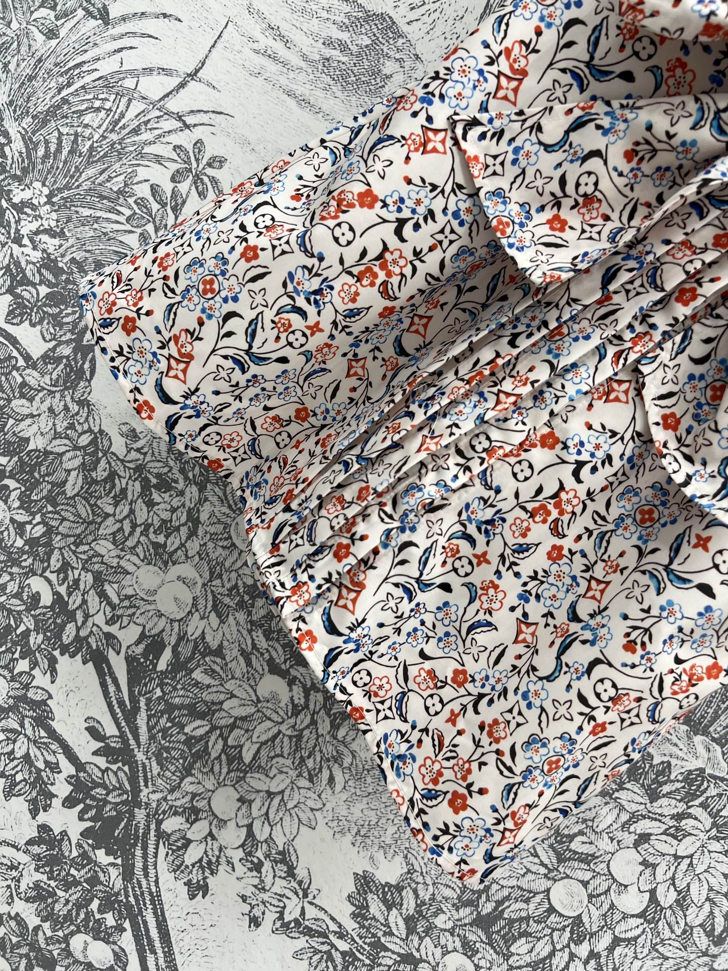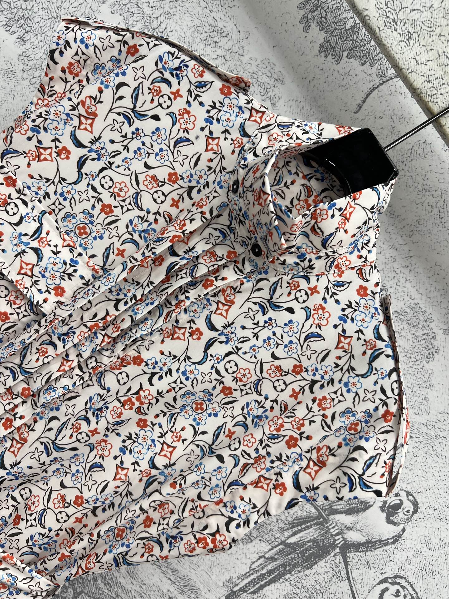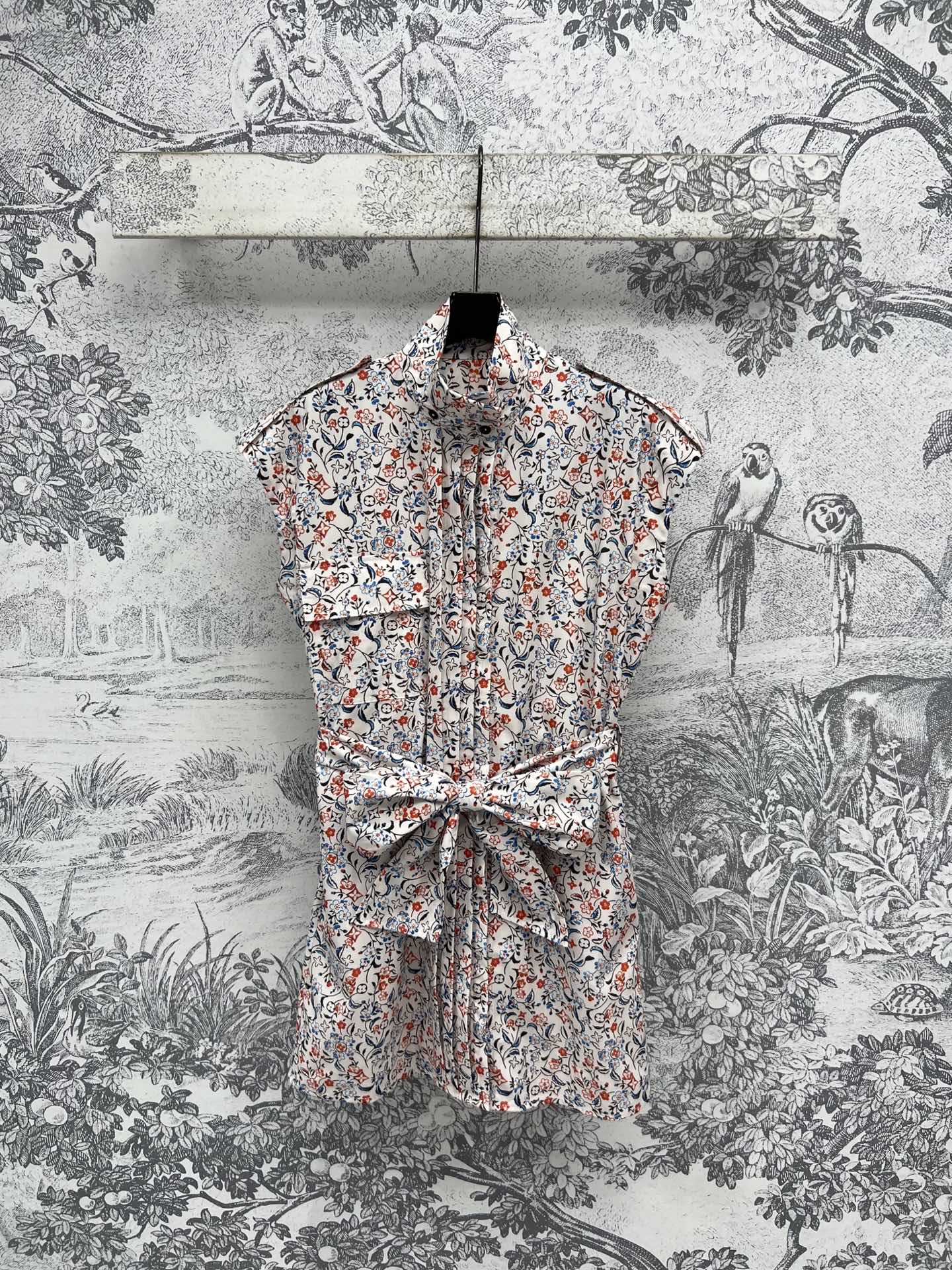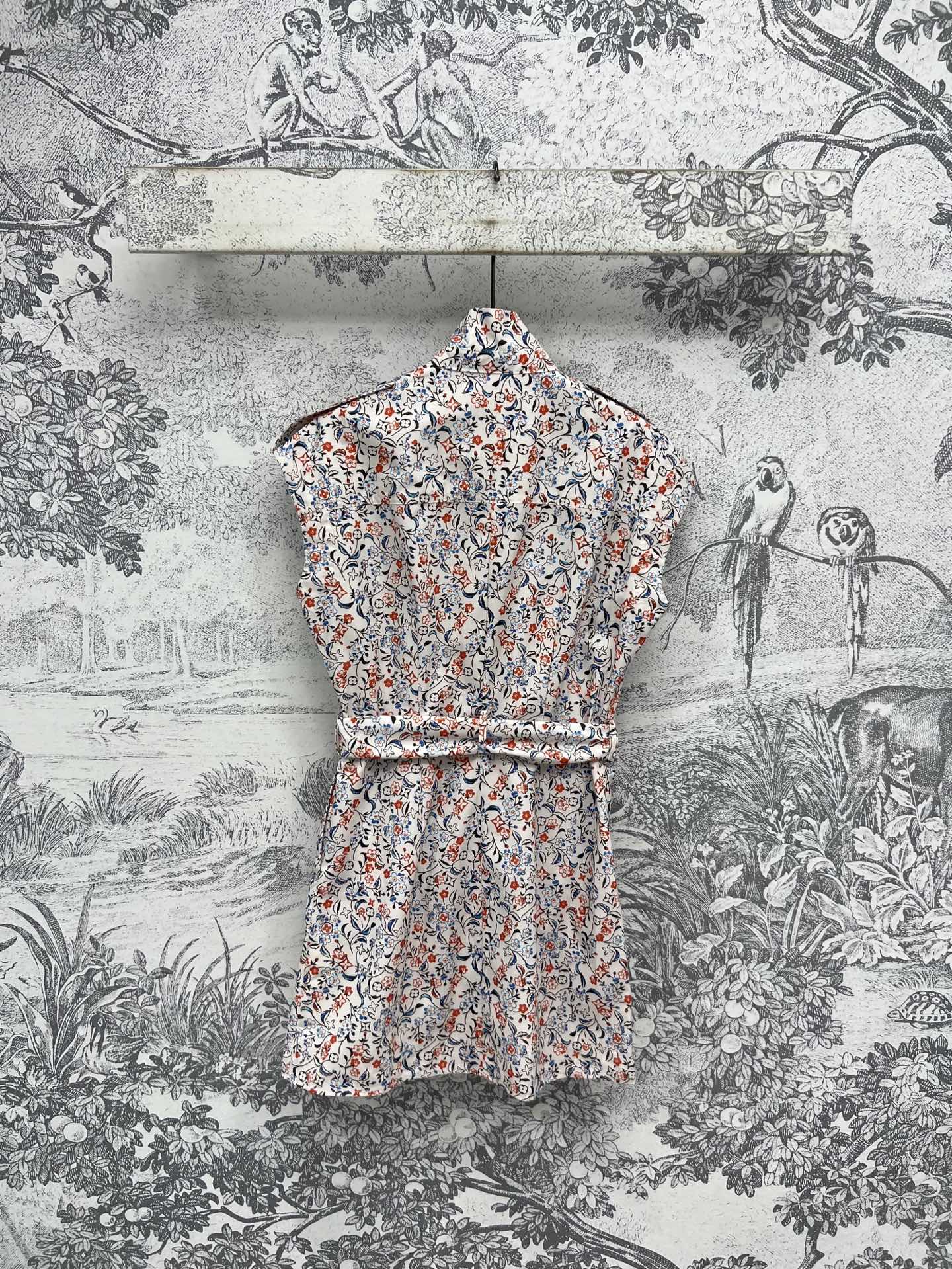 LV 25 Floral Print Stand-up Collar Sleeveless Dress Multicolor Poliester