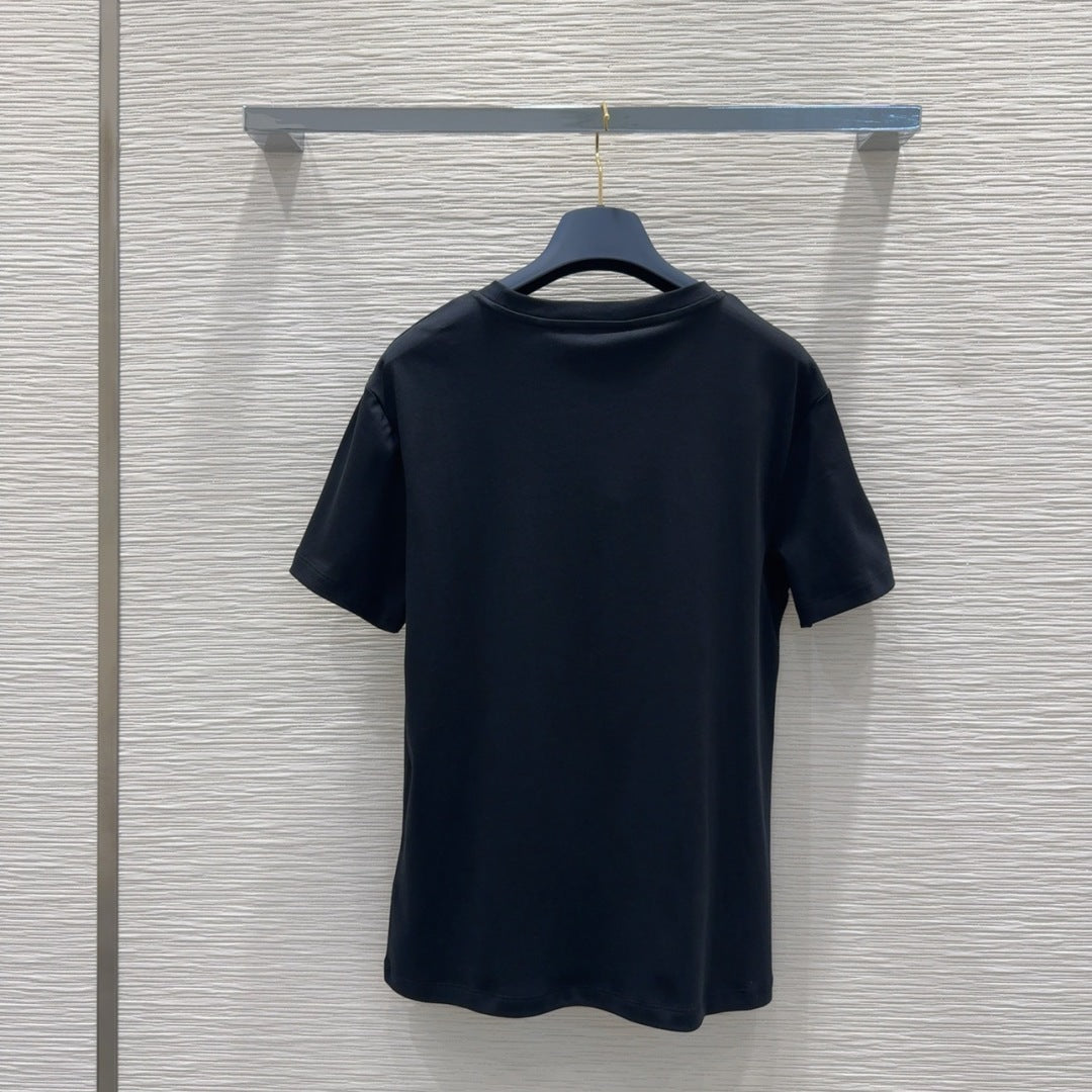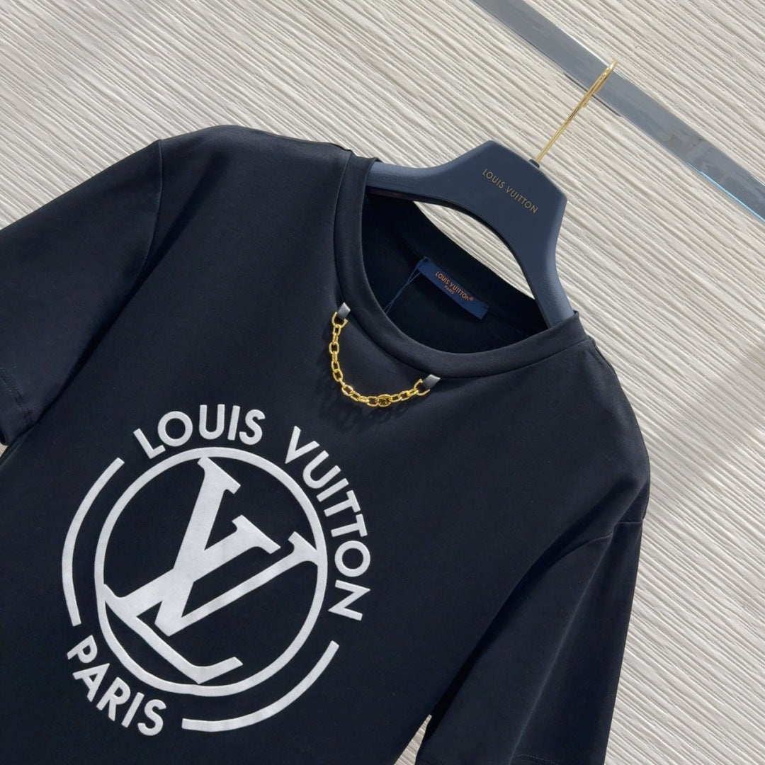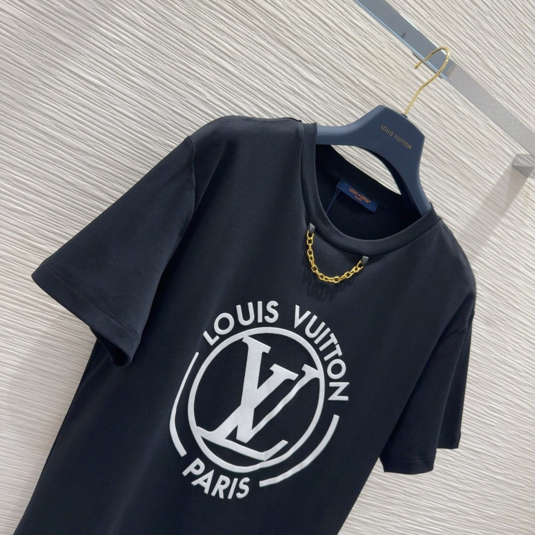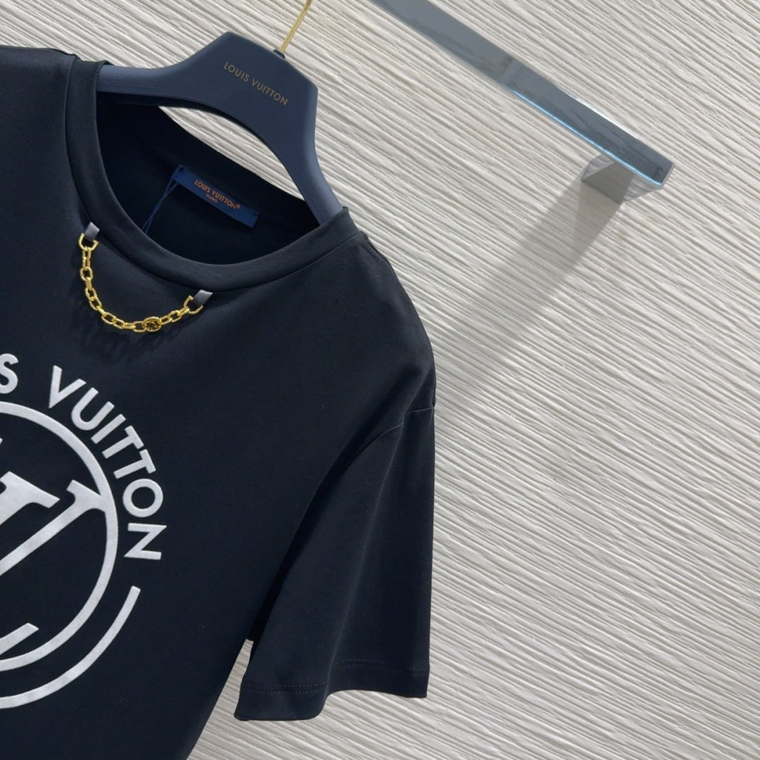 LV 25 Four-Leaf Clover Prints T-shirt Black Cotton