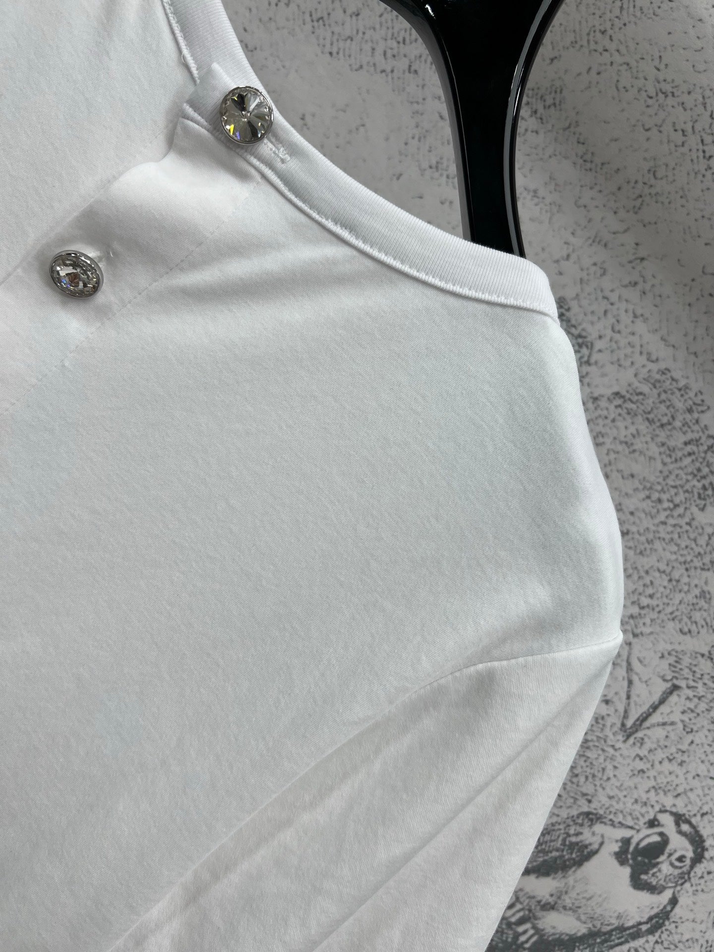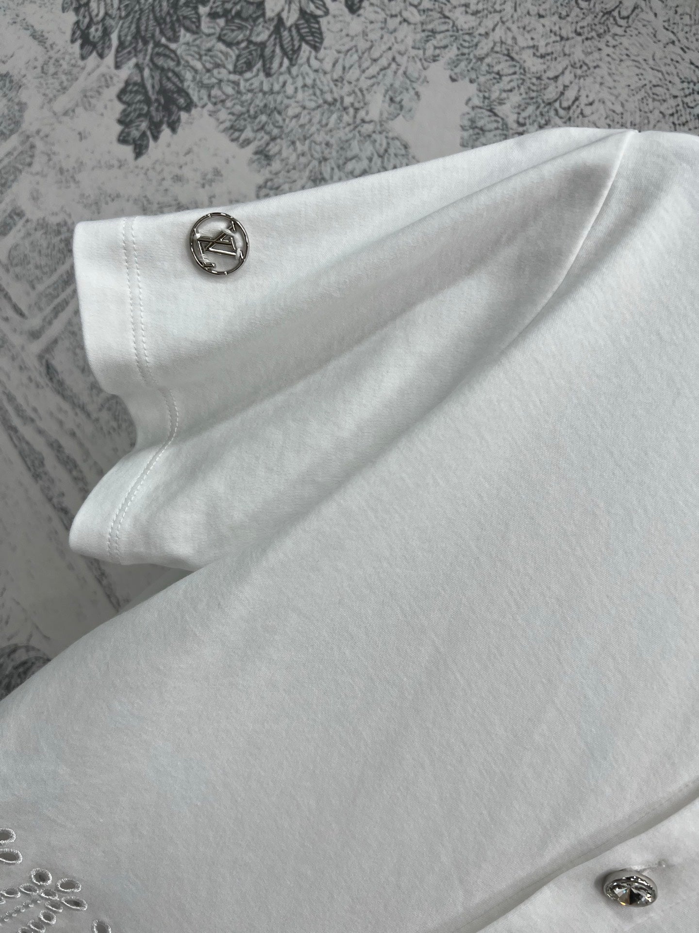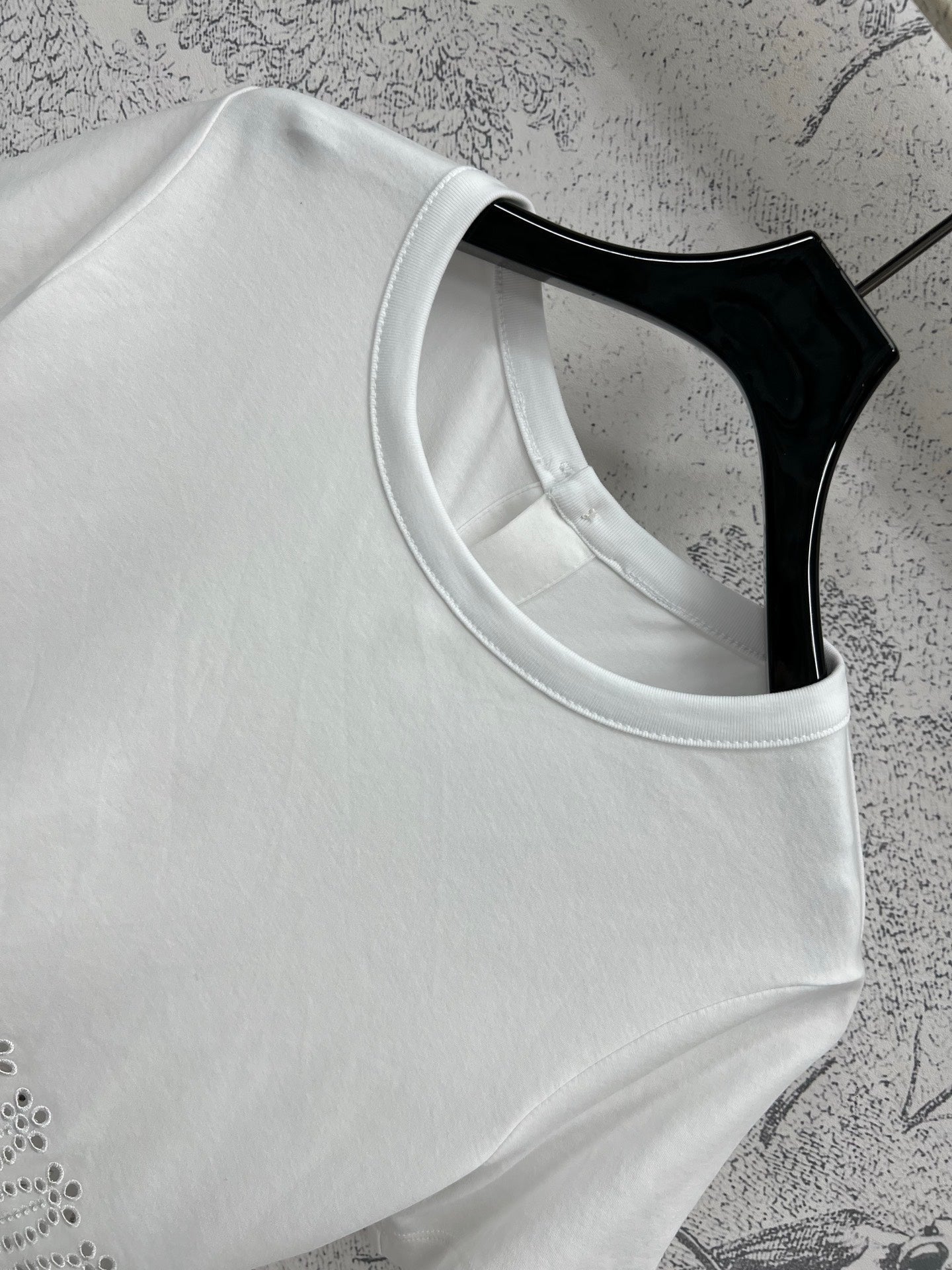 LV 25 Hollow Embroidery Design On The Hem T-Shirt White Cotton