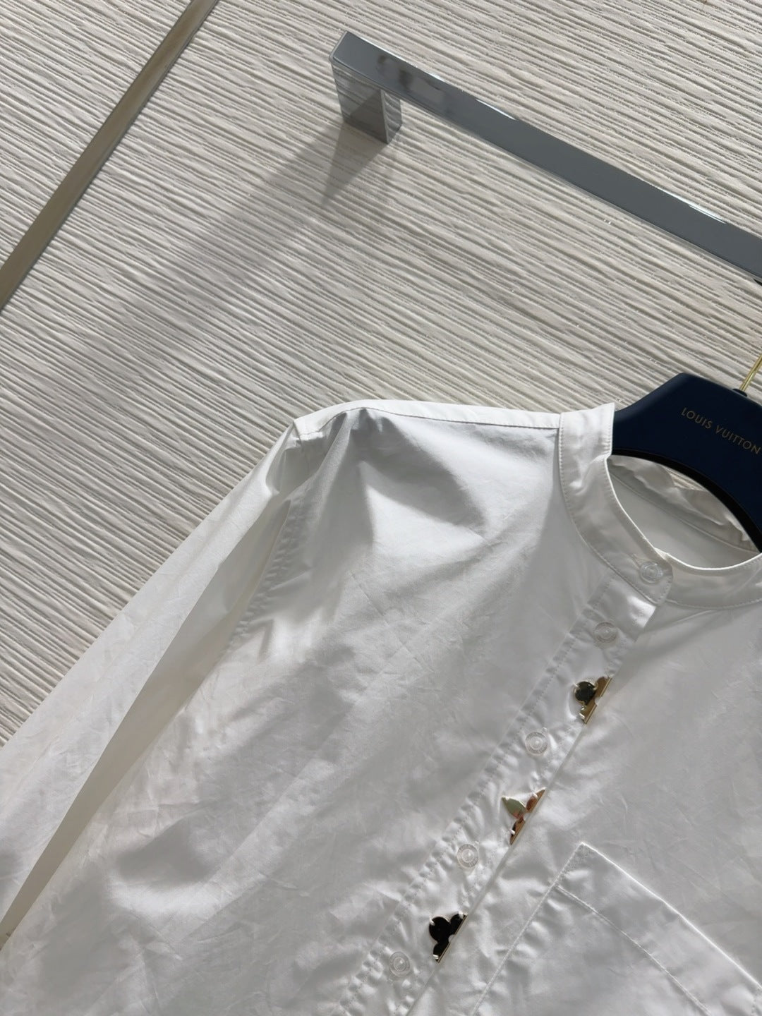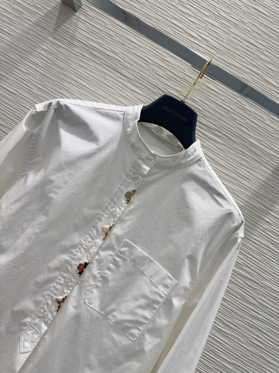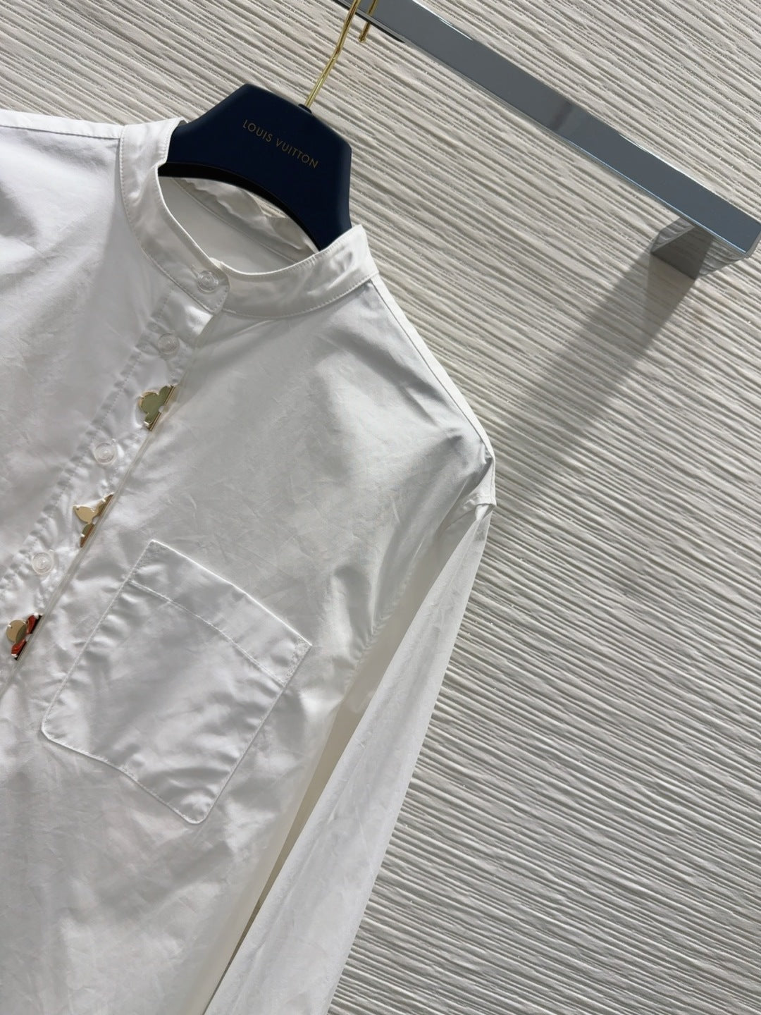 LV 25 Long Sleeve Mandarin Collar Shirt White Cotton